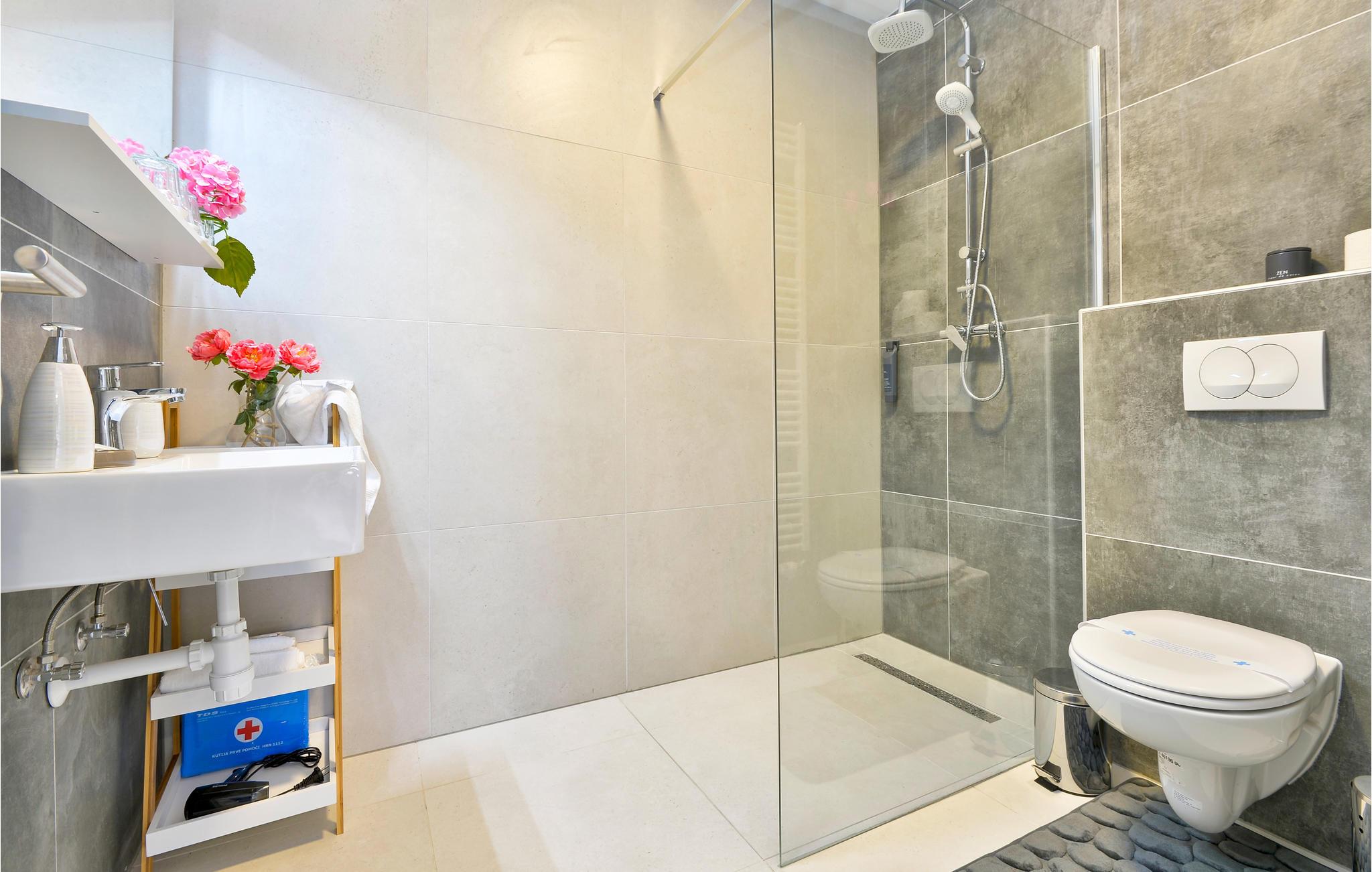 - WC mit warmem und kaltem Wasser, Dusche