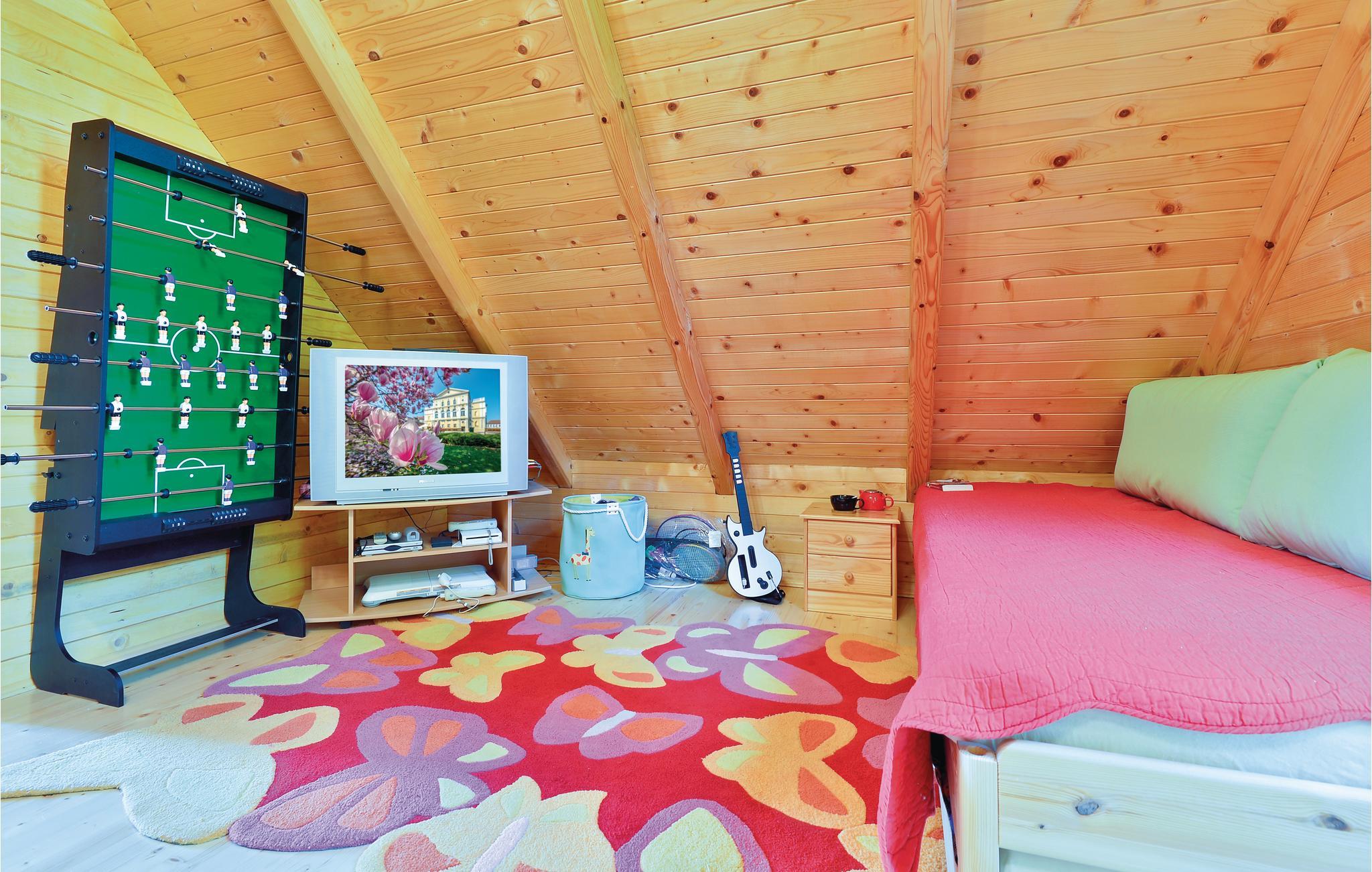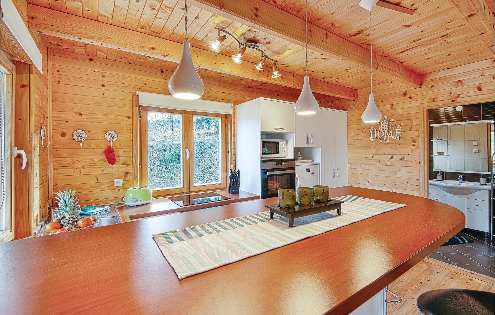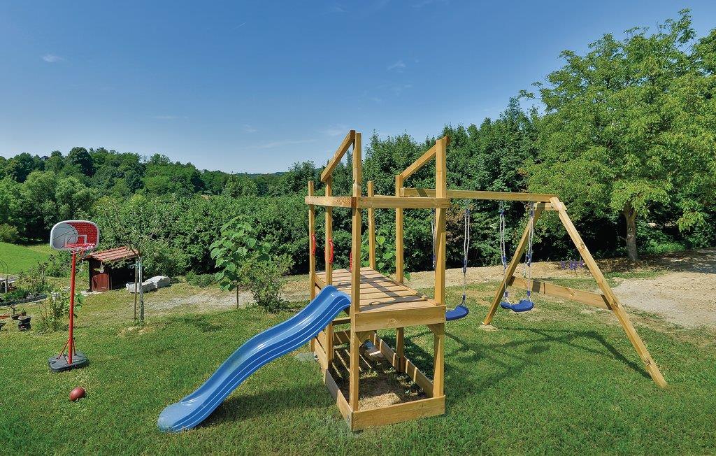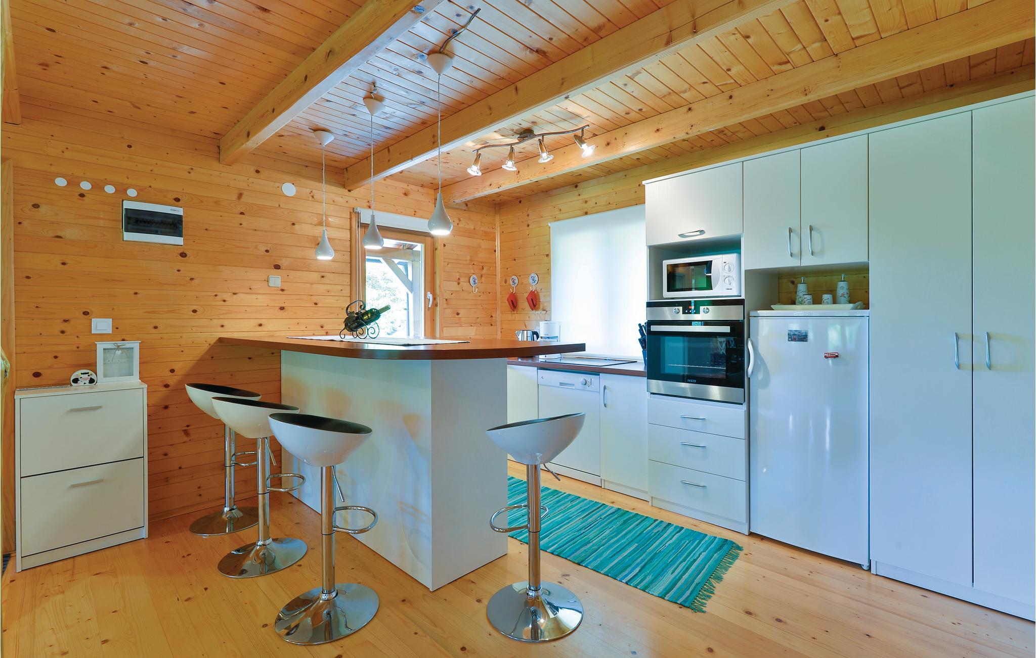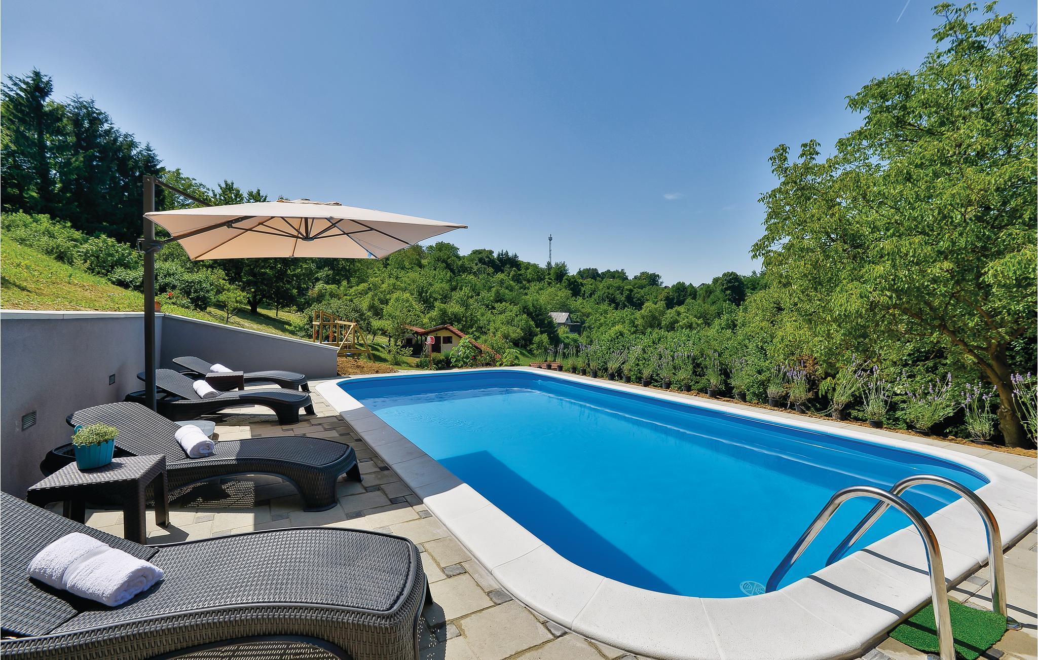 Etwas abseits von Varazdinske Toplice befindet sich dieses sorgfältig eingerichtete Ferienhaus aus Holz. Auf dem großen Grundstück befindet sich der Pool, der über einen Wasser-Geysir und eine UV-Wasseraufbereitung verfügt Sie finden hier ein reichhaltiges Spielangebot für Kinder und eine Terrasse vor, , auf der Sie im Schatten entspannen können. Das Innere des Hauses ist schön und modern eingerichtet und das Haus selbst ist mit allen Annehmlichkeiten ausgestattet, die für einen unbeschwerten und entspannten Urlaub benötigt werden. Das Erdgeschoss besteht aus einem Wohnzimmer mit Blick auf die Terrasse, Küche und Essbereich und einem Badezimmer. Im ersten Stock wo die Mindestdeckenhöhe ca. 60 cm beträgt, befinden sich zwei Schlafzimmer, eine Galerie und ein Badezimmer. Nur ca. einen Kilometer vom Haus entfernt befinden sich Varazdinske toplice, wo Sie die Vorteile des Thermalwassers, Wellnessangebote, Sportanlagen und Spaziergänge in der Natur genießen können. Während Ihres Aufenthaltes empfehlen wir Ihnen einen Besuch der schönen Stadt Varazdin, deren monumentales und künstlerisches Erbe mit ihrer üppigen Barockarchitektur sowie der Harmonie der Plätze und der einzigartigen romantischen Gassen Sie begeistern werden. Verpassen Sie nicht einen Besuch des Engelsmuseums.