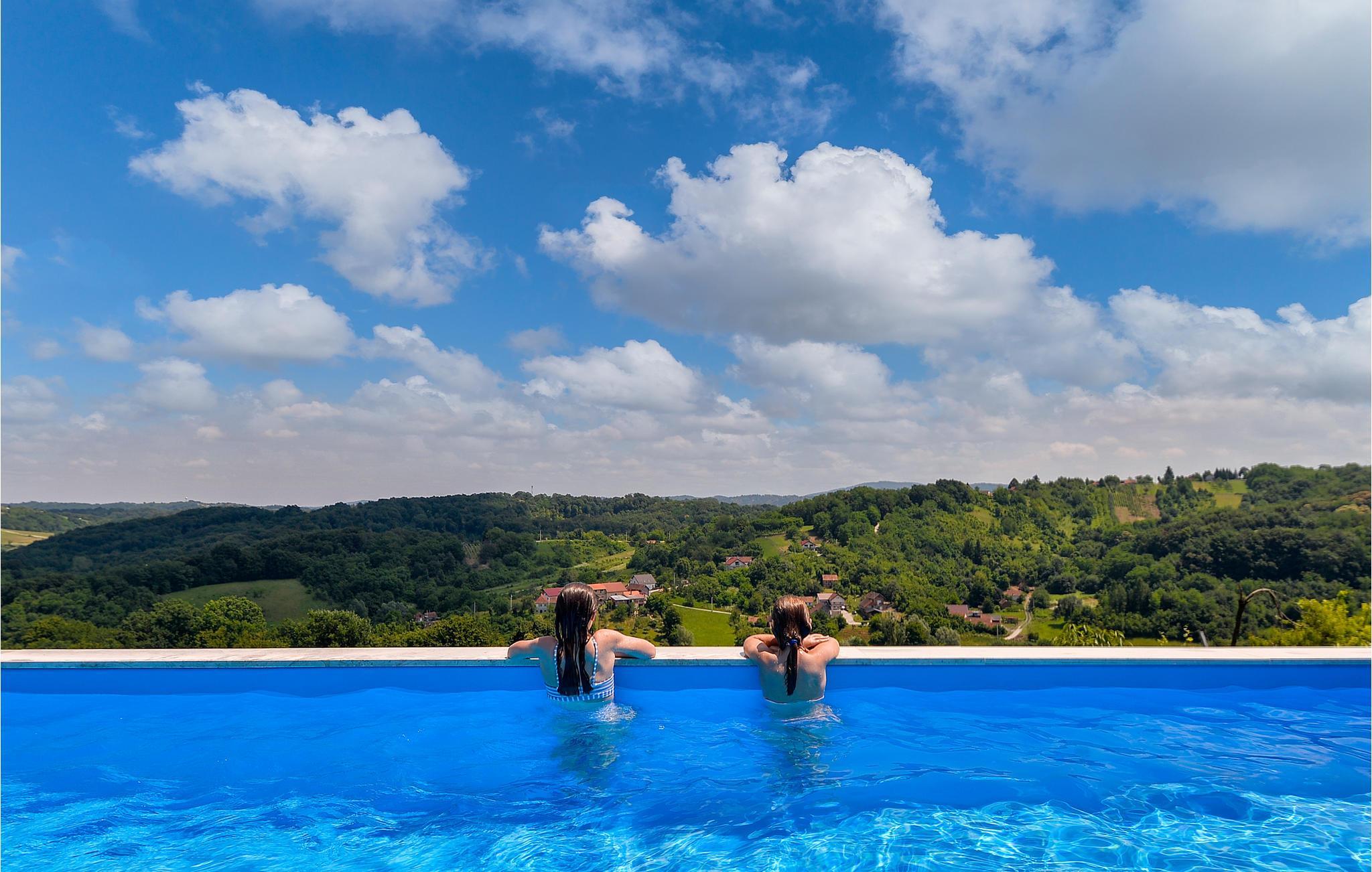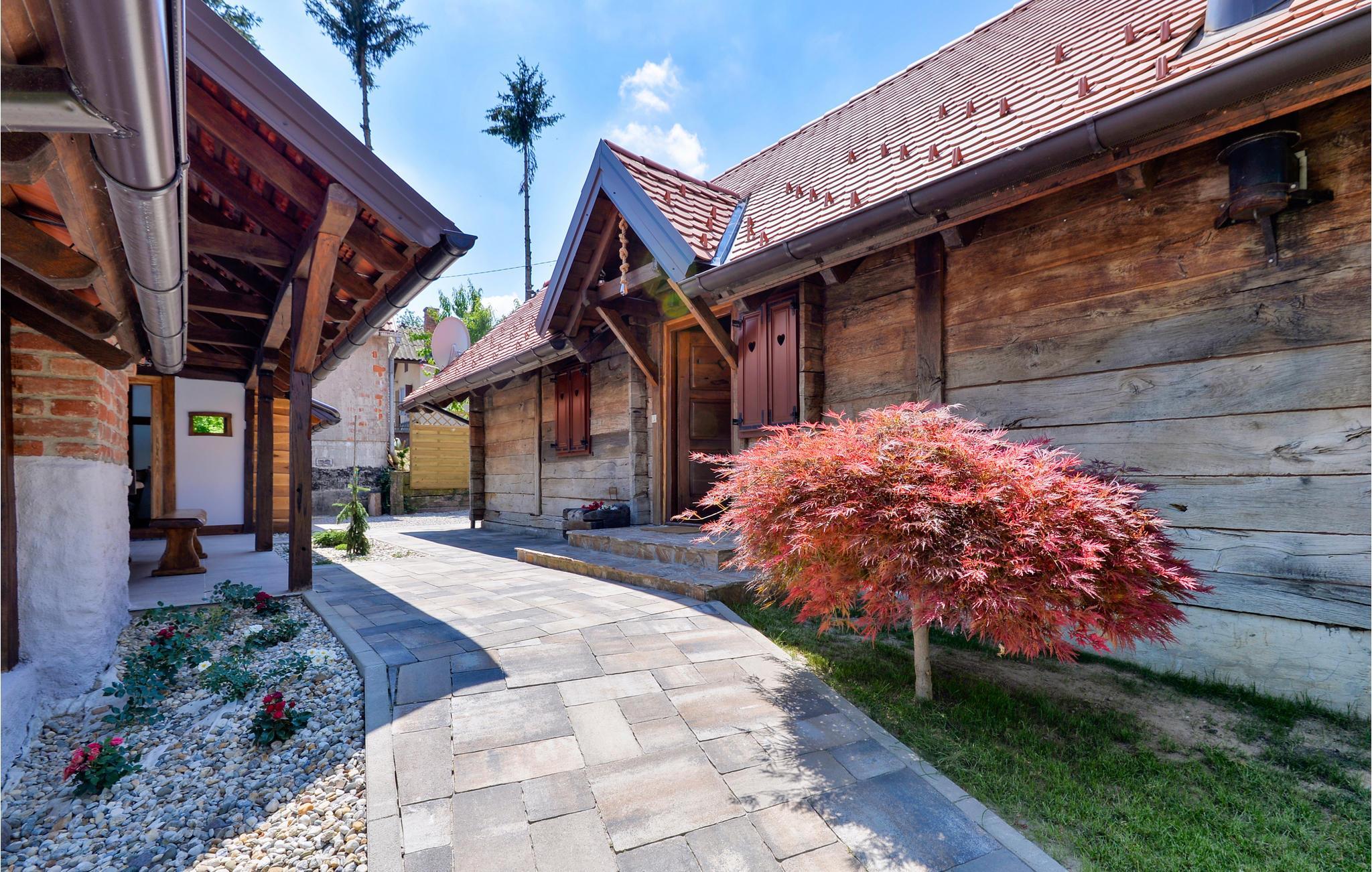 Nahe der Therme von Varaždin befindet sich dieses wunderbare Ferienhaus aus Holz. Es liegt auf einem Hügel, der von Weinbergen umgeben ist und von dem sich eine schöne Aussicht auf die natürliche Landschaft bietet. Saubere Luft, friedliche Umgebung sowie das aus natürlichen Materialien gebaute Ferienhaus sorgen für einen erholsamen Urlaub. Im Erdgeschoss besteht das Haus aus einer Küche mit Wohnzimmer, Badezimmer sowie einem Schlafzimmer mit eigenem Bad, während im Obergeschoss ein weiteres Schlafzimmer und eine Galerie mit zwei Zustellbetten für je eine Person sind. Vor dem Haus gibt es eine überdachte Terrasse mit Grillbereich sowie einen verglasten Teil, in dem sich ein Whirlpool mit herrlichem Blick auf das Tal befindet. Im Garten erwartet Sie auch ein Pool, der Sie an heißen Sommertagen mit Erfrischung verwöhnt. Im Keller gibt es eine Sauna für vier Personen und einen Ruhebereich mit Dusche. Da sich das Ferienhaus in einem Weinbaugebiet befindet, ist es möglich, mit den Gastgebern einheimische Weine zu probieren und gegen Aufpreis ein Catering zu arrangieren. Empfehlenswert ist auch ein Besuch der schönen Stadt Varaždin, deren künstlerisches Erbe mit seiner erhaltenen und üppigen Barockarchitektur sowie seinen harmonischen Plätzen und romantischen Straßen Sie einfach begeistern wird. Versäumen Sie nicht, das Museum der Engel und die Sammlung der Insektenwelt zu besuchen. In der Nähe finden Sie die Thermalbäder von Varaždin, in denen Sie die Vorteile von Thermalwasser und Wellness genießen können.