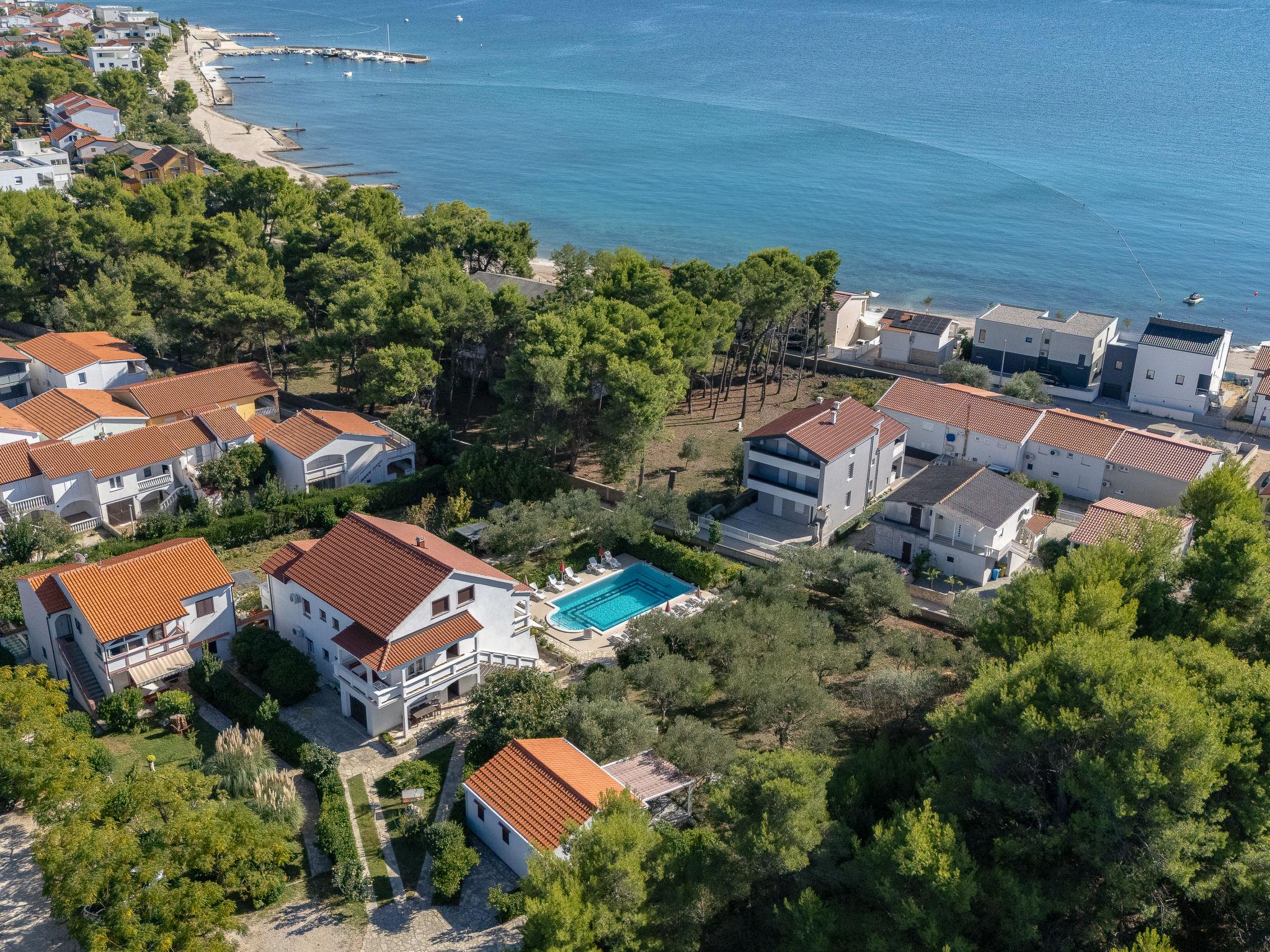 Schönes Zweifamilienhaus "Luce". Ausserhalb des Ortes, 1 km vom Zentrum von Vir, 400 m vom Meer, 400 m vom Strand, im Grünen. Zur Mitbenutzung: Garten mit Pflanzen und Bäumen, Obstgarten, Schwimmbad eckig (10 x 6 m, 150 - 170 cm tief, saisonale Verfügbarkeit: 04.Mai. - 14.Sep.) mit Innentreppe. Aussendusche, Sitzplatz, Gartenmöbel, Grill, Kinderspielplatz. Im Hause: Internetzugang. Parkplatz beim Haus auf dem Grundstück. Einkaufsgeschäft 500 m, Restaurant 1 km, Bushaltestelle 2.2 km, Steinstrand 400 m. Das Haus befindet sich auf dem Grundstueck vom Haus HR4050.120. Zur Mitbenuetzung: Boccia-Bahn.