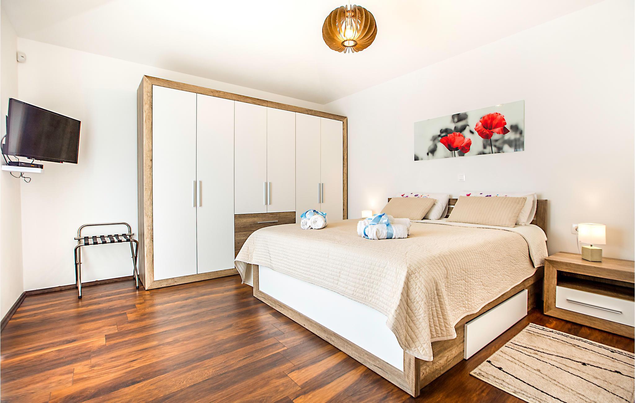 Dieses außergewöhnliche Ferienhaus mit Pool liegt im kleinen Ort Smoljanci, zwischen den mittelalterlichen Ortschaften Svetvincenat und Bale. Entfliehen Sie dem Sommertrubel und erleben einen erholsamen Urlaub in diesem Haus mit dem geschmackvollen Interieur und den gepflegten Außenbereichen. Das umzäunte Grundstück, Spielgeräte für Kinder und Sommerküche sind zusätzliche Pluspunkte. Entspannen Sie am großen Pool und gönnen sich eine Erfrischung. Entdecken Sie auch die Strände an der schönen Küste Istriens mit kristallklarem Meer sowie die romantische Feriendestination Rovinj, die Sie mit viel Unterhaltung und gastronomischen Köstlichkeiten in ihren Bann ziehen wird.