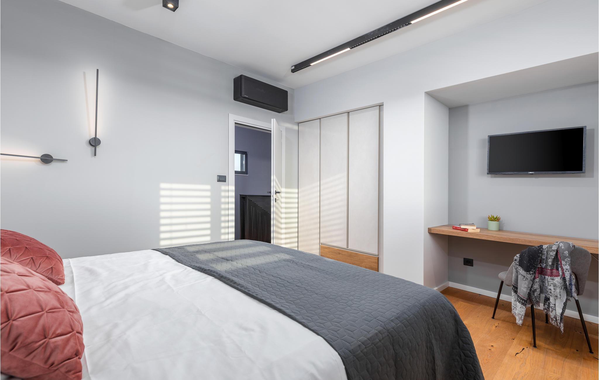 Auf der Halbinsel Istrien heißt Sie dieses wunderschöne Ferienhaus willkommen. Als Liebhaber moderner Architektur und hochwertigen Designs werden Sie sich hier mit Ihrer Großfamilie oder einer befreundeten Familie wohlfühlen. Genießen Sie Ihre Privatsphäre in den Schlafzimmern und das Beisammensein in dem komfortablen Wohnraum. Hier können Sie Ihre gemeinsame Zeit beim Relaxen auf dem Sofa, beim Kochen in der voll ausgestatteten Küche oder beim Kartenspielen am Esstisch verbringen. Erfrischen Sie sich auch in Ihrem privaten Swimmingpool, während Ihre Kinder auf dem Rasen herumtoben.