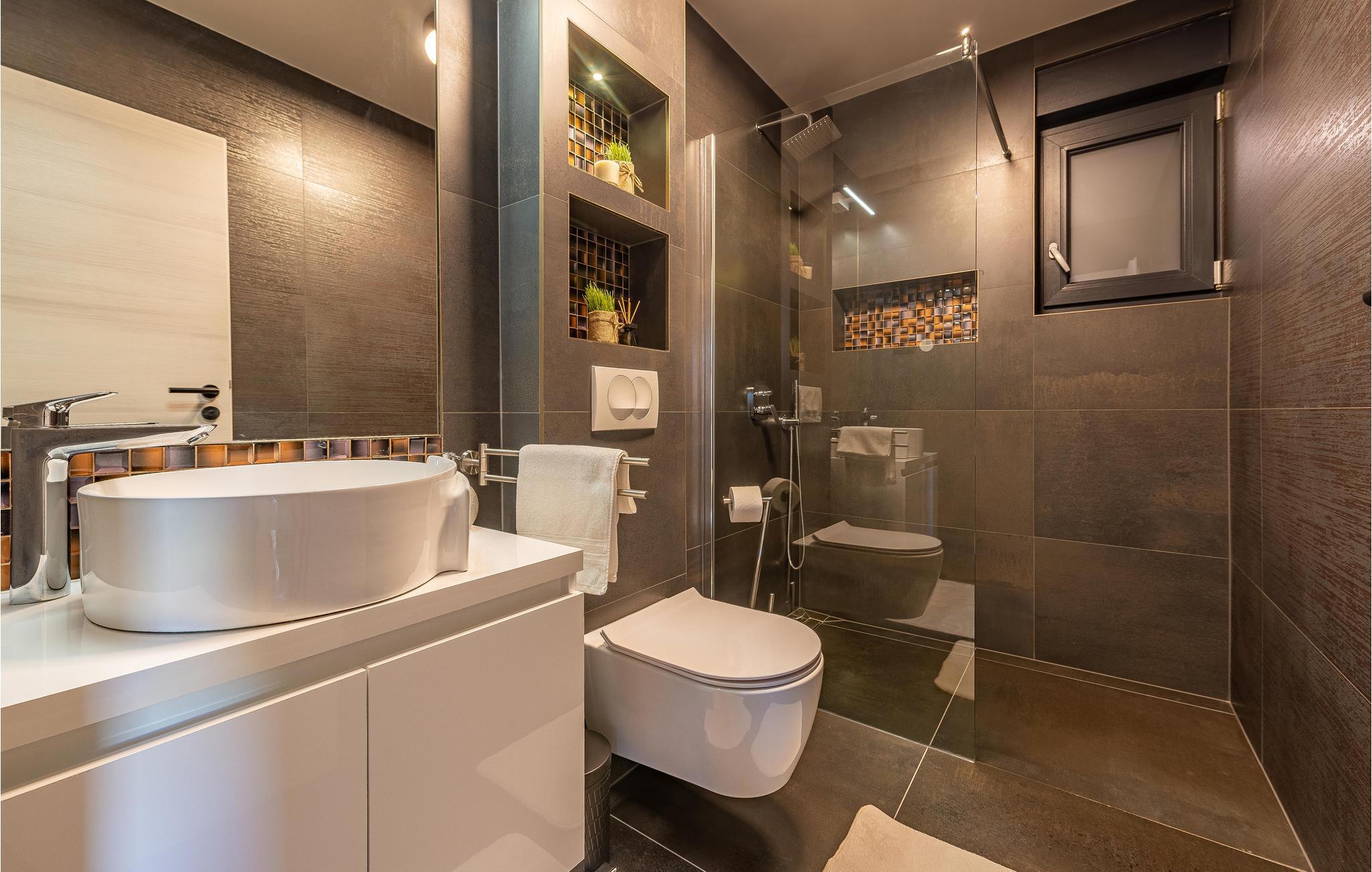 Badezimmer 4m2 (nr. 1) - WC. Warmes und kaltes Wasser. Handdusche