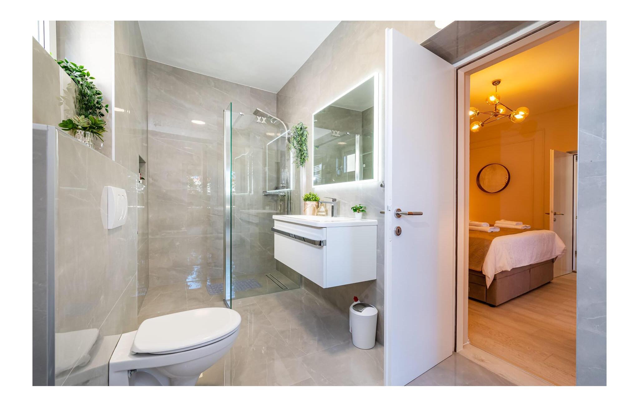 Badezimmer 7m2 (nr. 4) - WC. Warmes und kaltes Wasser. Dusche
