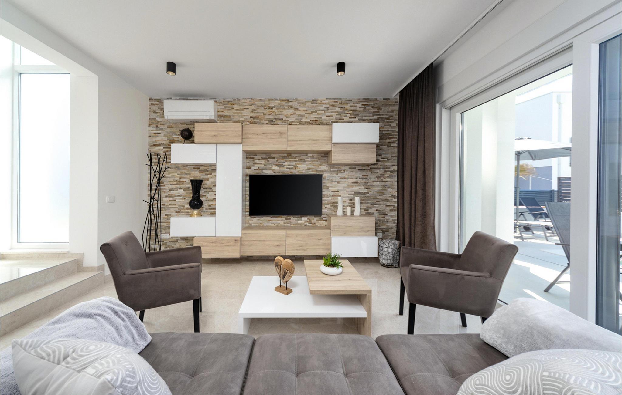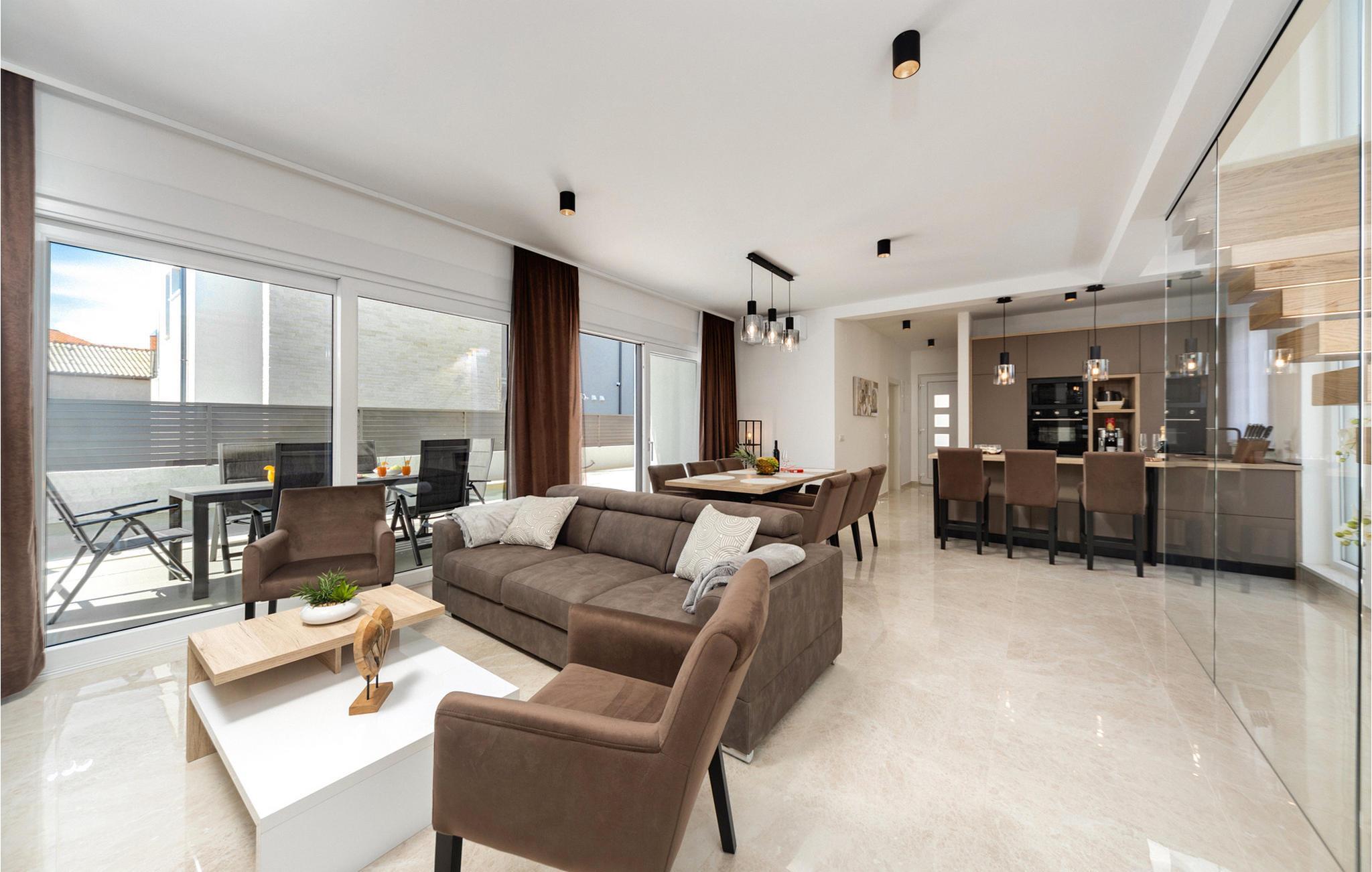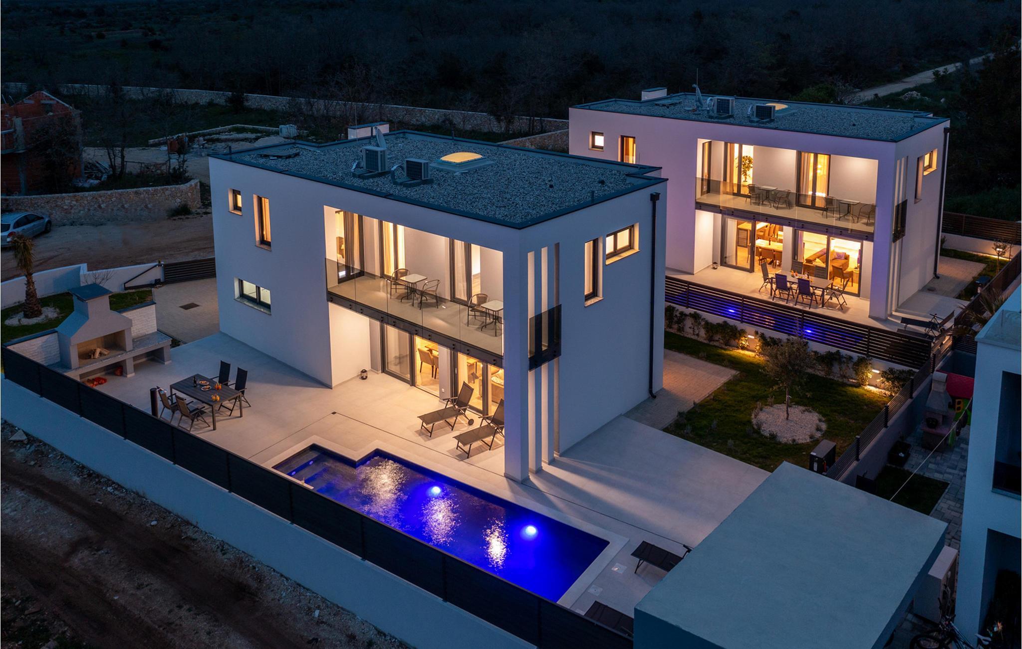 Die schöne Villa Sanja befindet sich in dem kleinen Küstendorf Zaton in der Nähe von Zadar. Die im zeitgenössischen Stil erbaute Villa zeichnet sich durch einen raffinierten Stil sowie eine hochwertige und geschmackvolle Einrichtung aus. Zaubern Sie kulinarische Highlights in der modernen Küche, genießen Sie harmonische Mahlzeiten im hellen und behaglichen Wohnbereich, spielen Sie Tischtennis und nutzen Sie die Fitnessgeräte für Ihr Workout. Machen Sie es sich nach einem langen Tag bei anregenden Gesprächen auf den bequemen Sofas gemütlich.