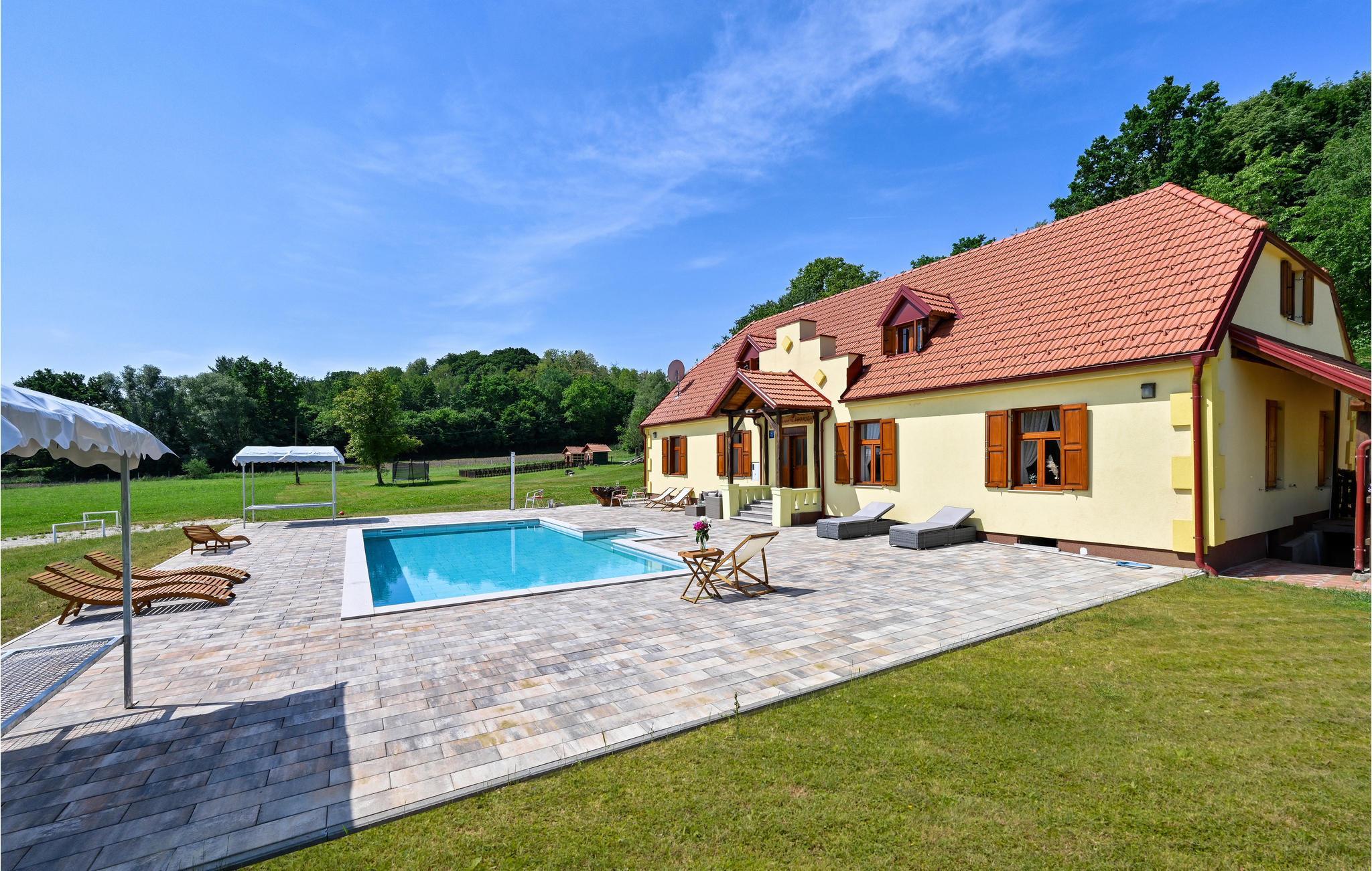 In unberührter Natur liegt dieses Ferienhaus mit beheiztem Pool, umgeben von viel Grün und einem großen Grundstück mit vielen Einrichtungen für Kinder und Erwachsene. Das Haus ist ideal für bis zu 15 Personen.