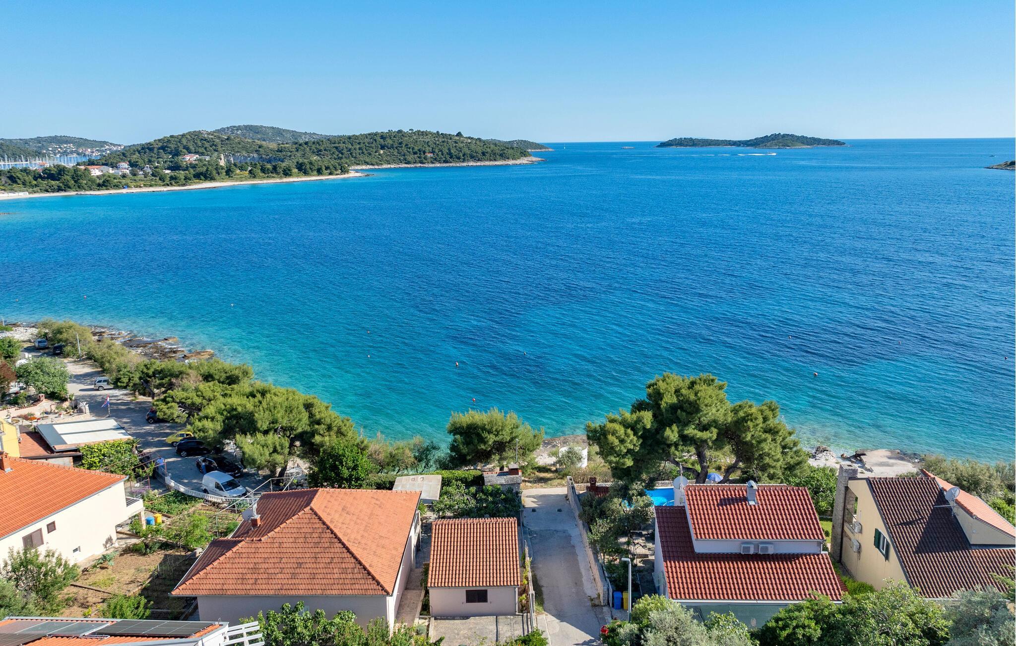 Tauchen Sie ein in die mediterrane Wohnatmosphäre und entspannen Sie während Ihres Urlaubes in diesem schönen Ferienhaus mit Pool, welches aus zwei Etagen besteht und fast direkt am Meer liegt. Der attraktive Außenpool bietet die ideale Erfrischung an heißen Sommertagen und am Strand vor dem Haus können Sie die Sonne und das Meer in vollen Zügen genießen. Entspannen Sie im Garten mit Blick auf das Meer und genießen Sie gesellige Stunden beim Grillen im kleinen Grillhäuschen auf dem Grundstück befindet. Besuchen Sie die Stadt Rogoznica, die bei Surfern speziell beliebt ist und über viele Sehenswürdigkeiten und interessante Sommerveranstaltungen verfügt. Ergänzen Sie Ihren Urlaub mit köstlichen Speisen in den vielen Restaurants und Tavernen, während Sie nebenbei den Klängen der dalmatinischen Musik lauschen. Besichtigen Sie den Salzsee, der als besondere Attraktion bekannt ist.