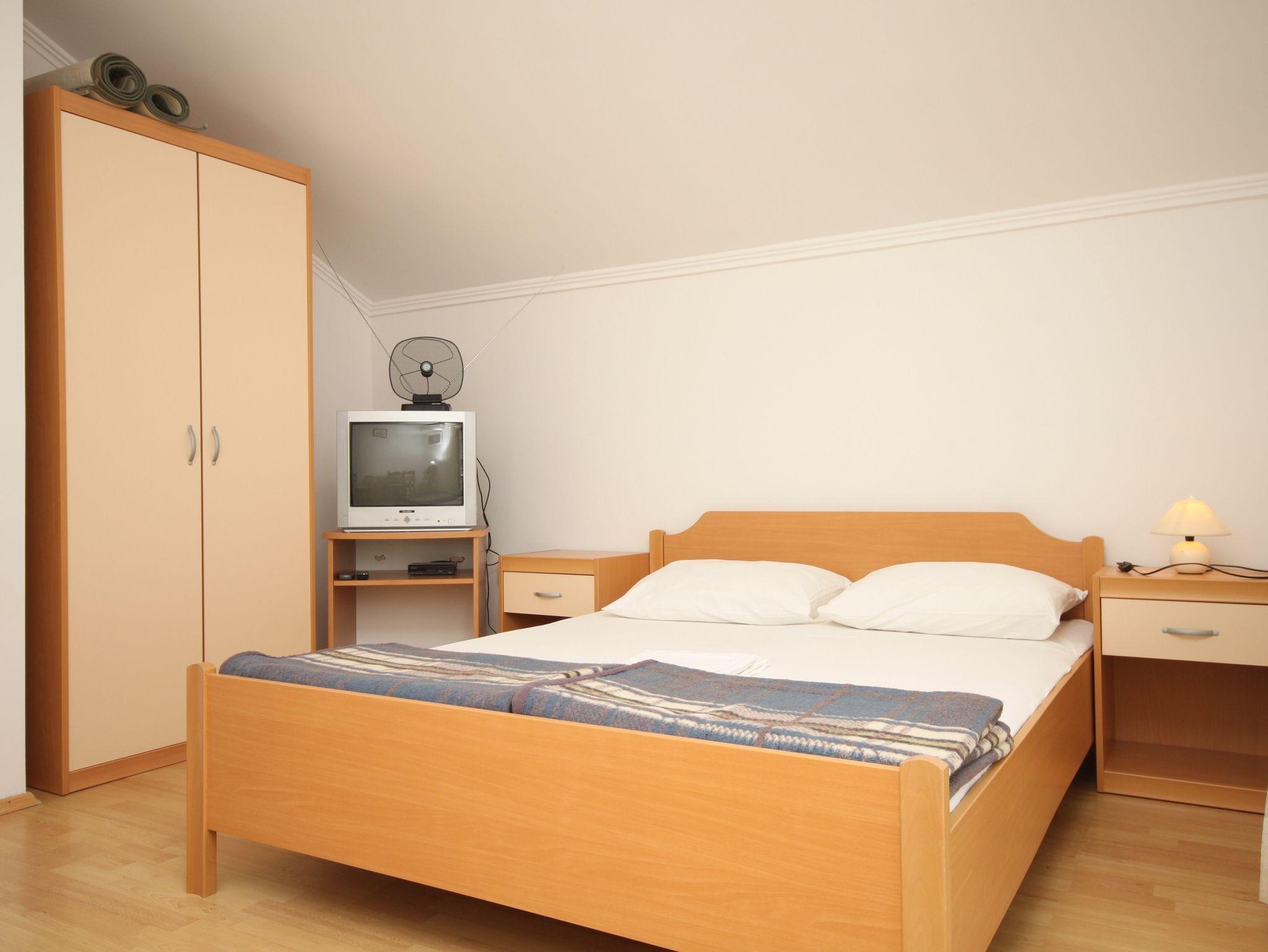 Studio bietet Platz für 4 Gäste. Die Betten sind in Schlafzimmern, die es 1 gibt, und in Wohnzimmer, innerhalb einer Gesamtfläche von 30m2, angeordnet. Die Gäste haben eine eigene Terrasse zur Verfügung, auf der sie in warmen Sommernächten genießen können. Das Studio-Apartment bietet Meerblick. Es ist erlaubt, Speisen auf dem Gemeinschafts-Grill vorzubereiten. Unterkunftseinheit hat Räume, die von dem Rest der Einheit abgetrennt werden. IM PREIS INBEGRIFFEN: Kurtaxe, Endreinigung, Klimatisierung, Parkplatz, Internet, Bootsanlegeplatz. VERBINDLICHE ZUSÄTZLICHE KOSTEN: Aufzahlung für Kurzaufenthalte (prozentualer Zuschlag pro Nächtigungsanzahl: 30% - 1, 20% - 2, 10% - 3). Die Verfügbarkeit zusätzlicher Dienstleistungen in Ihrem reservierten Termin und die Preise derselben (falls nicht aufgeführt) müssen im Voraus überprüft werden. Zusätzliche Dienstleistungen die in der Zahlungsaufforderung nicht aufgeführt sind werden direkt beim Vermieter bezahlt, angenommen der Gast nutzt auch diese. Ermäßigung auf den Grundpreis: Gratistag 14=13 (bei einem Aufenthalt von 14 Tagen oder mehr erhalten Sie einen Gratistag für den Aufenthalt bis 31.12.26).