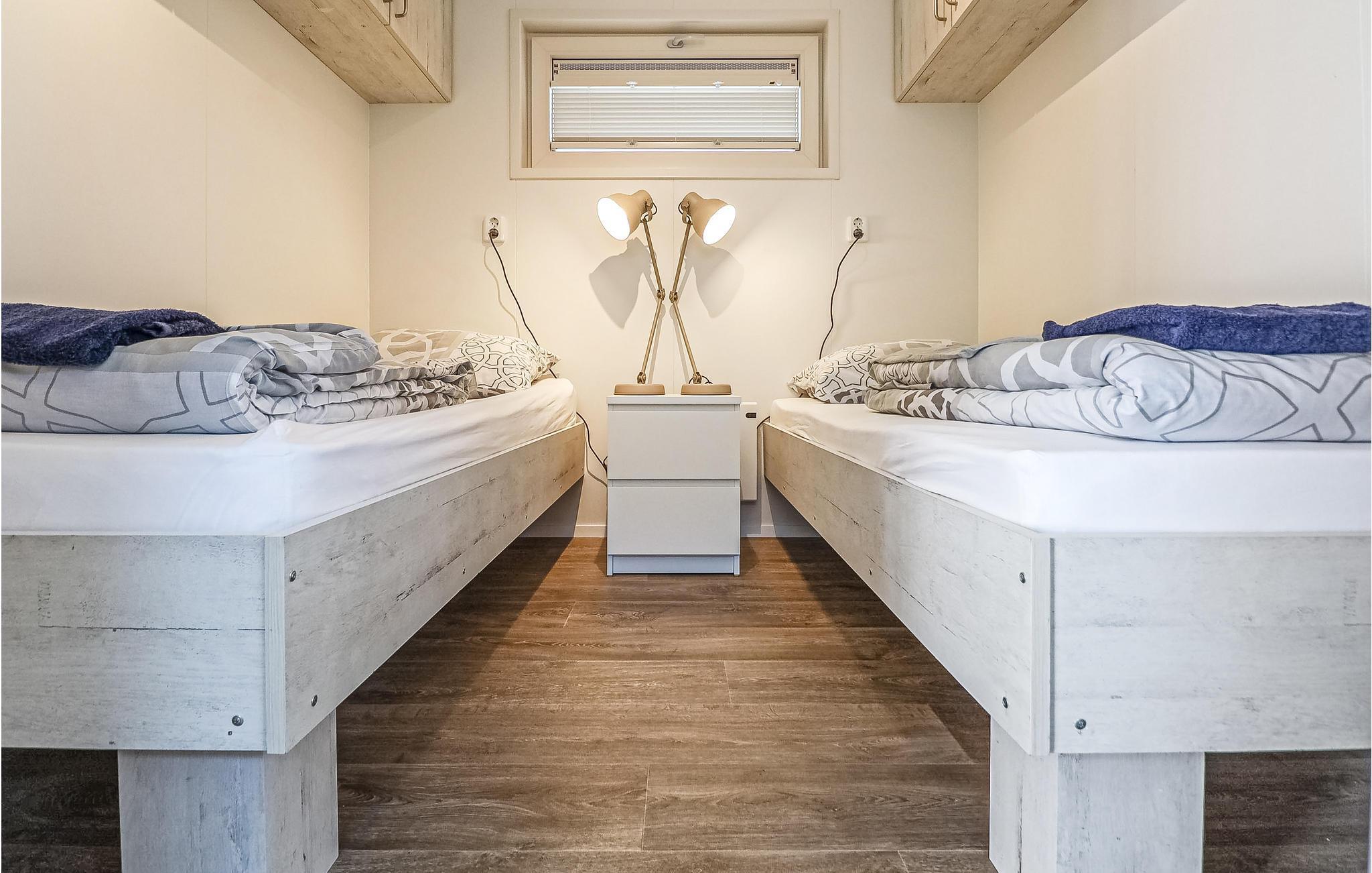 Das Interieur ist frisch und hell, das Wohnzimmer mit Blick auf den Hafen ist geräumig mit einer offenen Küche. Außerdem hat das schwimmende Haus 2 Schlafzimmer und ein Badezimmer mit Dusche.
