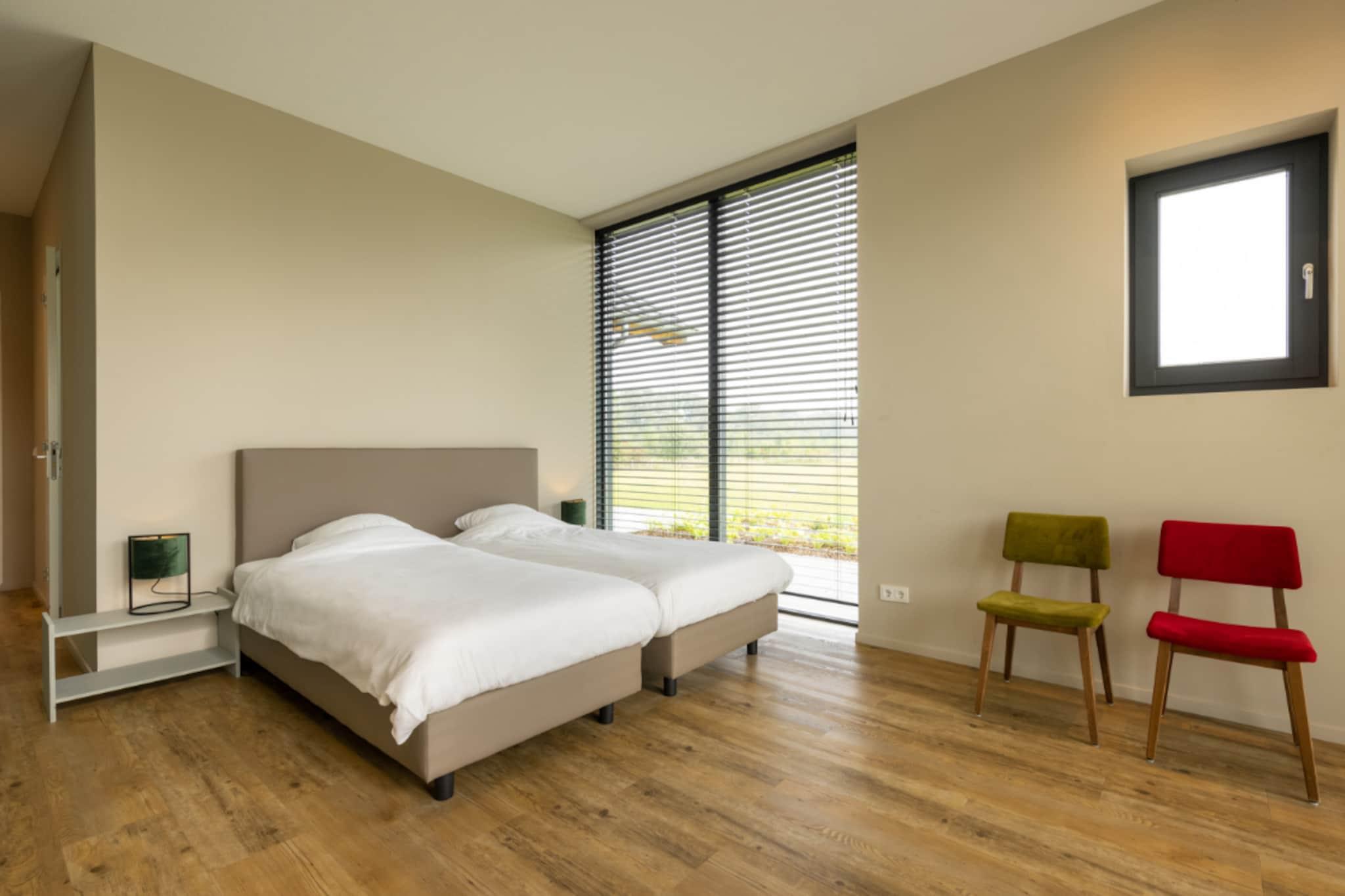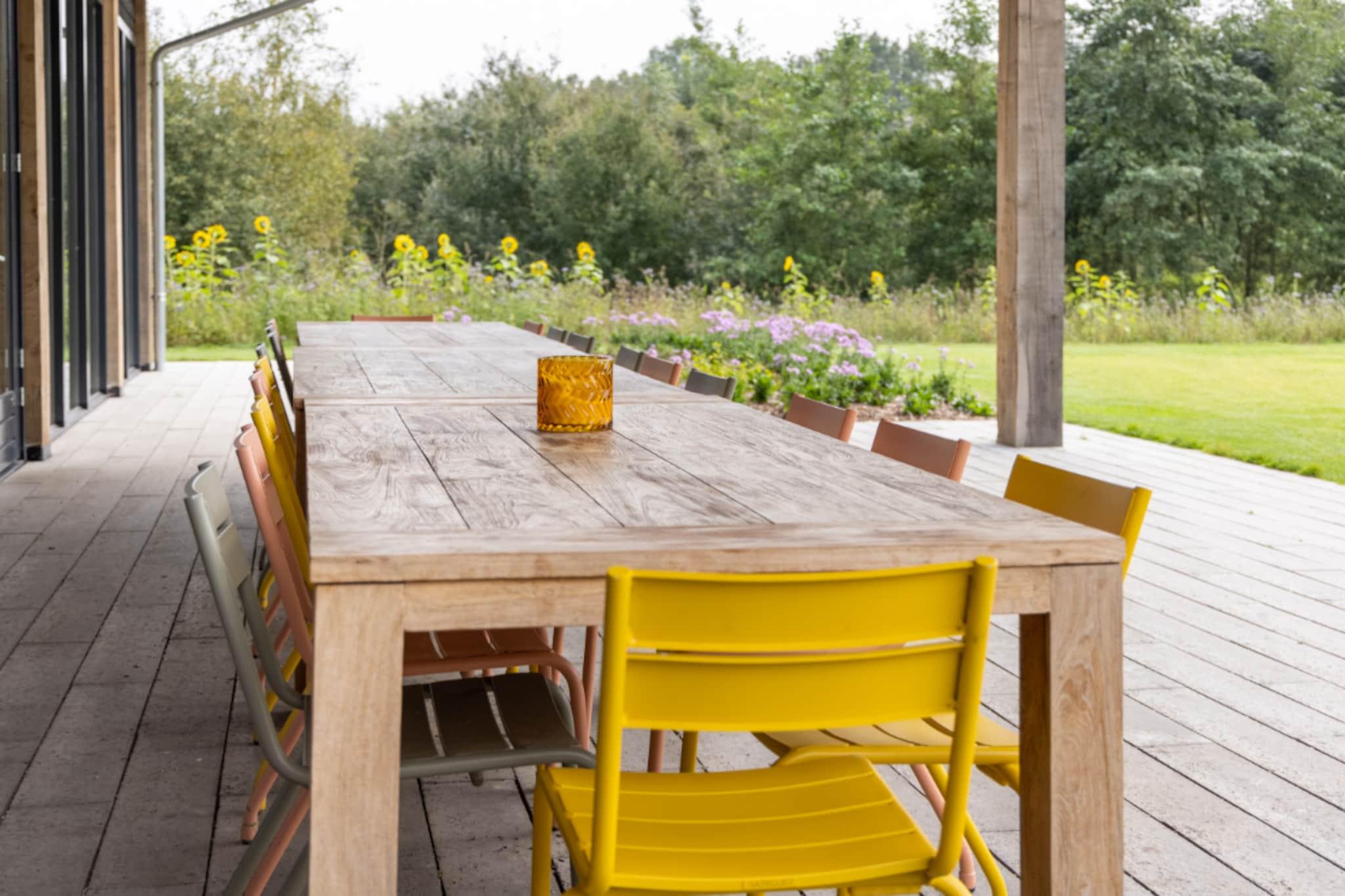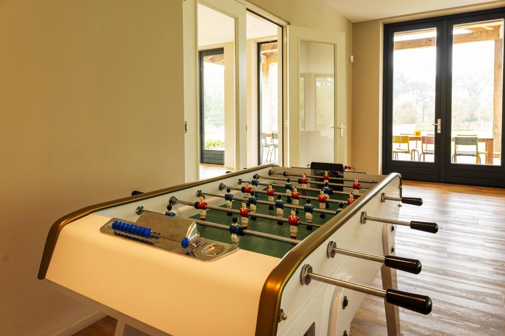 Entdecken Sie die perfekte Verbindung von modernem Luxus und natürlicher Ruhe in dieser atemberaubenden Ferienvilla im Herzen des Achterhoek bei Aalten. Die Villa wurde erst kürzlich erbaut und so gestaltet, dass sie die Natur ins Haus holt. Große Fensterfronten bieten einen herrlichen Blick auf die friedliche Landschaft mit sanften Wiesen, alten Bäumen und sich schlängelnden Bächen. Das Interieur ist ein Meisterwerk an Komfort und Stil und besticht durch ein geräumiges Wohnzimmer mit gemütlichem Kamin, einer Xbox für Unterhaltung und einer professionell ausgestatteten Küche mit Dampfgarer, zwei Geschirrspülern und einem Quooker. Zehn komfortable Schlafzimmer – alle mit hochwertigen Boxspringbetten – und neun moderne Badezimmer bieten einen eleganten und privaten Rückzugsort für größere Gruppen, die stilvoll entspannen möchten. Wellness und aktive Freizeitgestaltung stehen hier im Mittelpunkt. Gäste können in der privaten finnischen Sauna neue Energie tanken, im separaten Wellnessbereich fit bleiben oder eine Partie Tischfußball im Freizeitbereich spielen. Der komplett umzäunte Garten ist ein Spielplatz für Groß und Klein mit Klettergerüst, Schaukeln und Trampolin. Das Highlight des Außenbereichs ist zweifellos der beheizte Pool, der von April bis September geöffnet ist und von Liegestühlen zum Entspannen umgeben ist. Die Lage bietet unzählige Möglichkeiten, in die reiche Kultur und die üppigen Landschaften Ostgelderlands einzutauchen. Ob Sie die berühmte Route der Acht Burgen mit dem Fahrrad erkunden, die historische Bücherstadt Bredevoort entdecken oder einen Kulturausflug in die deutsche Stadt Münster unternehmen – Sie sind bestens positioniert, um das Beste der Region zu genießen.