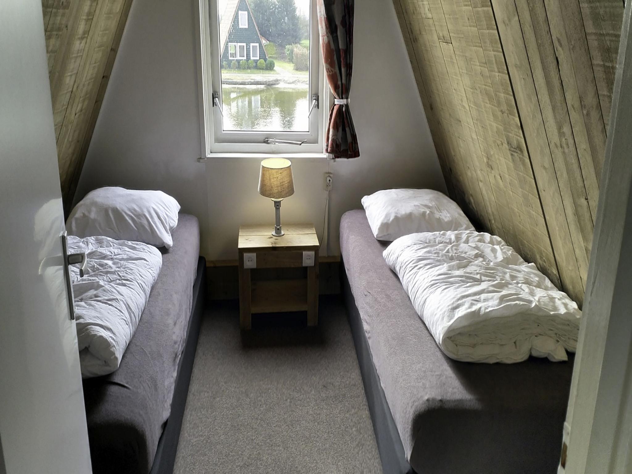 "Vissershuis", 4-Zimmer-Haus 60 m2. Abgeschrägt, einfach eingerichtet: offenes Wohn-/Esszimmer mit Esstisch, TV, Radio und CD. Ausgang zum Garten. 1 Doppelzimmer mit 2 Betten. Kleine, offene Küche (4 Kochplatten, Mikrowelle, elektrische Kaffeemaschine). Dusche/WC. Heizung. Obergeschoss: (steile Treppe) abgeschrägt 2 Doppelzimmer, jedes Zimmer mit 2 Betten. Terrassenmöbel. Sicht auf den See. Zur Verfügung: Internet (WLAN, gratis). Bitte beachten: Maximal 2 Haustiere/Hunde erlaubt. Rauchmelder.