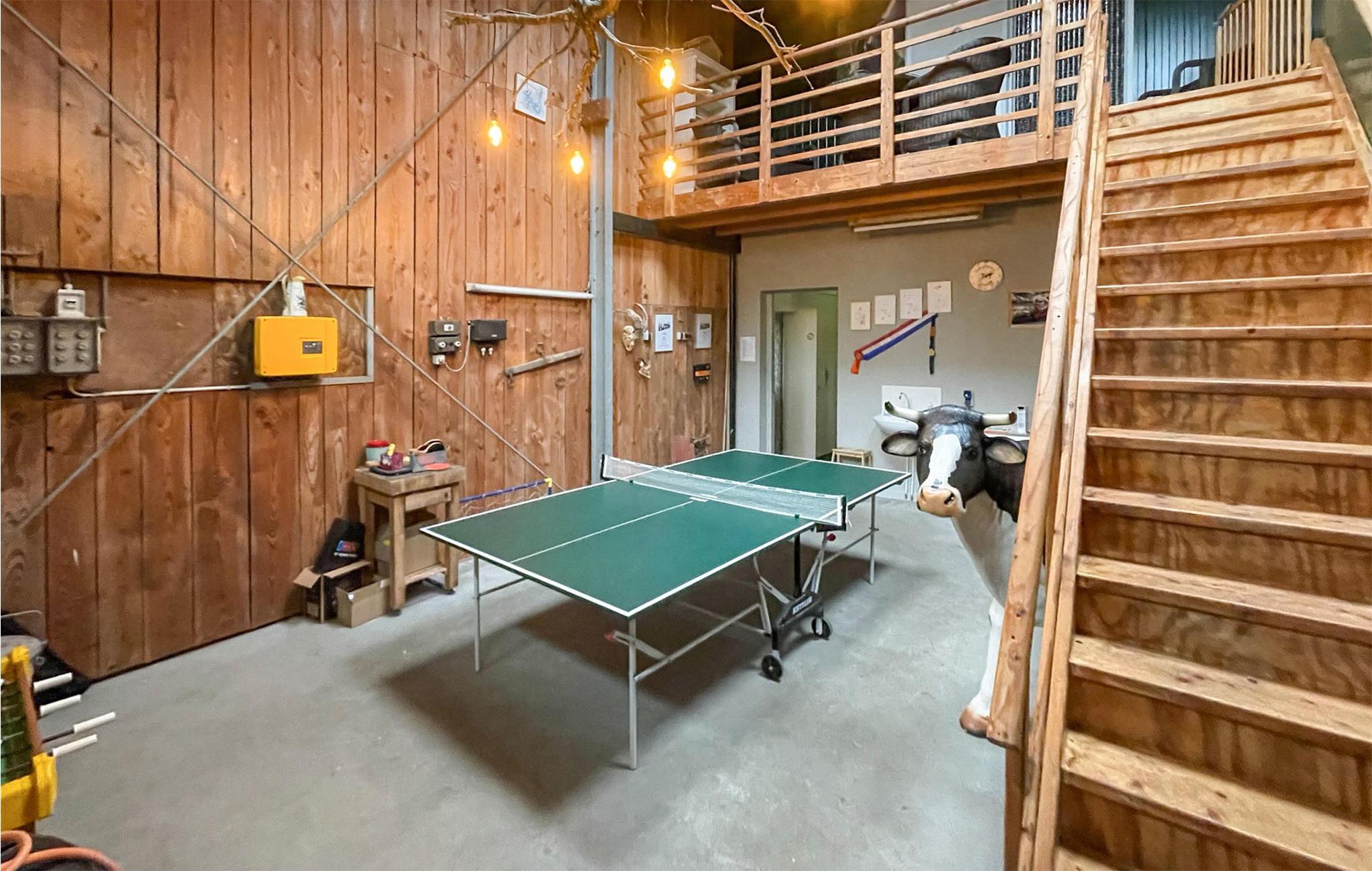 In einer umgebauten Scheune mit authentischen gemalten Bildern an den Wänden, können Sie Ihren Familienurlaub ganz nah an Tieren verbringen. Auch Ihre Hunde sind hier willkommen und brauchen nicht zuhause bleiben. Entspannen Sie im großen Wohnraum, in dem Sie zusammen kochen, spielen und vor dem TV relaxen können.