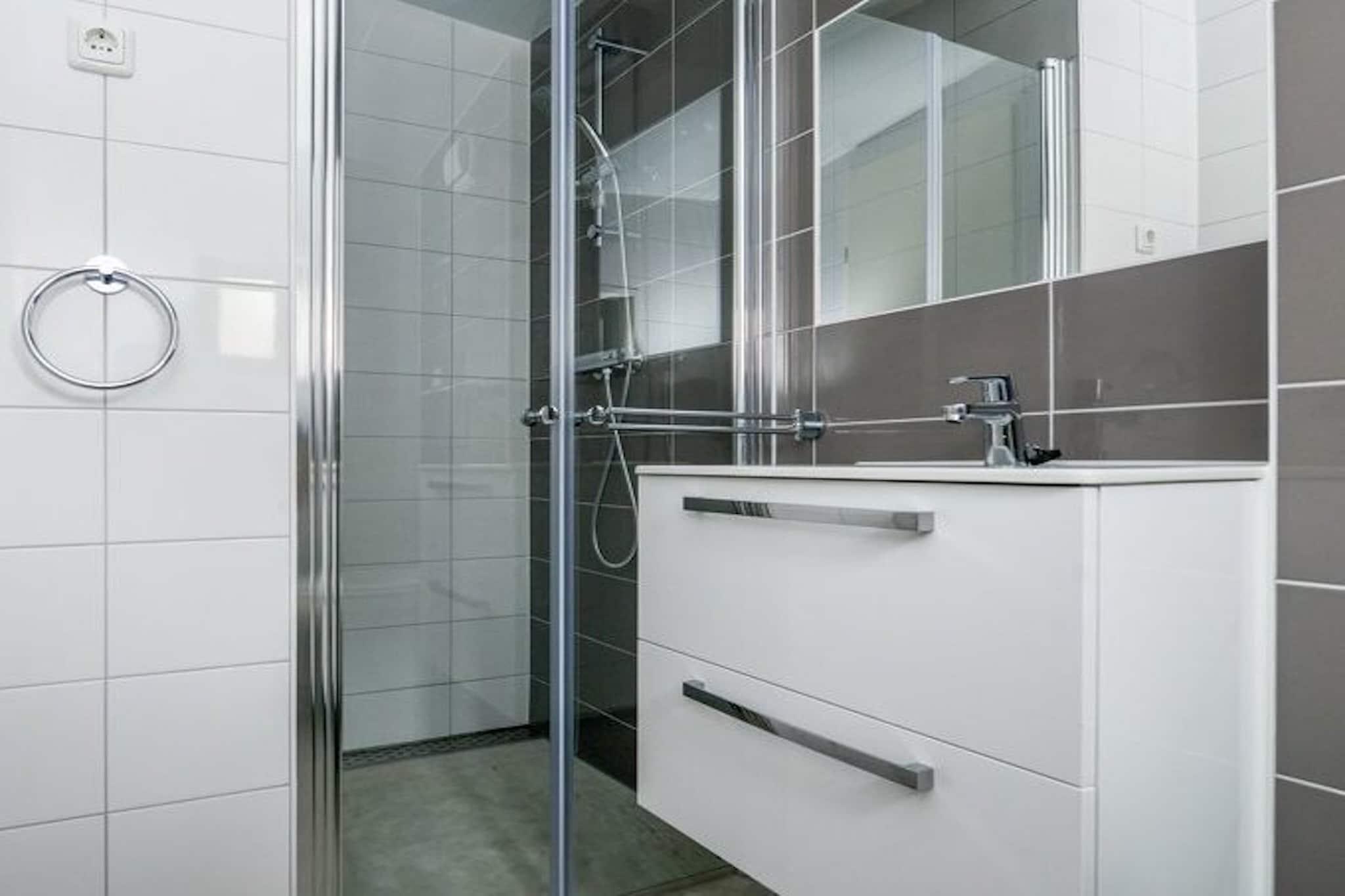 Parterre: (offene Küche(Wasserkocher, Kaffeemaschine(cups), Kombi-Mikrowelle, Spülmaschine, Kühlschrank(+ Gefrierfach)), Wohn/Esszimmer(TV(Flatscreen), Esstisch(4 Personen)), Schlafzimmer(2x Einzelbett, TV), Schlafzimmer(2x Einzelbett, TV), Badezimmer(Dusche, Waschbecken, Toilette), Badezimmer(Dusche, Waschbecken, Toilette)) Veranda, Gartentüren, Heizung(Fußbodenheizung), Parkplatz