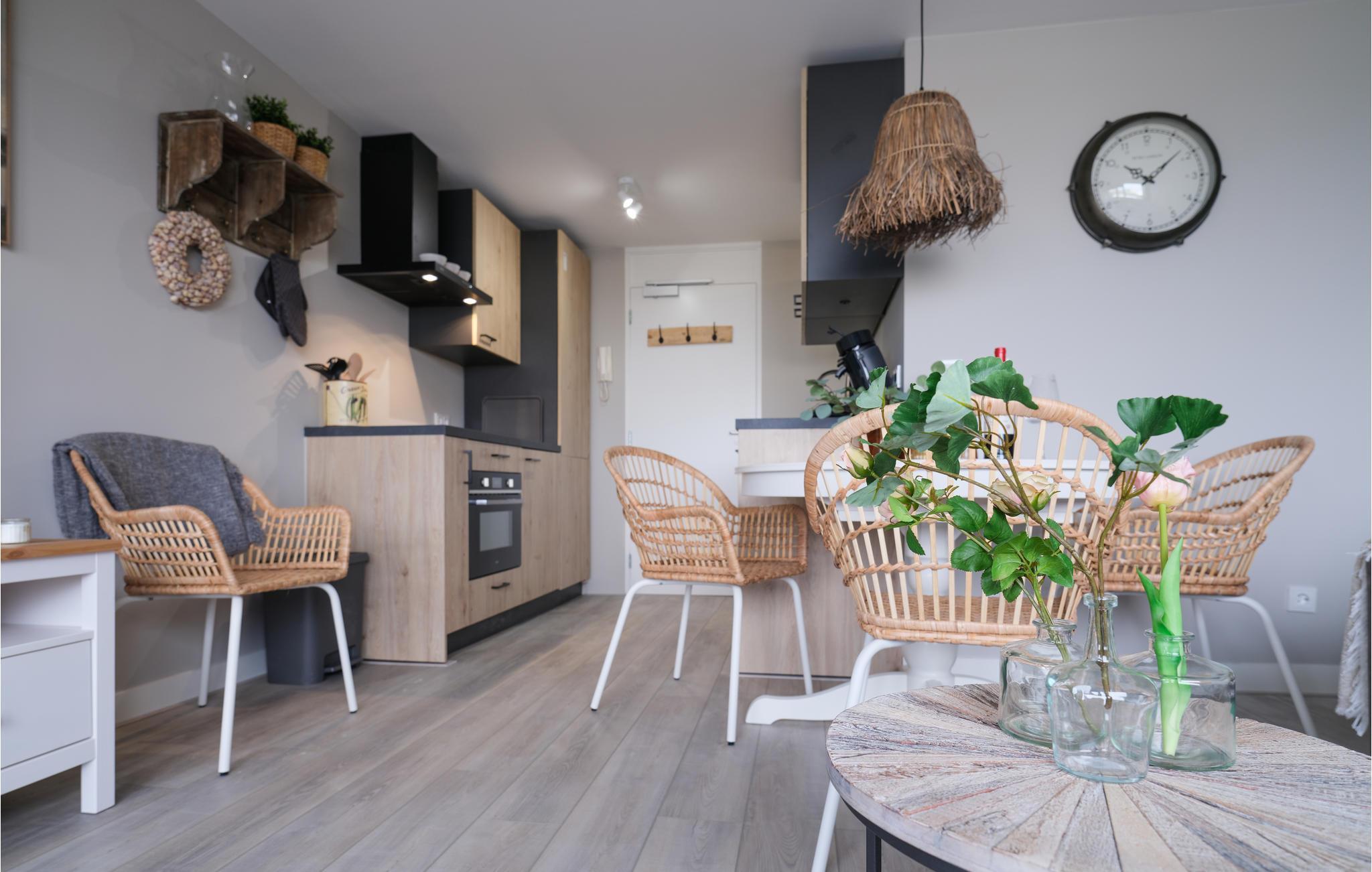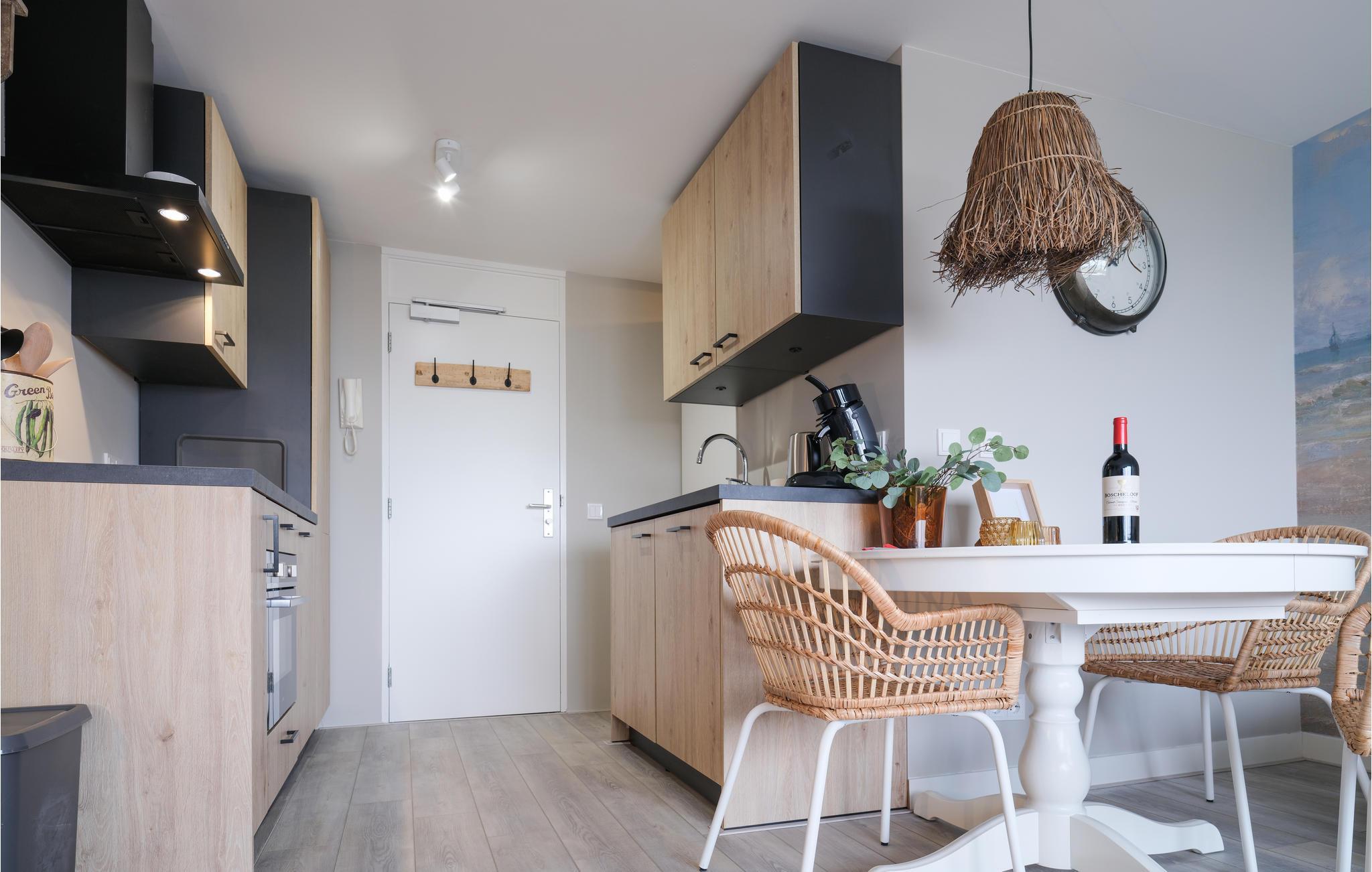Diese mit Blick auf den Yachthafen gelegene Wohnung bietet Ihnen alles, was Sie für einen unbeschwerten Urlaub brauchen. Ein freundlicher Wohnraum mit einem gemütlichen Sofa, eine schöne Holzoptik und eine moderne Küche schaffen eine Atmosphäre, in der Sie schnell entspannen können. Egal ob Sie entspannt eine Tasse Kaffee auf dem Sofa trinken, Ihren Lieblingspodcast hören oder gemeinsam kochen – hier bestimmen Sie den Rhythmus Ihres Urlaubstages.