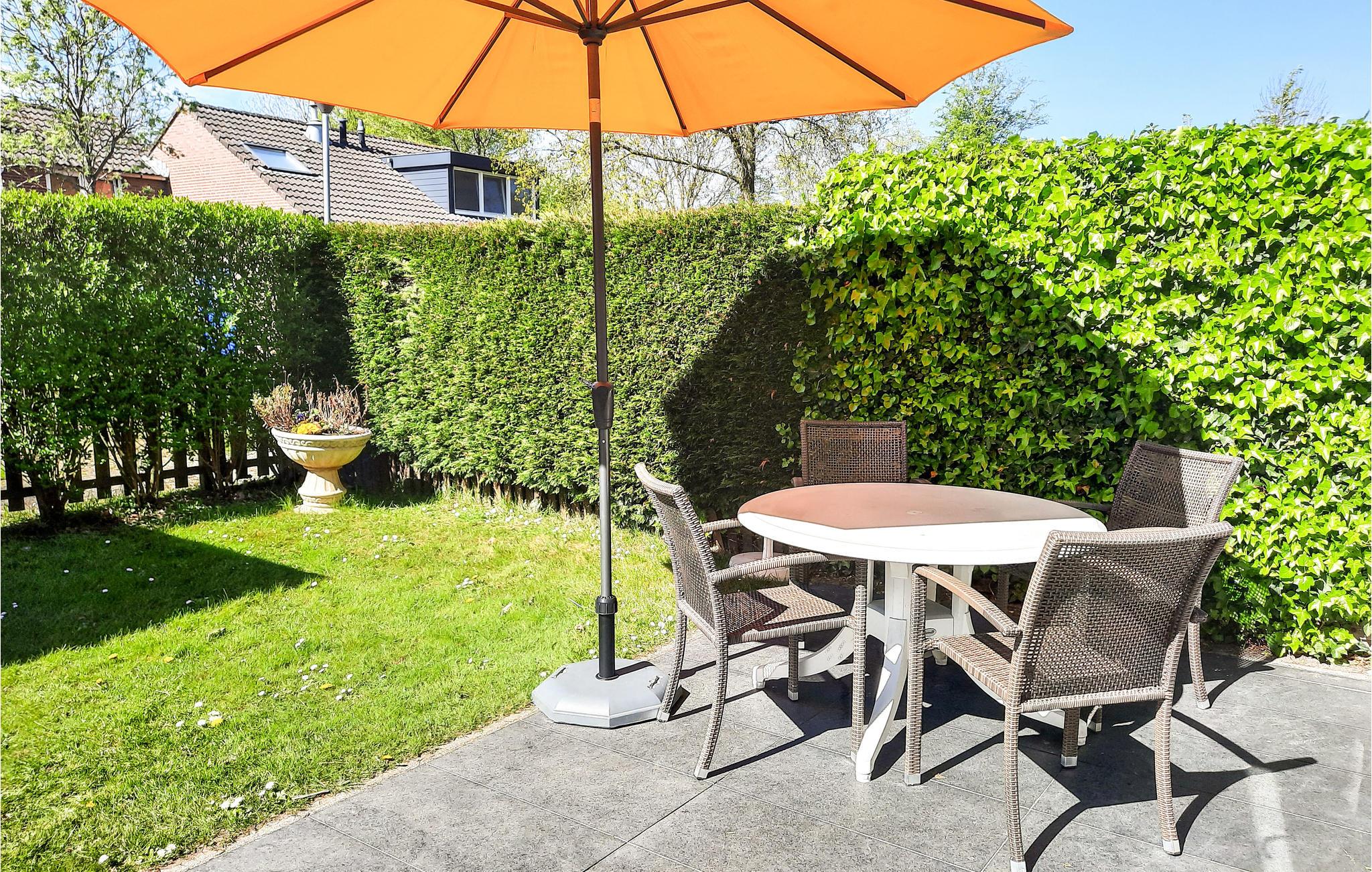 Genießen Sie den freundlichen Wohnraum mit offener Küche. Entspannen Sie auf dem bequemen Sofa und lassen Sie den Blick durch die großen Fenster in den gepflegten Garten schweifen. Bereiten Sie Ihre Mahlzeiten in der gut ausgestatteten Küche zu, die ausreichend Stauraum bietet. Nehmen Sie anschließend am Esstisch Platz und verbringen Sie gesellige Stunden mit der Familie oder Freunden.