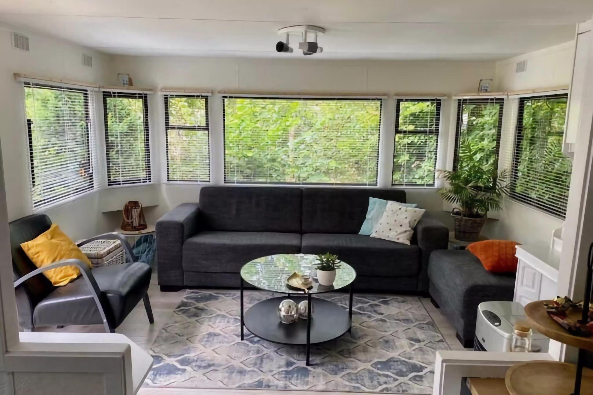 Parterre: (Wohnzimmer(TV, Sitzecke, Radio, Heizung), Küche(Esstisch, Wasserkocher, Toaster, Kochherd, Dunstabzugshaube, Kaffeemaschine, Backofen, Kombi-Mikrowelle, Kühl-/Gefrierkombination, Waschmaschine), Schlafzimmer(Doppelbett), Schlafzimmer(Einzelbett, Einzelbett), Badezimmer(Trockner, Dusche, Waschbecken, Toilette, Bügelbrett, Bügeleisen, Föhn)) Esstisch, Kühlschrank, Terrasse, Garten, Gartenmöbel, Grill, Parkplatz, Trampolin, Gesellschaftsspiele, Gartenhaus