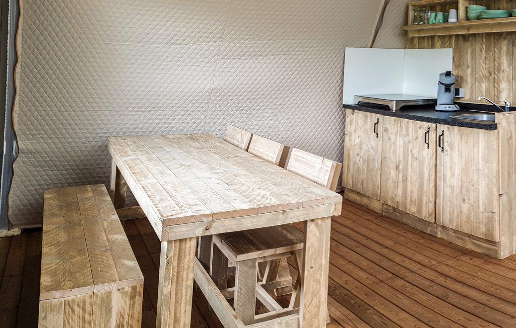 Ihre charmante Glamping-Unterkunft mit Holzterrasse ist ideal auf die Bedürfnisse Ihrer Familie abgestimmt. Sie ist ausgestattet mit gemütlichen Holzmöbeln, die drinnen wie draußen zum Verweilen einladen. In der praktischen Küchenzeile bereiten Sie Ihre Mahlzeiten zu, die Sie anschließend entweder im gemütlichen Essbereich oder auf der Terrasse genießen. Lassen Sie hier auch den Tag entspannt ausklingen.