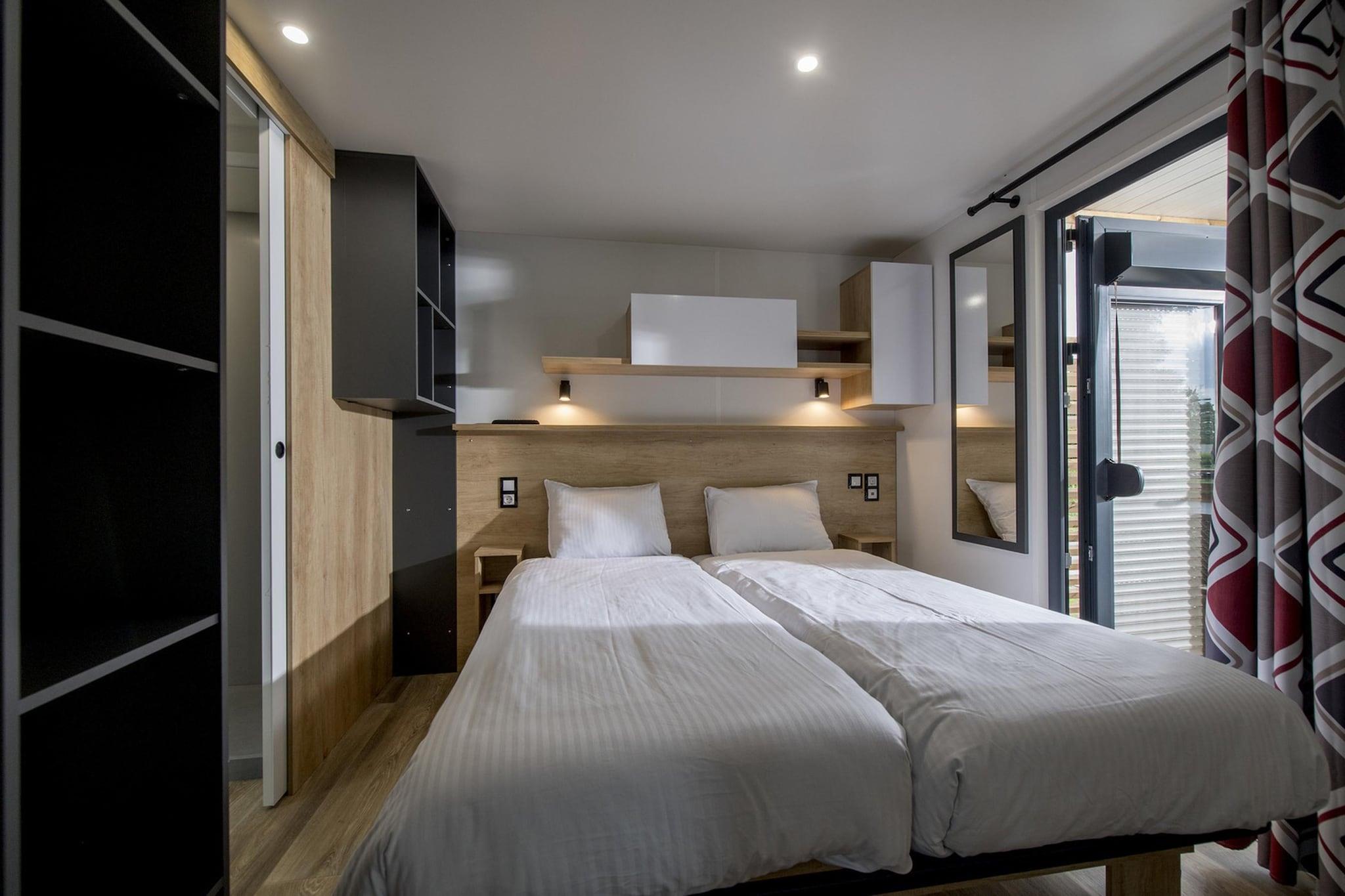 Stilvoller Komfort im Herzen des Parks Willkommen in der Eilandlodge – einem modernen, lichtdurchfluteten Rückzugsort mitten im lebhaften Ferienpark Eiland van Maurik. Diese stilvolle Lodge ist ideal für Familien oder Gruppen und bietet Platz für bis zu vier Erwachsene und zwei Kinder. Sie verfügt über drei gemütliche Schlafzimmer (darunter ein gemütliches Zimmer mit Etagenbett für die Kleinen) und zwei Badezimmer für zusätzlichen Komfort und Privatsphäre. Die durchdachte Einrichtung mit eleganten Materialien und warmen Akzenten sorgt dafür, dass Sie sich vom ersten Moment an wie zu Hause fühlen. Genießen Sie entspannte Morgen oder Sonnenuntergangsabende auf der teilweise überdachten Holzveranda mit Sonnenliegen und Sitzgelegenheiten im Freien. Abenteuer, Entspannung & tierfreundlicher Spaß Dank der Nähe zum Schwimmbad und anderen Parkeinrichtungen ist die Lodge ein idealer Ort für Entspannung und Aktivität. Und da Ihre vierbeinigen Freunde willkommen sind, können Sie Ihren Urlaub mit der ganzen Familie verbringen! Spazieren Sie mit Ihrem Hund am Jachthafen entlang oder erkunden Sie die malerischen, haustierfreundlichen Wanderwege, die sich durch die umliegende Landschaft von Gelderland schlängeln. Es gibt sogar einen ausgewiesenen Hundestrand in der Nähe des Erholungsgebiets De Meent, wo Hunde frei planschen und spielen können. Lokale Gerichte & niederländische Köstlichkeiten Verwöhnen Sie sich nach einem erlebnisreichen Tag mit regionalen Spezialitäten. Genießen Sie ein Abendessen am Wasser im 't VeerHuys, einem beliebten Lokal mit traditionellen niederländischen Gerichten und frischen Meeresfrüchten, oder erkunden Sie versteckte Cafés in Maurik für Kaffee und Apfelkuchen mit Aussicht. Ob Sie Boot fahren, Rad fahren oder am Pool entspannen, während Ihr Hund neben Ihnen döst – die Eilandlodge ist Ihr Ausgangspunkt für unvergessliche, haustierfreundliche Urlaubserinnerungen.