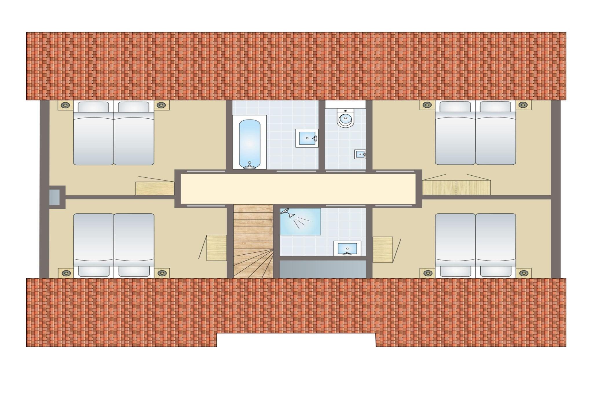 Parterre: (Eingangshalle(Toilette), Wohnzimmer(TV), offene Küche(Wasserkocher, Kochherd(6 Kochplatten, Gas), Kaffeemaschine(Filter, pads), Backofen, Mikrowelle, Spülmaschine, Kühl-/Gefrierkombination), Schlafzimmer(Doppelbett oder 2 Einzelbetten(Boxspring), TV), Schlafzimmer(Einzelbett(Boxspring), Einzelbett(Boxspring)), Badezimmer(Dusche, Waschbecken), Abstellraum) In der 1. Etage: (Schlafzimmer(Doppelbett oder 2 Einzelbetten(Boxspring)), Schlafzimmer(Einzelbett(Boxspring), Einzelbett(Boxspring)), Schlafzimmer(Einzelbett(Boxspring), Einzelbett(Boxspring)), Schlafzimmer(Einzelbett(Boxspring), Einzelbett(Boxspring)), Badezimmer(Badewanne, Dusche, Waschbecken), Badezimmer(Dusche, Waschbecken), Flur(Toilette)) Terrasse, Garten, Gartenmöbel, Parkplatz, Pool(Gemeinschaftliche Nutzung mit anderen Gästen, überdacht, innen)