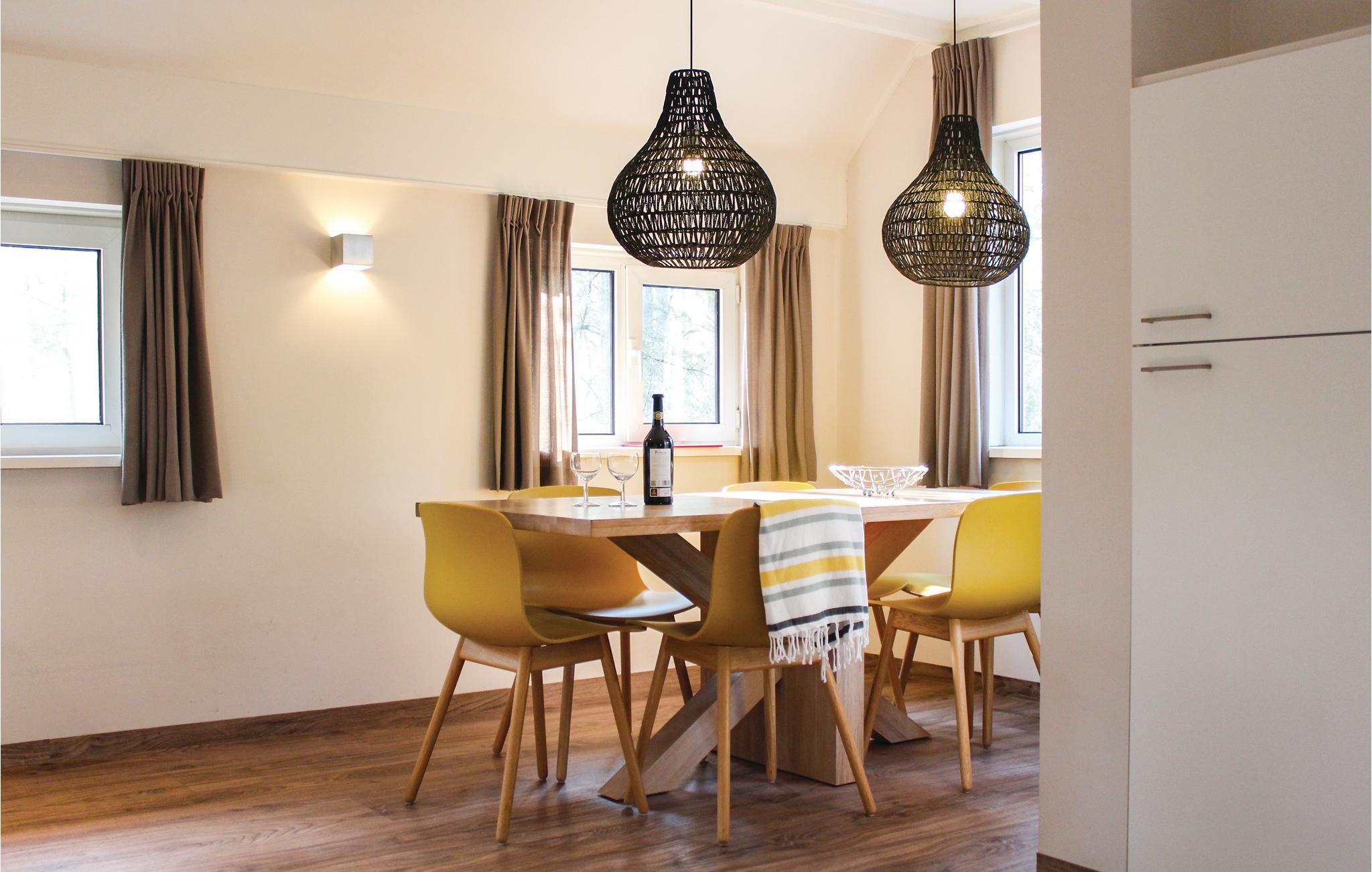 Genießen Sie einen komfortablen Urlaub mit Familie und Freunden im Ferienhausdorf Bospark Landgoed Junne, wo sich dieses wunderschöne Ferienhaus mit einem finnischen Holzbad befindet. Genießen Sie Ihren Urlaub mit Hund, Haustiere sind hier willkommen. Beginnen Sie den Tag mit einem köstlichen Frühstück im Freien. Nach einem aktiven Tag in der Umgebung voller schöner Natur und abwechslungsreicher Landschaft entspannen Sie im gemütlichen Wohnzimmer mit Kaminofen, Essbereich und Smart-TV. Genießen Sie den Abend im finnischen Holzbad, während Sie die Sterne beobachten. Die voll ausgestattete Küche verfügt über einen Geschirrspüler, Mikrowelle mit Ofen, Wasserkocher, Kaffeemaschine und Senseo. Im Erdgeschoss befinden sich auch ein Schlafzimmer und ein Badezimmer mit Badewanne, begehbarer Dusche und Waschbecken. Über die Treppe im Flur gelangen Sie in das zweite Schlafzimmer, von dem aus Sie in das dritte Schlafzimmer gelangen.