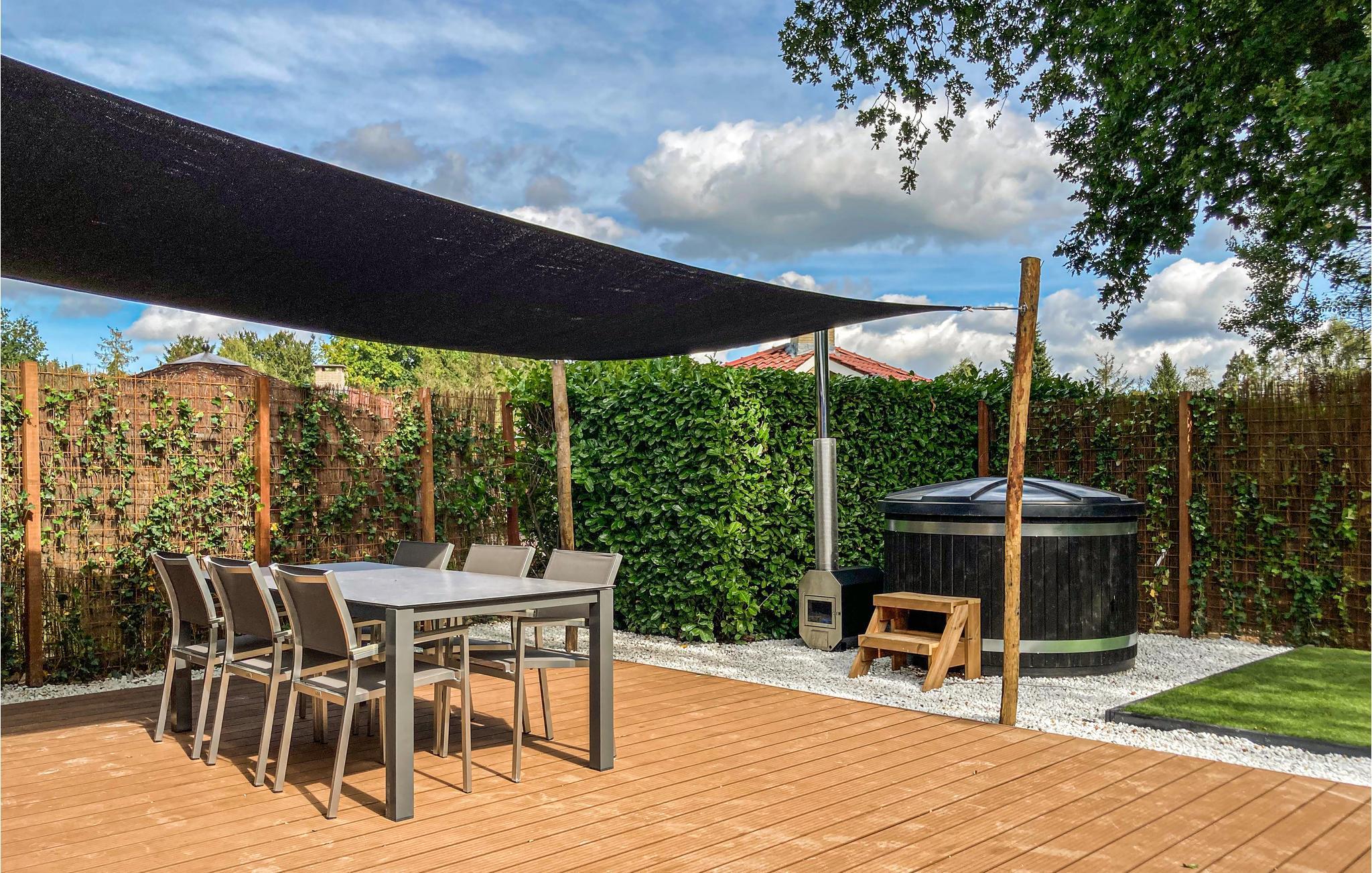 Dieses einladende Ferienhaus mit eigenem Holzbad im Garten ist angenehm in warmen Farben eingerichtet. Das Wohnzimmer verfügt über eine gemütliche Sitzecke mit Smart-TV und Klimaanlage. Die Küche ist komplett ausgestattet mit Geschirrspüler, Mikrowelle mit Ofen und Kühlschrank mit Gefrierfach. Das Badezimmer ist komfortabel ausgestattet mit Regendusche, Waschbecken und Toilette. Das dritte Schlafzimmer ist eine Schlafecke mit niedriger Decke im ersten Stock, was für Kinder ein lustiges Erlebnis ist. Das Ferienhaus verfügt über einen schön angelegten Garten mit einer sehr großzügigen Terrasse, die möbliert und teilweise überdacht ist. Das angenehme Holzbad im Garten macht den Urlaub komplett. Holz ist vorhanden, aber das Holzbad müssen Sie selbst aufheizen.