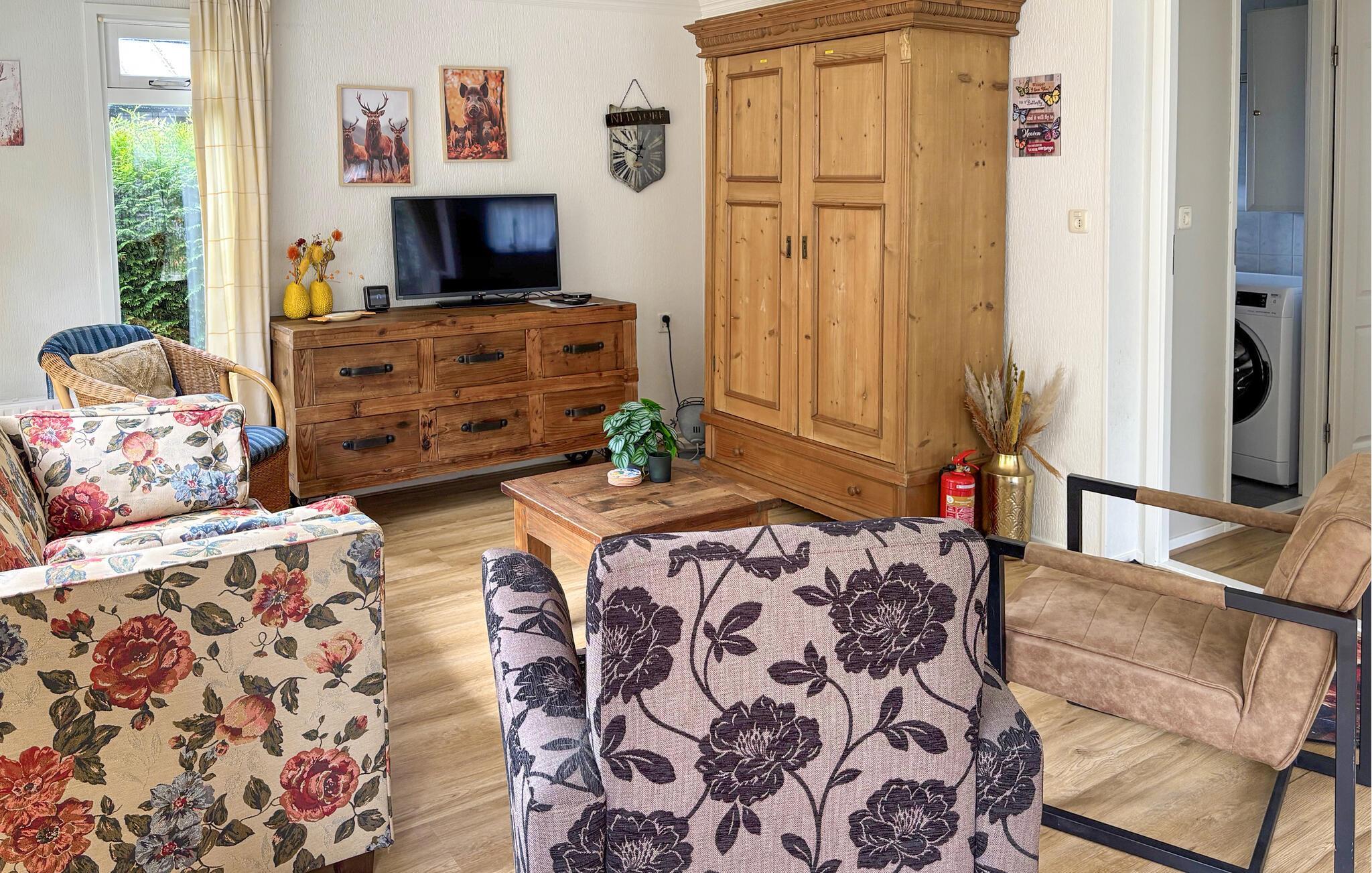 Dieses gemütliche Ferienhaus ist komfortabel in warmen Farben eingerichtet. Die schönen Holzmöbel und ansprechende Ausstattung schaffen Ihnen die perfekte Umgebung, um sich wohlzufühlen und beim gemeinsamen Kochen oder Filmabend die Gesellschaft Ihrer Lieben zu genießen. Das Ferienhaus verfügt über eine sehr geräumige Terrasse, die möbliert und teilweise überdacht ist. Sonnenbäder oder einem Kartenspiel unter freiem Himmel steht hier nichts im Wege. Machen Sie mit Ihrem Hund direkt vom Ferienhaus aus schöne Spaziergänge durch die Natur.