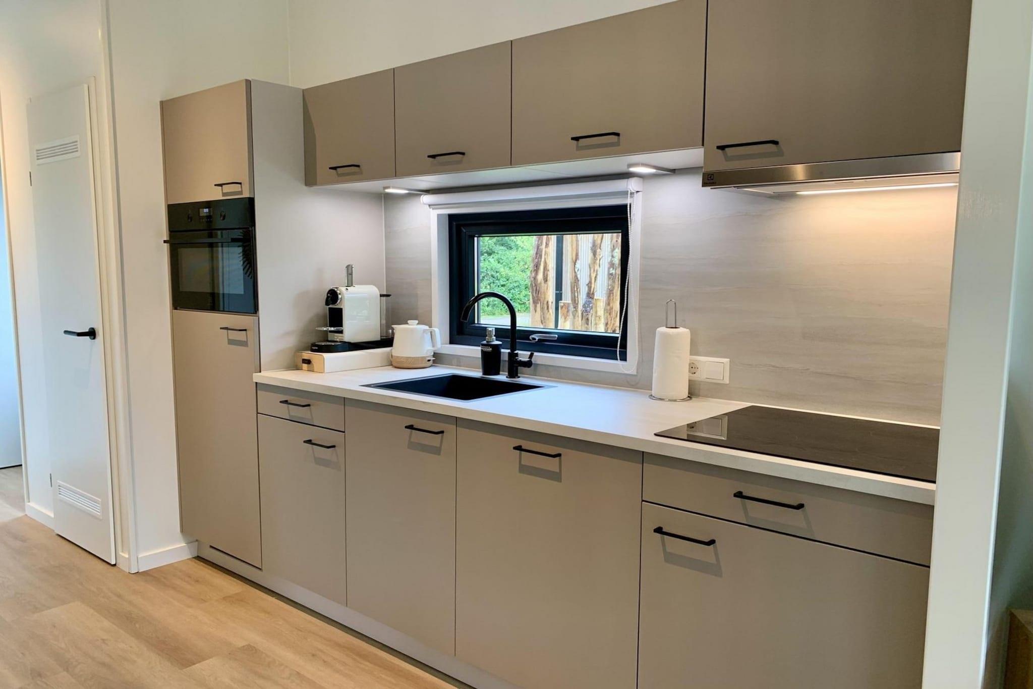 Parterre: (offene Küche(Kochplatte(Induktion), Wasserkocher, Toaster, Kaffeemaschine(Espresso, Filter), Backofen, Kombi-Mikrowelle, Spülmaschine, Kühl-/Gefrierkombination), Wohn-/Schlafzimmer(TV(smart TV, Niederländische TV-Kanäle, Deutsch Fernsehsender), Esstisch, Sitzecke), Schlafzimmer(Doppelbett(80 x 210 cm)), Schlafzimmer(Einzelbett, Etagenbett(90 x 200 cm)), Badezimmer(Dusche(ebenerdige Dusche), Waschbecken, Toilette)) Sauna, Heizung(Zentral), Terrasse, Garten, Parkplatz, Parkplatz, Pool, Tennisplatz