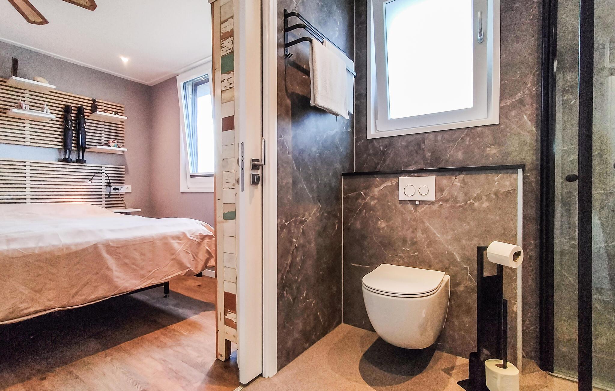 Badezimmer (nr. 1) - WC. Warmes und kaltes Wasser. Dusche