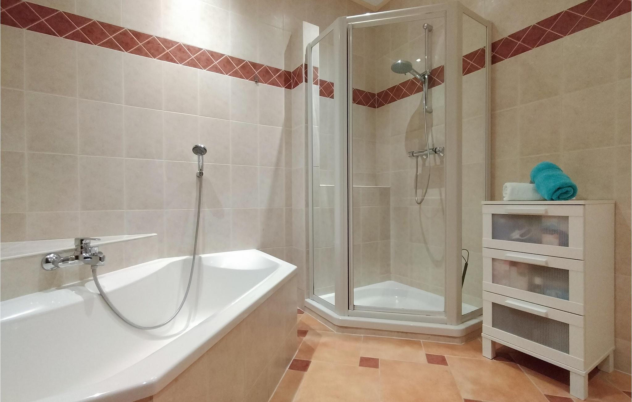 Badezimmer (nr. 1) - Warmes und kaltes Wasser. Handdusche, Wanne und Dusche