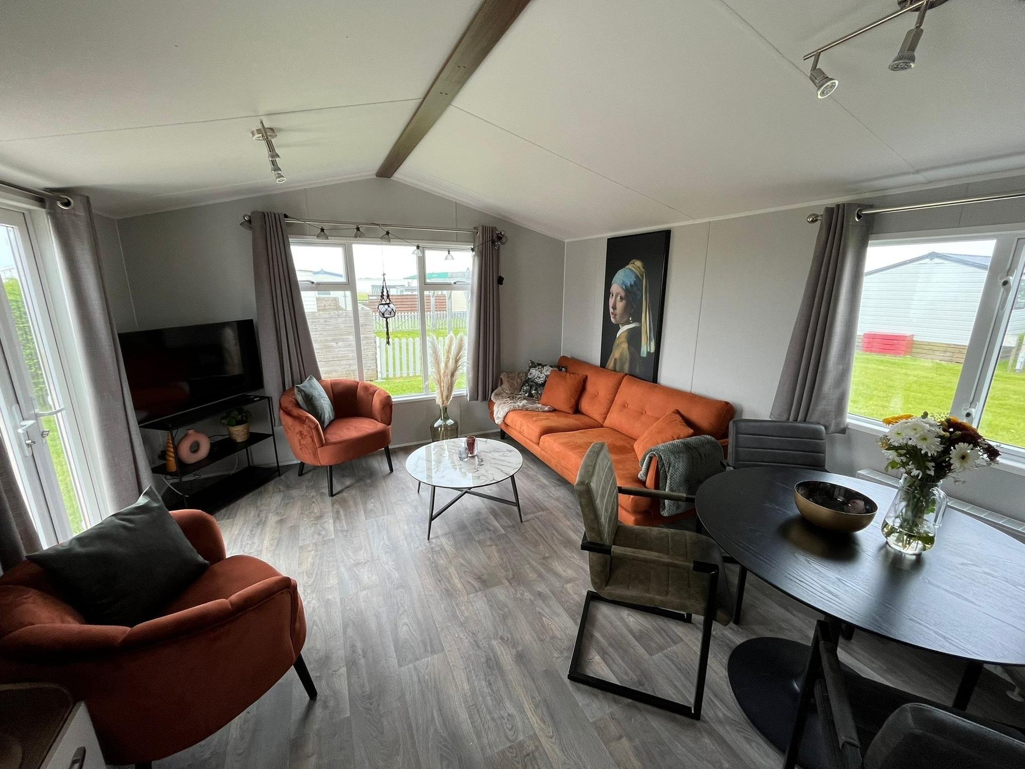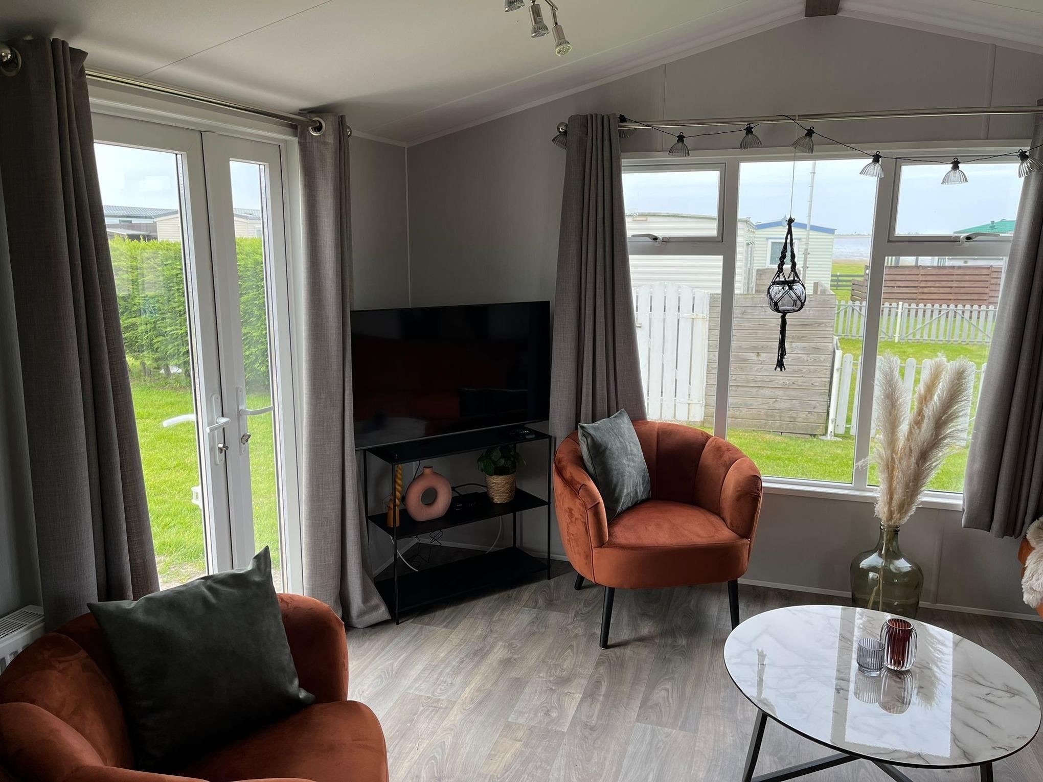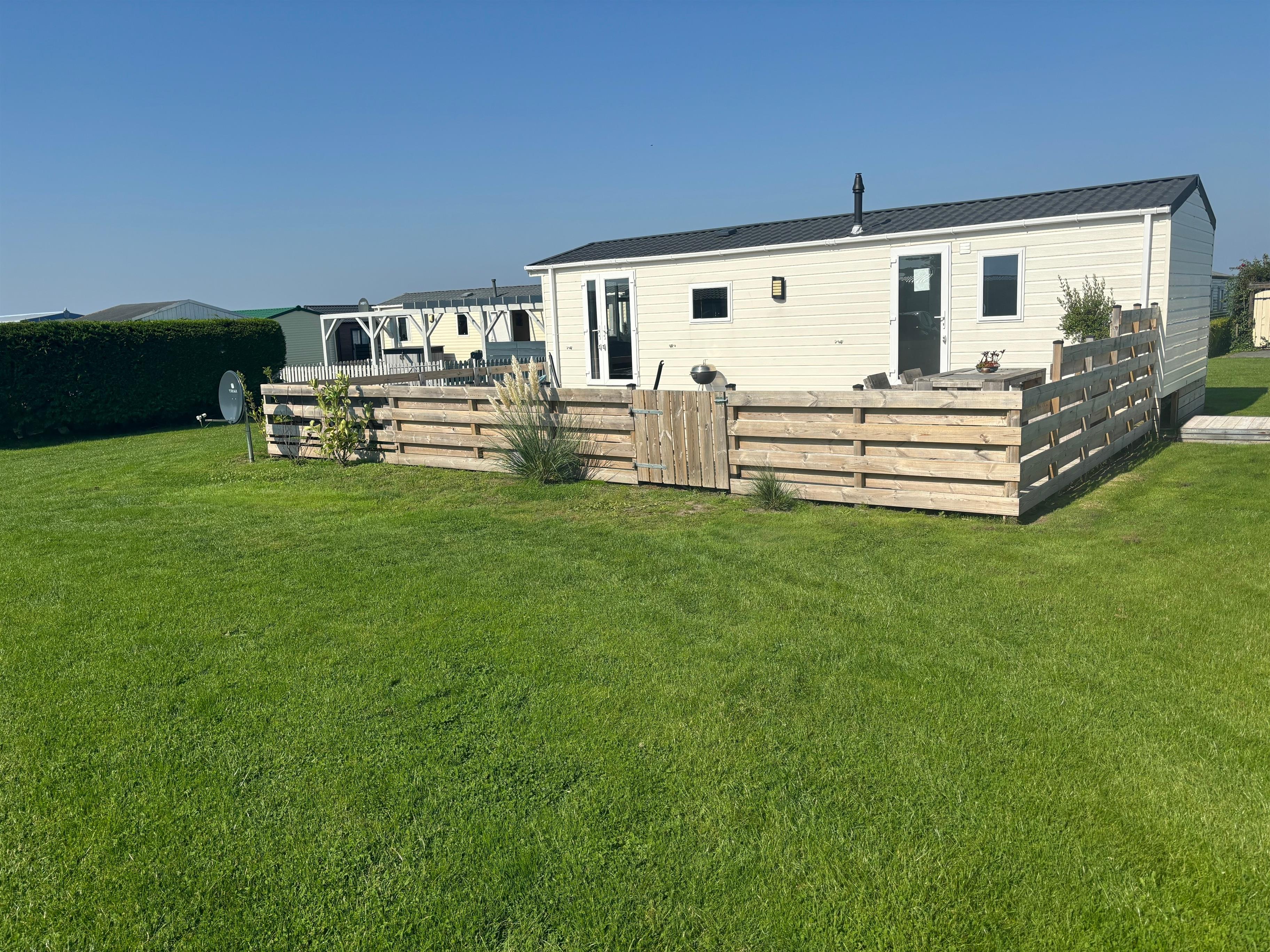 Das Chalet Ankerglück ist nagelneu und wurde frisch aufgestellt. Die Terrasse wird komplett eingezäunt und ist sehr groß! Schöne Möbel für den Aussenbereich zum Chillen.