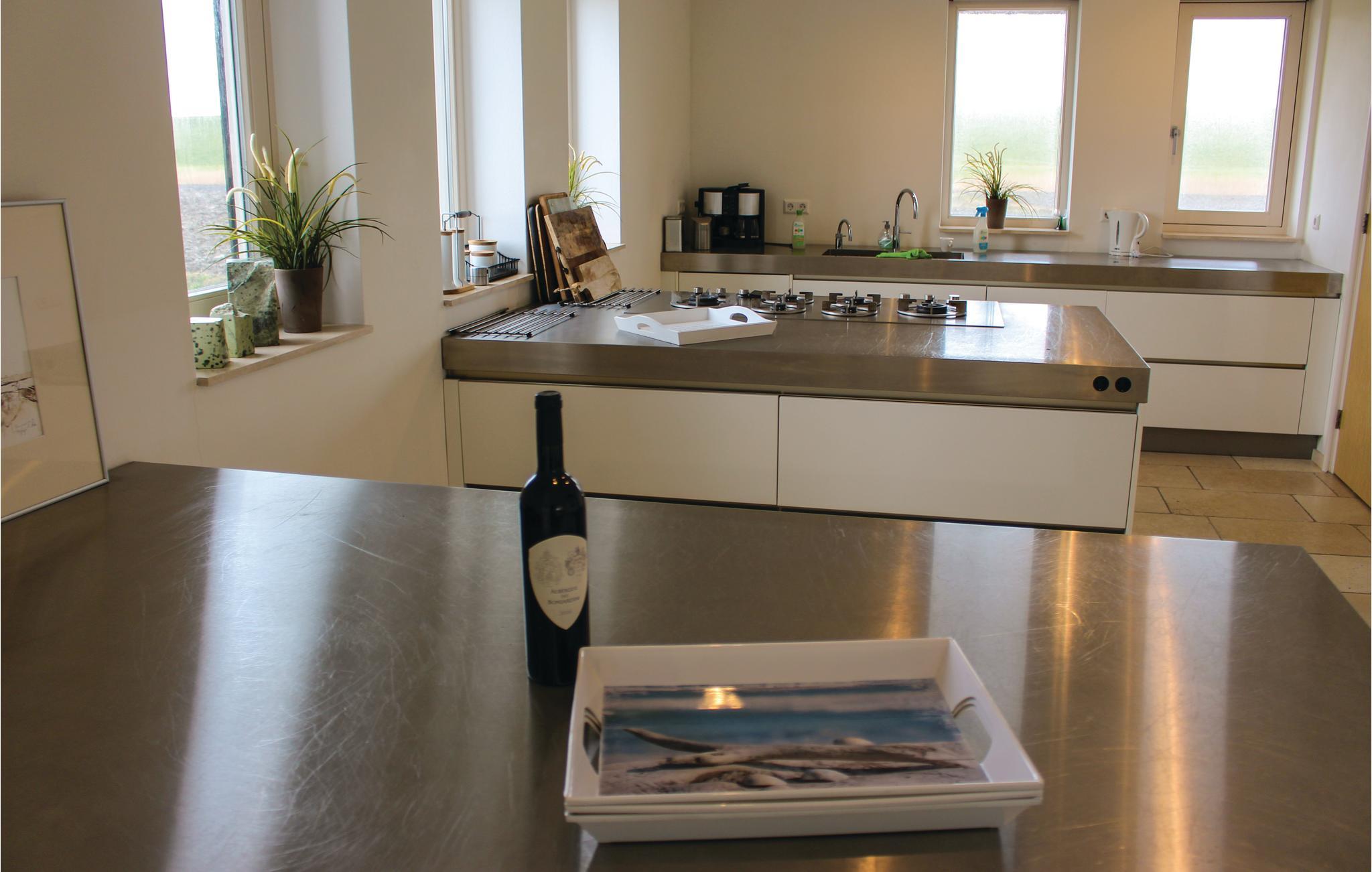 Direkt am Wattenmeer bietet das Ferienhaus Wadd en Zee eine moderne Unterkunft für 22 Personen. Es verdankt seinen Namen der wunderbaren Lage direkt am Wattenmeer. Sie wohnen hier naturnah und fern von Nachbarn, ideal für einen ruhigen Urlaub, für kleine Konferenzen oder auch als Proberaum für Musikgruppen. Ein Haus mit drei Etagen, im Erdgeschoss sind Wohnzimmer, Küche, und ein Schlafzimmer (3 Pers.) mit eigenem Badezimmer (Whirpool und zwei Duschen). Im 1. und 2. Stock haben Sie Aussicht auf die Wattinseln Ameland und Schiermonnikoog. Im 1. Stock sind 5 Schlafzimmer mit eigenem Badezimmer. Ein Badezimmer verfügt über einen Jacuzzi. Im zweiten Stock gibt es ein Durchgangszimmer mit 2 Doppelbetten (diese können auch getrennt werden). Im 3. Stock ist ein Durchgangszimmer mit zwei Einzelbetten. Auf dem 8000 m² großen Grundstück können Sie im Freien aktiv werden. Das Ferienhaus garantiert nicht nur einen schönen Urlaub mit der Familie, es kann auch geschäftlichen Anforderungen gerecht werden. Schlafzimmer 9 und 10 befinden sich in einer Nische und sind durch einen Paravent getrennt.