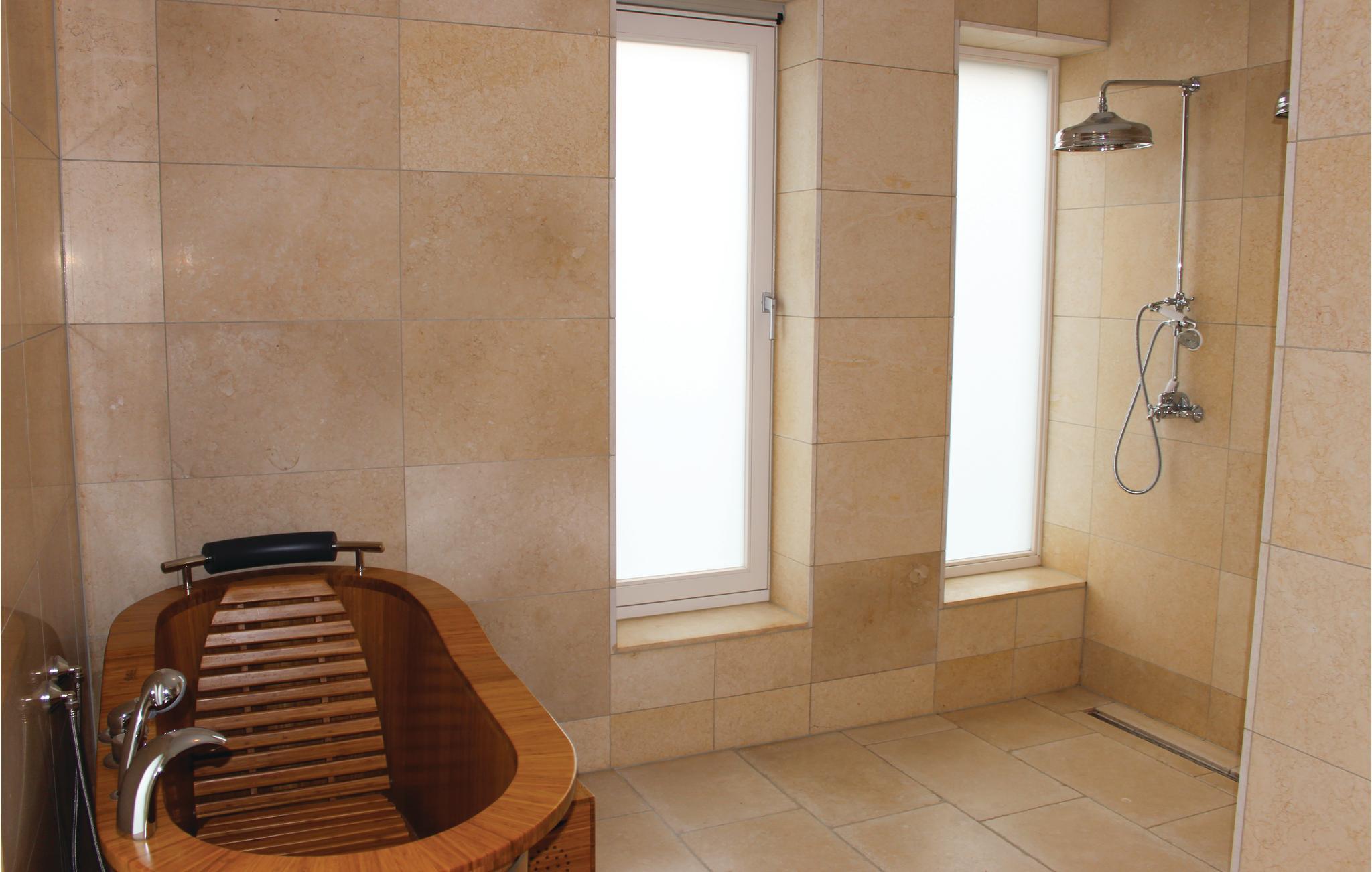 - WC mit warmem und kaltem Wasser, Handbrause, Badewanne und Dusche