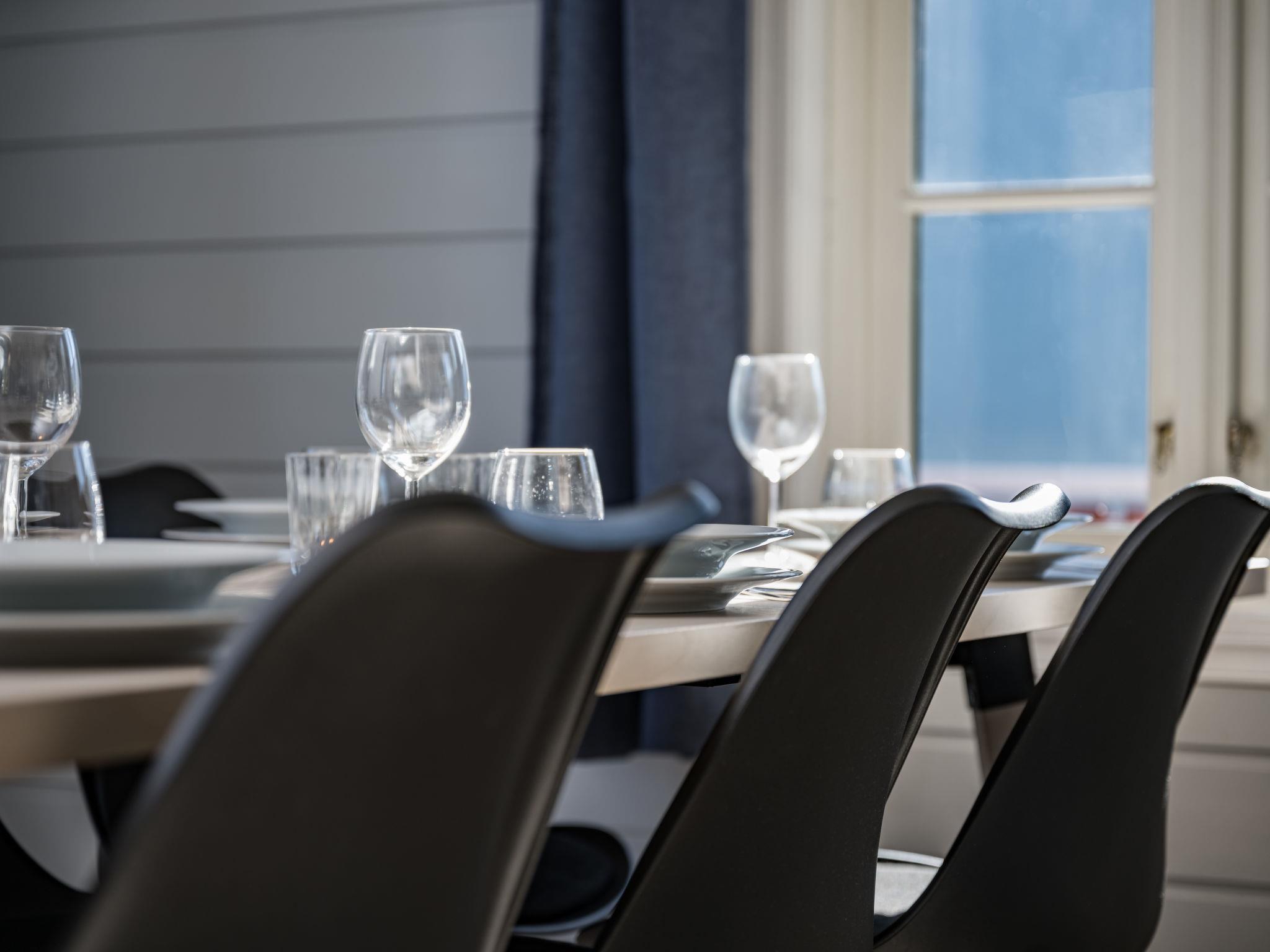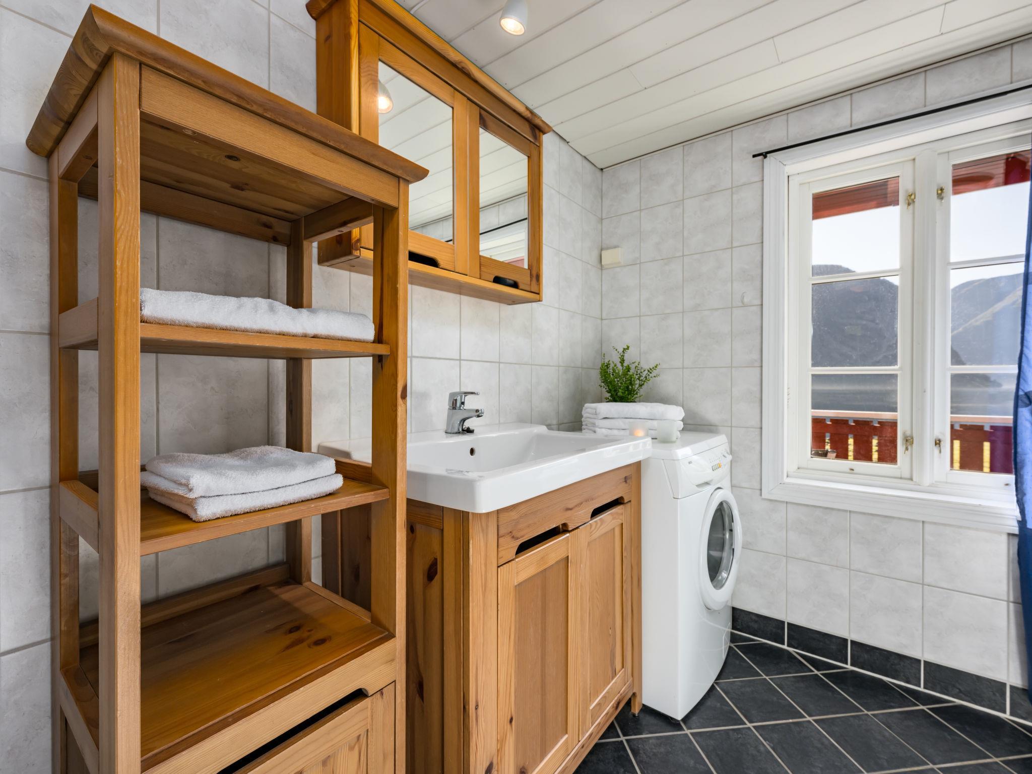 "Tor", 5-Zimmer-Haus 110 m2 auf 3 Stockwerken. Gemütlich eingerichtet: Wohn-/Esszimmer mit Schwedenofen, Esstisch, TV und DVD. Ausgang zur Terrasse. Offene Küche (Backofen, Geschirrspüler, 4 Glaskeramikplatten, Mikrowelle, Tiefkühler, elektrische Kaffeemaschine). Dusche/WC. Unteres Geschoss: 2 Doppelzimmer. Dusche/WC, Sauna. Obergeschoss: 1 Doppelzimmer. 1 Zimmer mit 2 Betten (75 cm). E-Heizung, Fussbodenheizung. Schöne Sicht auf das Meer, die Berge und fjord. Zur Verfügung: Waschmaschine. Bitte beachten: Rauchmelder, Feuerlöscher. Keine interne Verbindung zwischen den Etagen. Gefriertruhe ca. 300 l. TV über WLAN. Flexibilität bei der Bettenaufteilung: Es stehen mehr Schlafmöglichkeiten zur Verfügung als die maximal zugelassene Personenzahl, diese darf dennoch nicht überschritten werden. 924531169