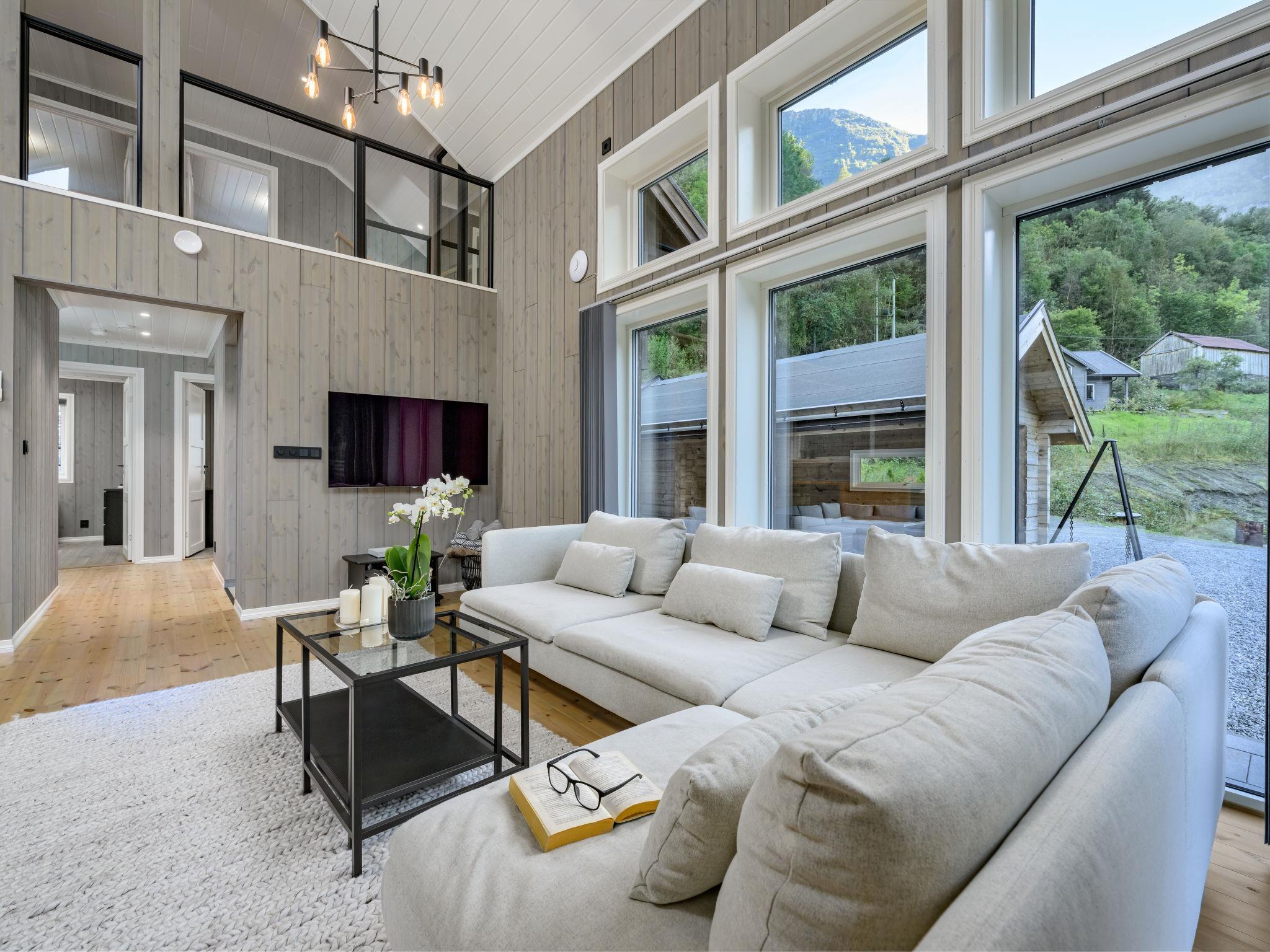 "Kaja", 6-Zimmer-Chalet 115 m2 auf 2 Stockwerken. Hell, geschmackvoll eingerichtet: offenes Wohn-/Esszimmer mit TV und Heizofen. 1 Zimmer mit 1 Doppelbett (160 cm, Länge 200 cm). 1 Zimmer mit 1 Bett (90 cm, Länge 200 cm). Offene Küche (Backofen, Geschirrspüler, 4 Induktionskochplatten, Toaster, Wasserkocher, Mikrowelle, Tiefkühler, elektrische Kaffeemaschine) mit Esstisch. Dusche/WC. Obergeschoss: offenes Wohnzimmer. 1 Zimmer mit 1 Doppelbett (160 cm, Länge 200 cm). 1 Zimmer mit 2 Betten (80 cm, Länge 200 cm). Schöne Panoramasicht auf das Meer, die Berge und fjord. Zur Verfügung: Waschmaschine, Sauna. Internet (WLAN, gratis). Bitte beachten: Nichtraucher-Unterkunft. 924531169