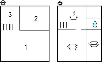 Badezimmer (nr. 1) - WC. Warmes und kaltes Wasser. Dusche