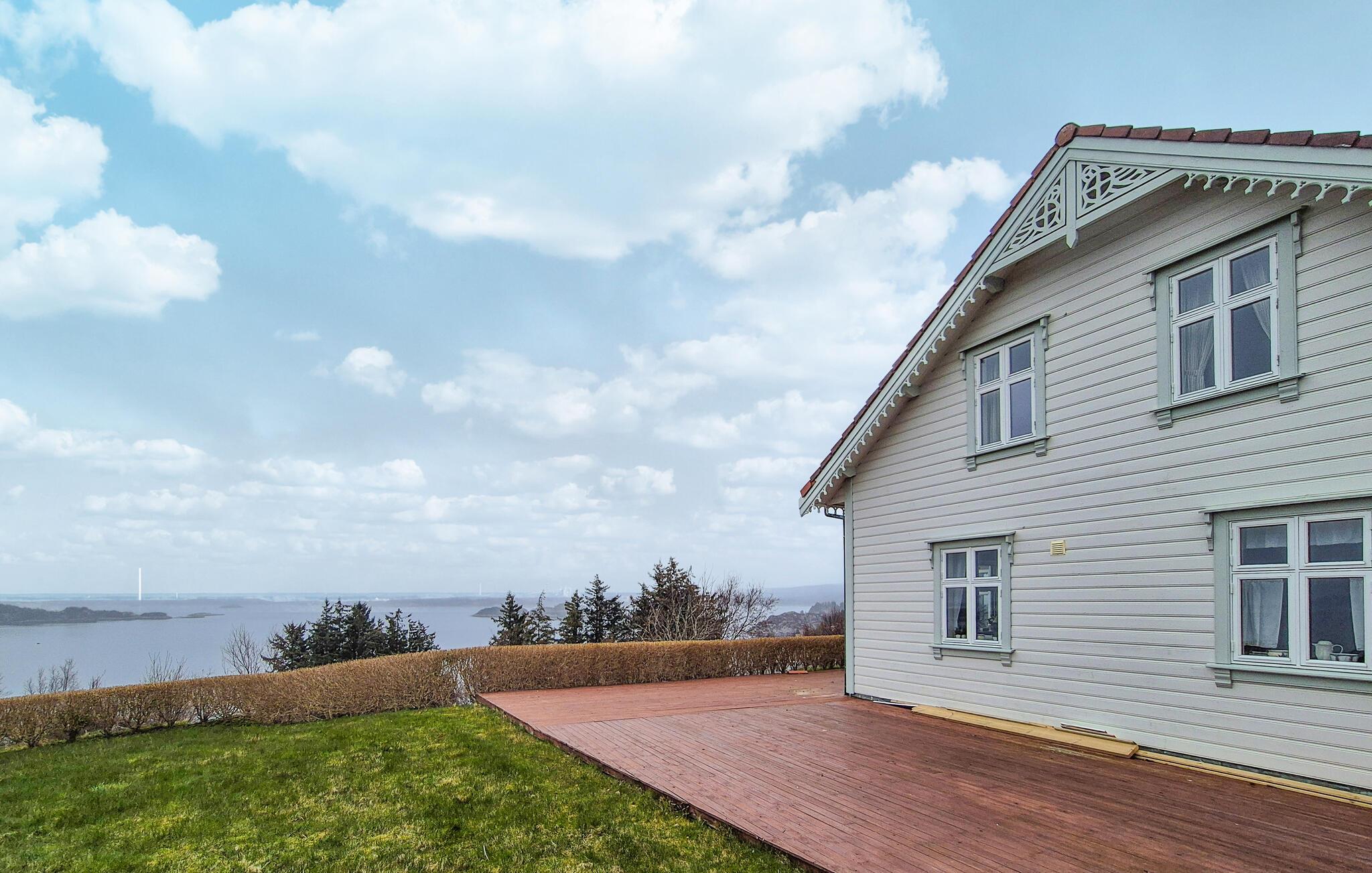 Genießen Sie in diesem großzügigen Ferienhaus einen bezaubernden Blick aufs Meer.
