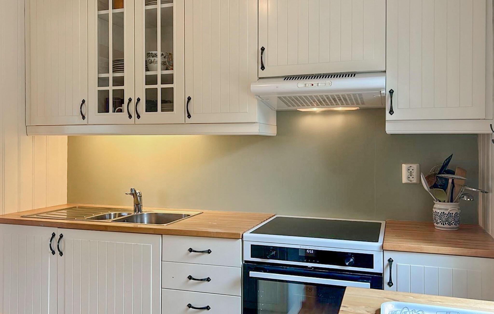 Sind Sie bereit für einzigartige Naturerlebnisse? Diese gemütlich eingerichtete Hütte liegt in einer herrlichen, weitläufigen Landschaft und nur wenige Gehminuten vom Fjord und den Bergen entfernt und verspricht einen tollen Urlaub mit unzähligen Outdoor-Aktivitäten. Das Beste daran ist der Panoramablick, den Sie vom Schlafzimmer, dem Wohnzimmer und der Terrasse aus von Sonnenaufgang bis Sonnenuntergang genießen können. Basteln Sie mit den Kindern am Esstisch eine schöne Walddekoration und genießen gesellige Stunden in dem gemütlichen Haus.