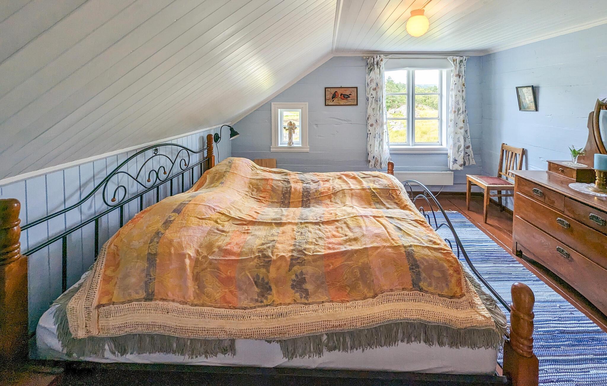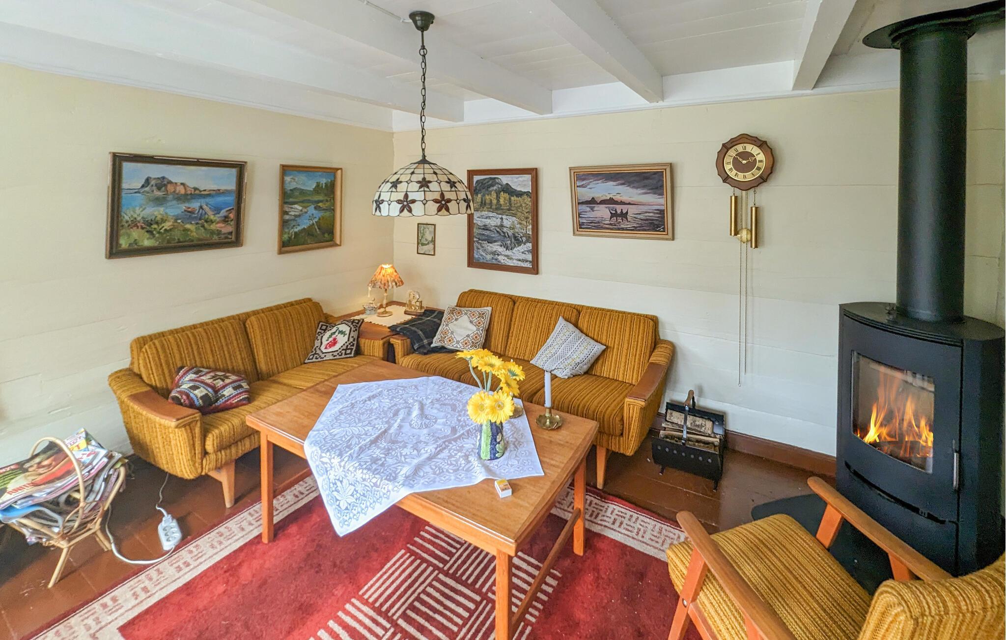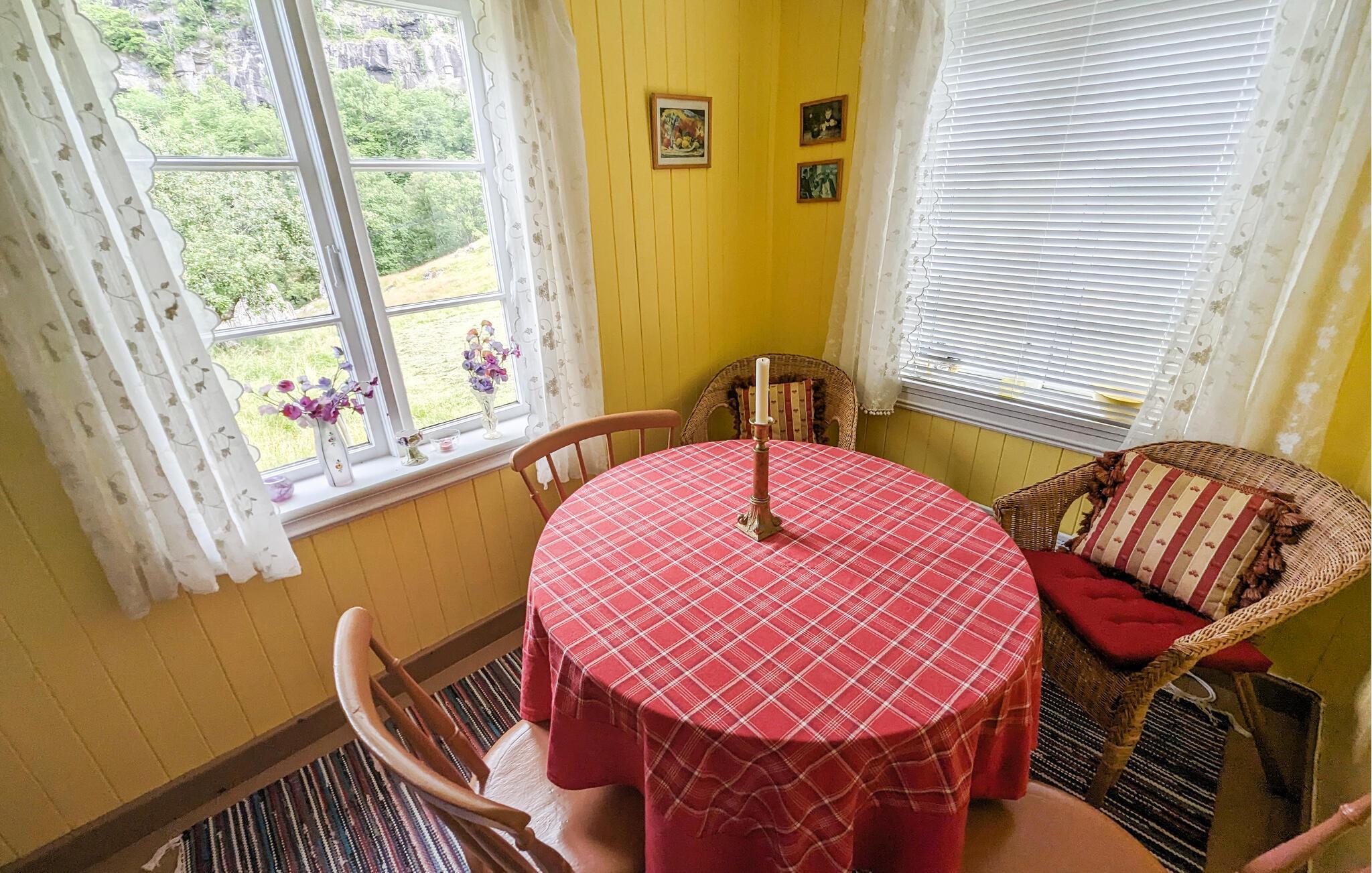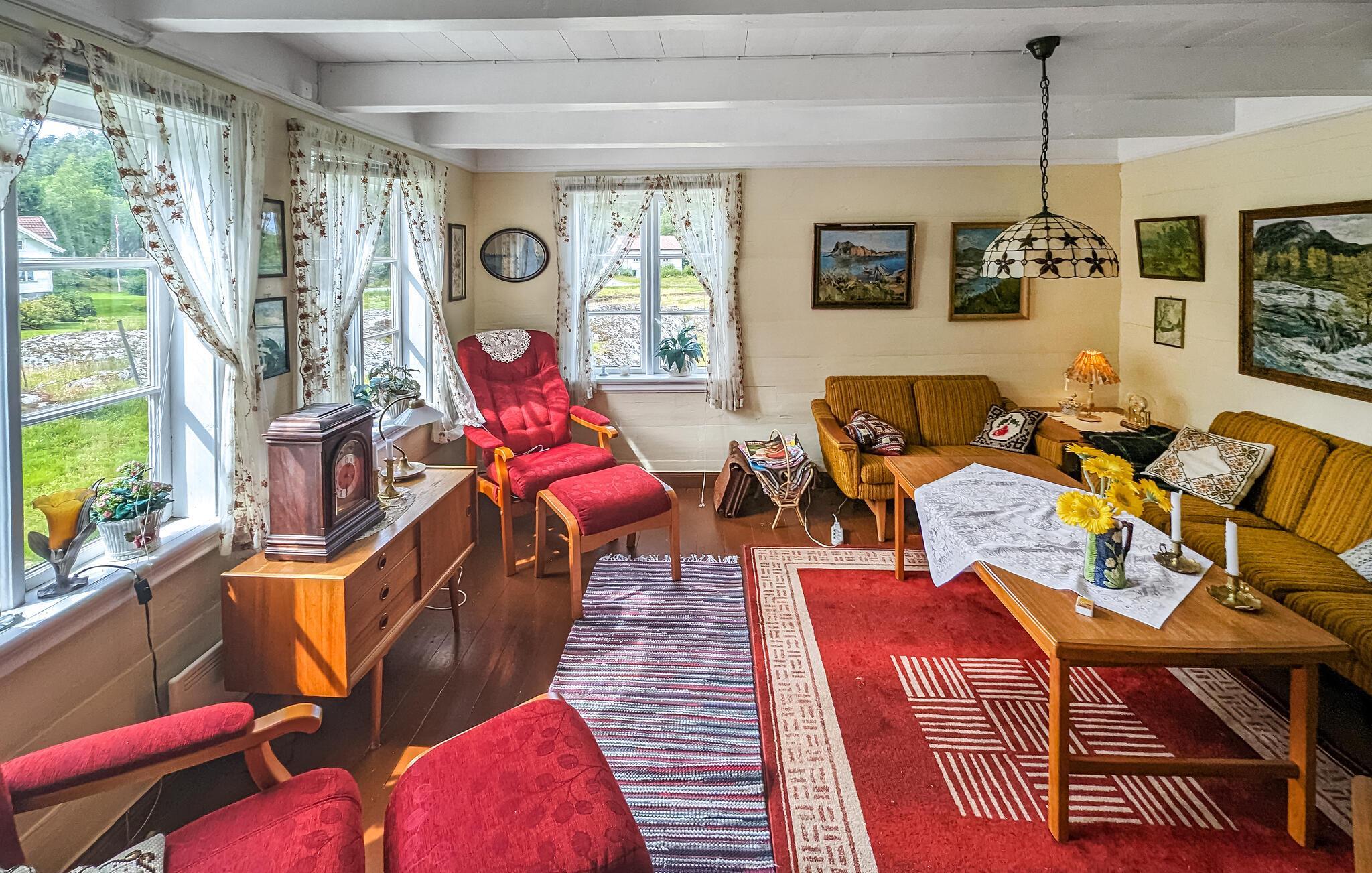 Im Süden Norwegens lädt Sie dieses Ferienhaus mit einem schönen Grundstück und authentischem Landhaus-Ambiente zu einem unvergesslichen Urlaub ein. Erleben Sie die malerische Ruhe in diesem entzückenden Ferienhaus, das Sie mit seinem traditionellen Charme empfängt. Mehrere gemütliche Sitzgelegenheiten sorgen für eine herzliche Atmosphäre und bieten Ihnen die Möglichkeit, den Morgen mit einer Tasse Kaffee ruhig angehen zu lassen. Hier wird Familienzeit großgeschrieben. Spielen Sie lustige Brettspiele, lösen Sie in aller Ruhe ein Kreuzworträtsel oder vertiefen Sie sich in ein gutes Buch. Bereiten Sie hausgemachte Mahlzeiten in der Küche zu und genießen Sie diese in dem gemütlichen Esszimmer, in dem man sich in längst vergangenen Zeiten wähnt.