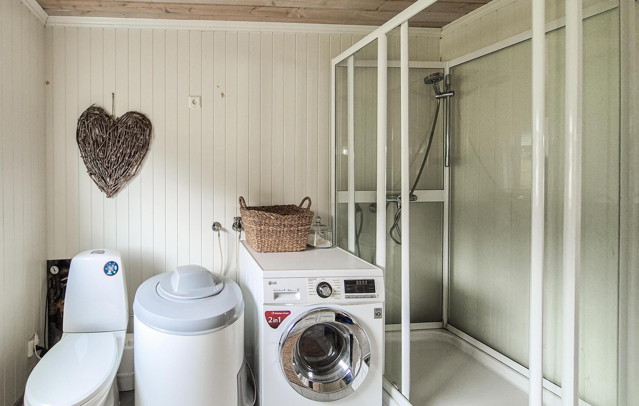 Lassen Sie den hektischen Alltag hinter sich und genießen Sie die Ruhe und Schönheit der norwegischen Küste. Die wunderschöne Lage des Ferienhauses direkt am Wasser sorgt für eine idyllische Atmosphäre, in der man die Seele baumeln lassen kann. Genießen Sie hier den ganzen Tag über die frische Seeluft und die strahlende Sonne. Die Hütte verfügt außerdem über eine gemütliche, überdachte Außenfläche, die sich ideal für gesellige Abende oder ruhige Lesestunden anbietet. Das große gemeinschaftliche Außengelände mit eingezäunter Rasenfläche bietet zudem viel Platz zum Spielen und Entspannen.