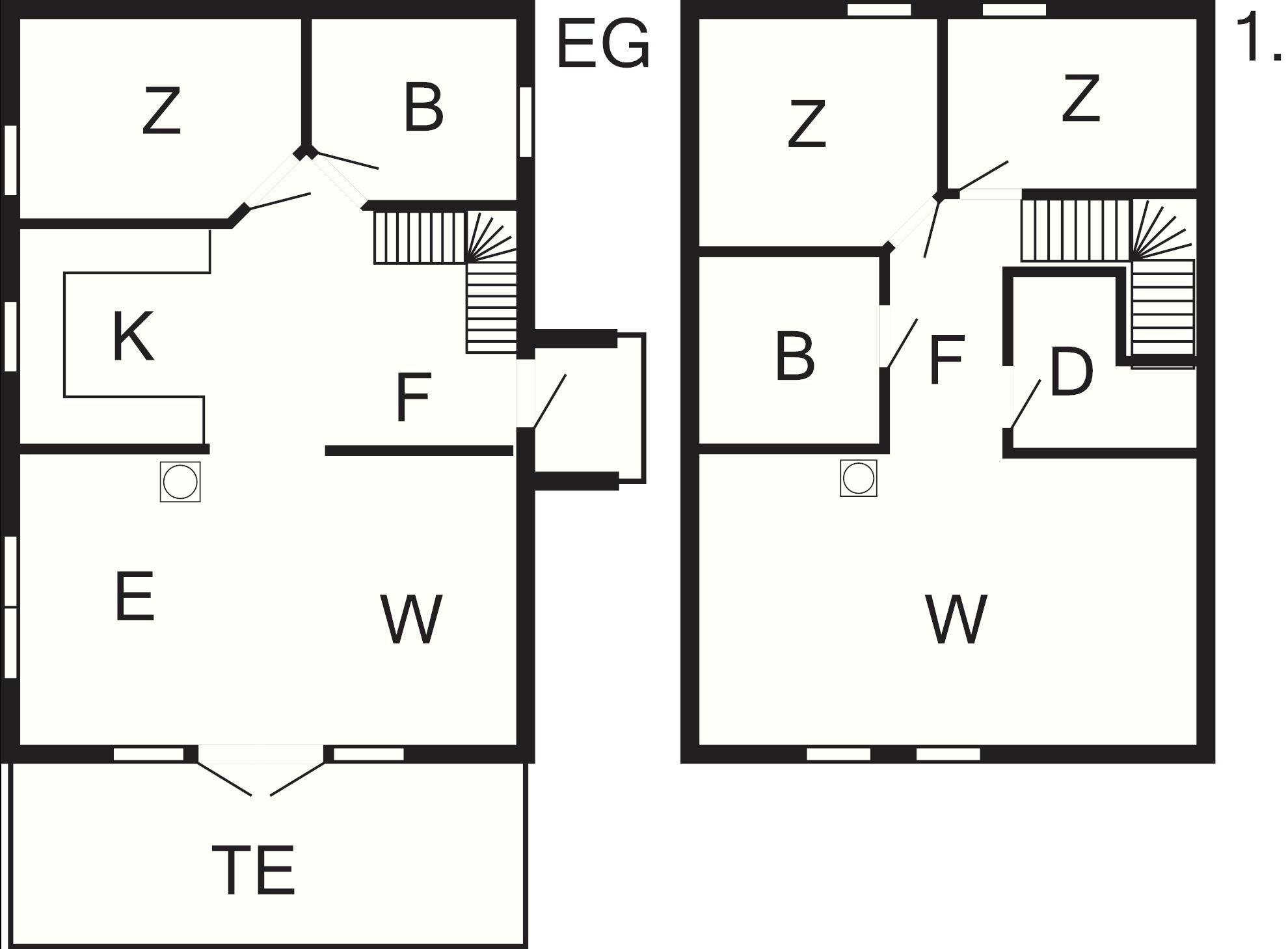 Auch im Inneren bietet das Feriendomizil erstklassige Qualität und ein Ambiente zum Wohlfühlen. Zur Ausstattung des Hauses gehört auch ein Internetanschluss per Glasfaser mit 100 MBit/Sek. Auch Empfang von einigen deutschen TV-Sendern. Im Haus können 2B ggf. zu 1DB umgestellt werden. Kombinierter Schlaf-/Wohnbereich in der 1. Etage.