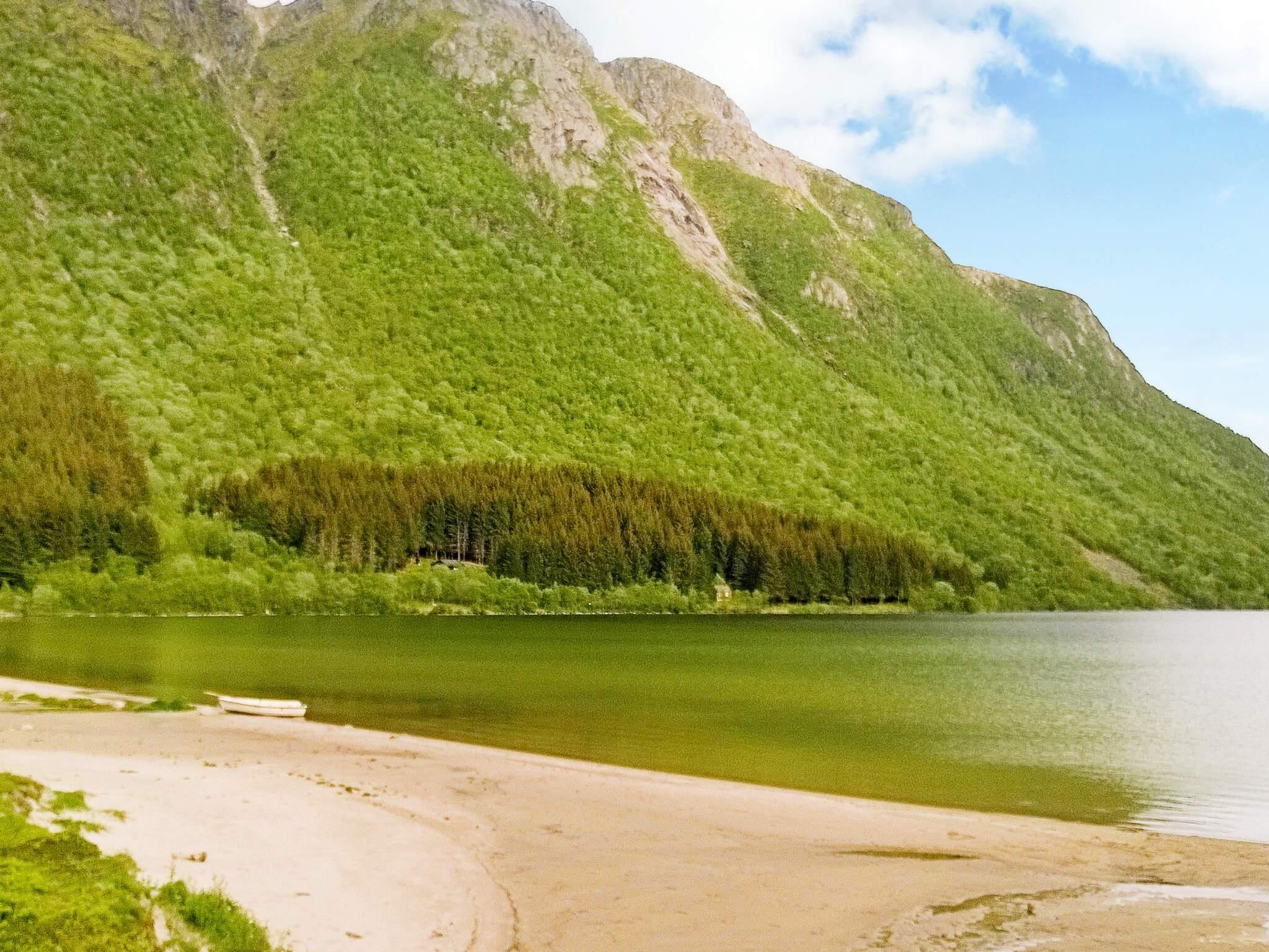 Ferienhaus mit einfachem Standard. Liegt attraktiv am See Skarsvatnet, auf der idyllischen Insel Åmøya mit Brückenverbindung zum Festland.