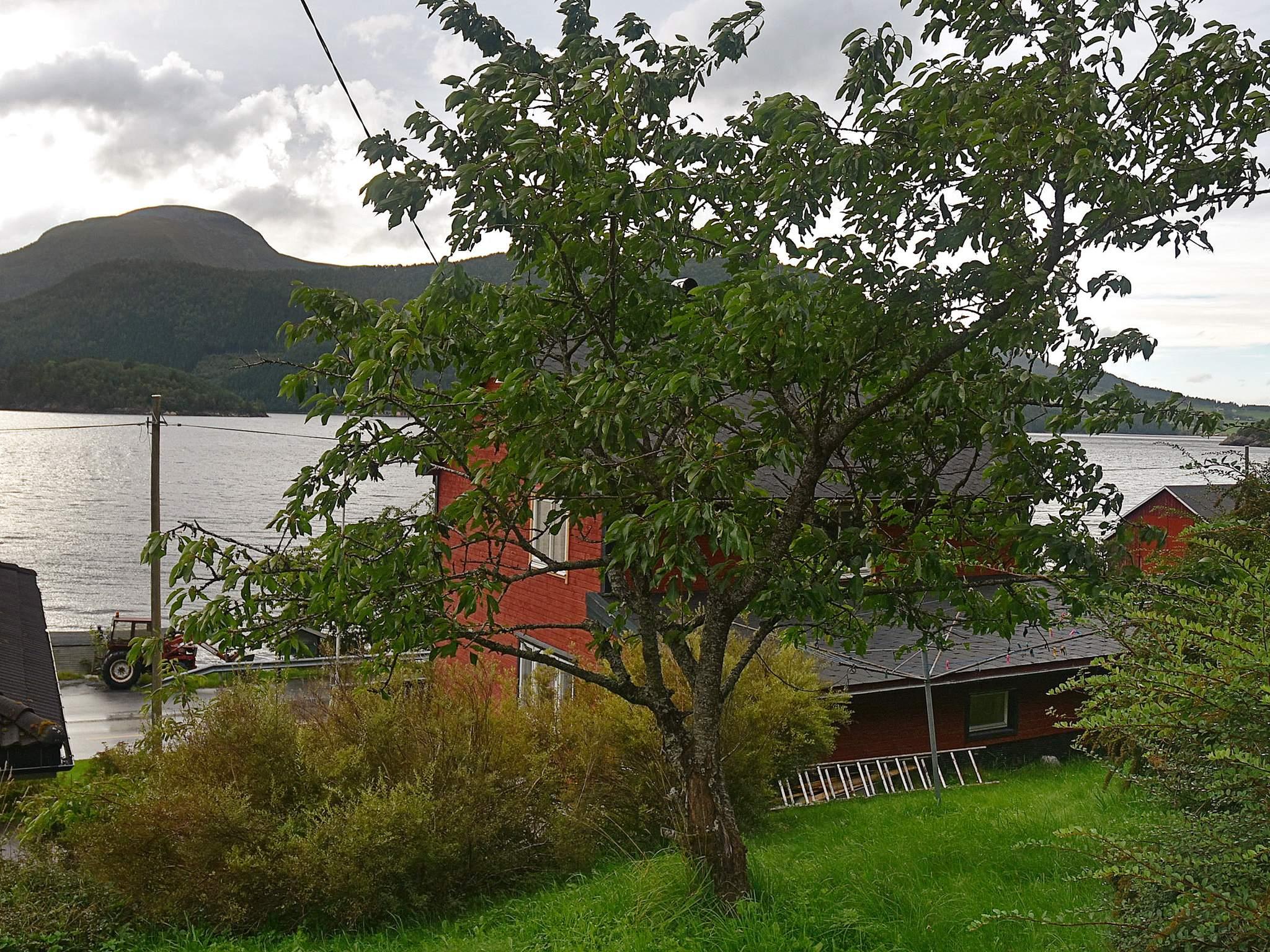 Der Hauseigentümer bewohnt das Nachbarhaus ca. 8 m weiter. Zwischen Haus und Ufer verläuft eine Straße. Das Ferienhaus liegt an der Hauptstraße RV64, mit etwas Verkehrslärm im Zusammenhang mit dem An- und Ablegen der Fähre in Åfarnes ist daher zu rechnen.