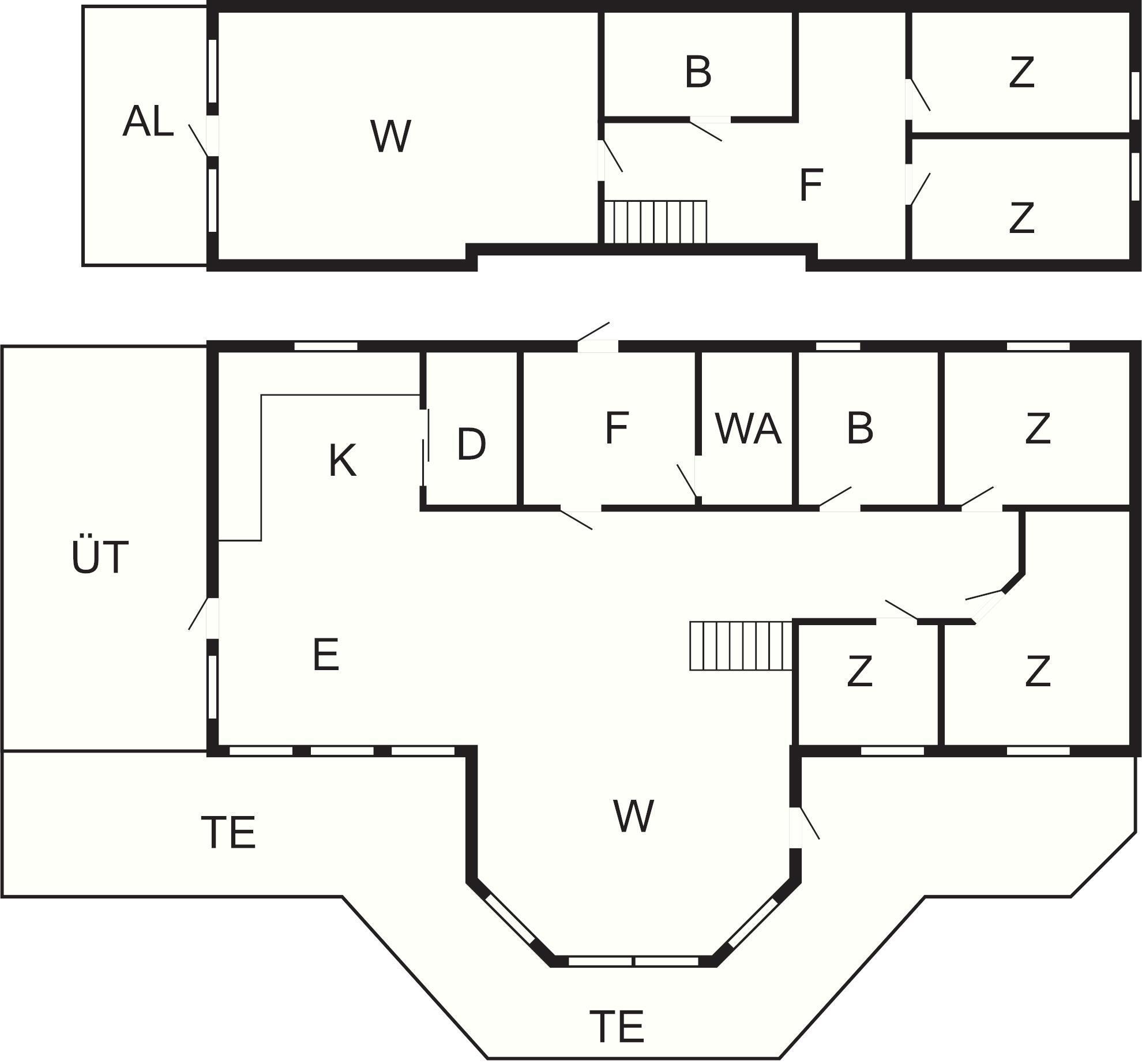 Off. Küche: Hochstuhl, E-Herd, Kühlschr., Gefriertruhe 140-199 l., Mikrow., Abzugsh., Spülm., Kaffeem.