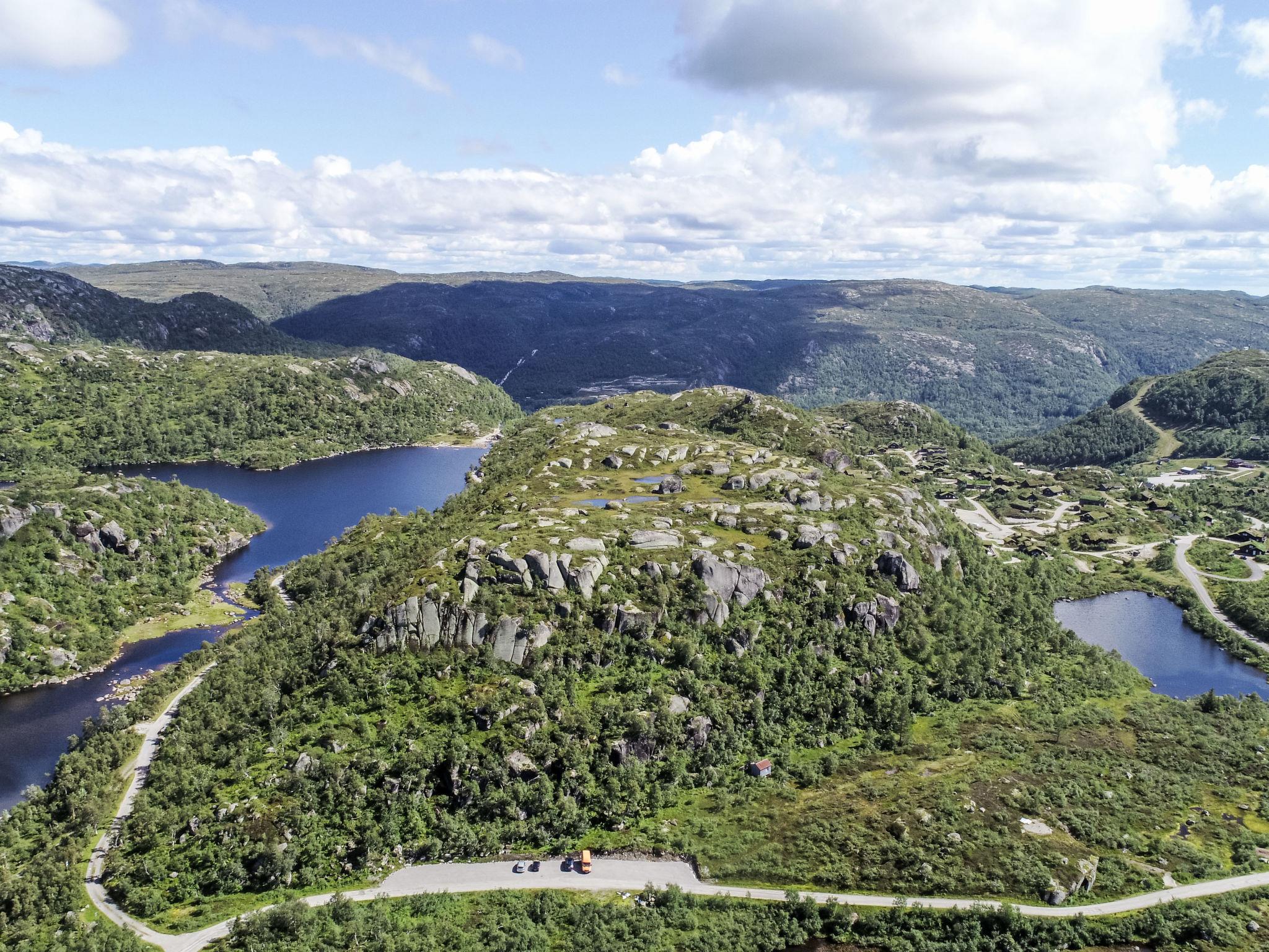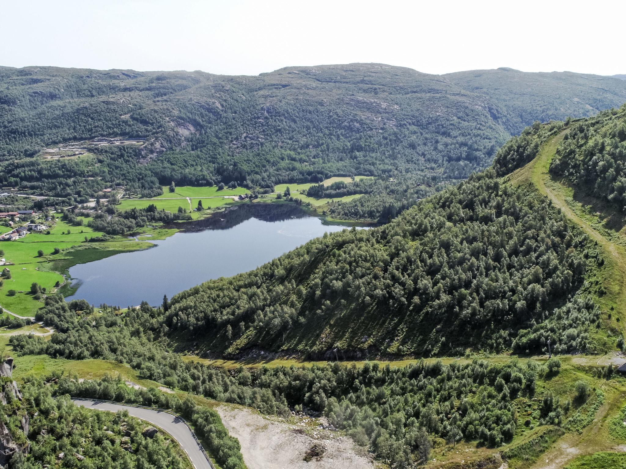 Feriensiedlung "Prestebu", 670 m.ü.M.. 23 km vom Zentrum von Kyrkjebygd, 104 km vom Zentrum von Mandal, 115 km vom Zentrum von Kristiansand, 600 m vom See. Zur Alleinbenutzung: naturbelassenes Grundstück 700 m2. Terrasse, Gartenmöbel, Grill, Parkplatz auf dem Grundstück. Einkaufsgeschäft 3 km, Supermarkt 23 km, Bushaltestelle "Ljosland Skisenter" 250 m, Bahnstation "Audnedal" 66 km, Fähre "Kristiansand" 110 km, Felsstrand 600 m.