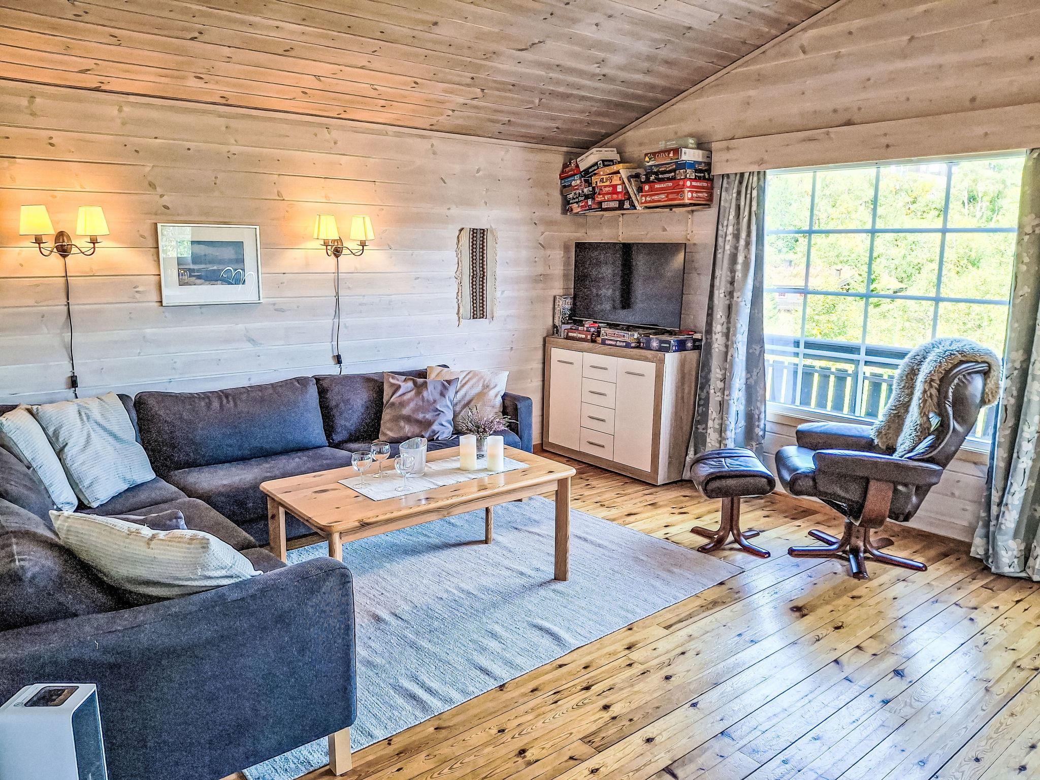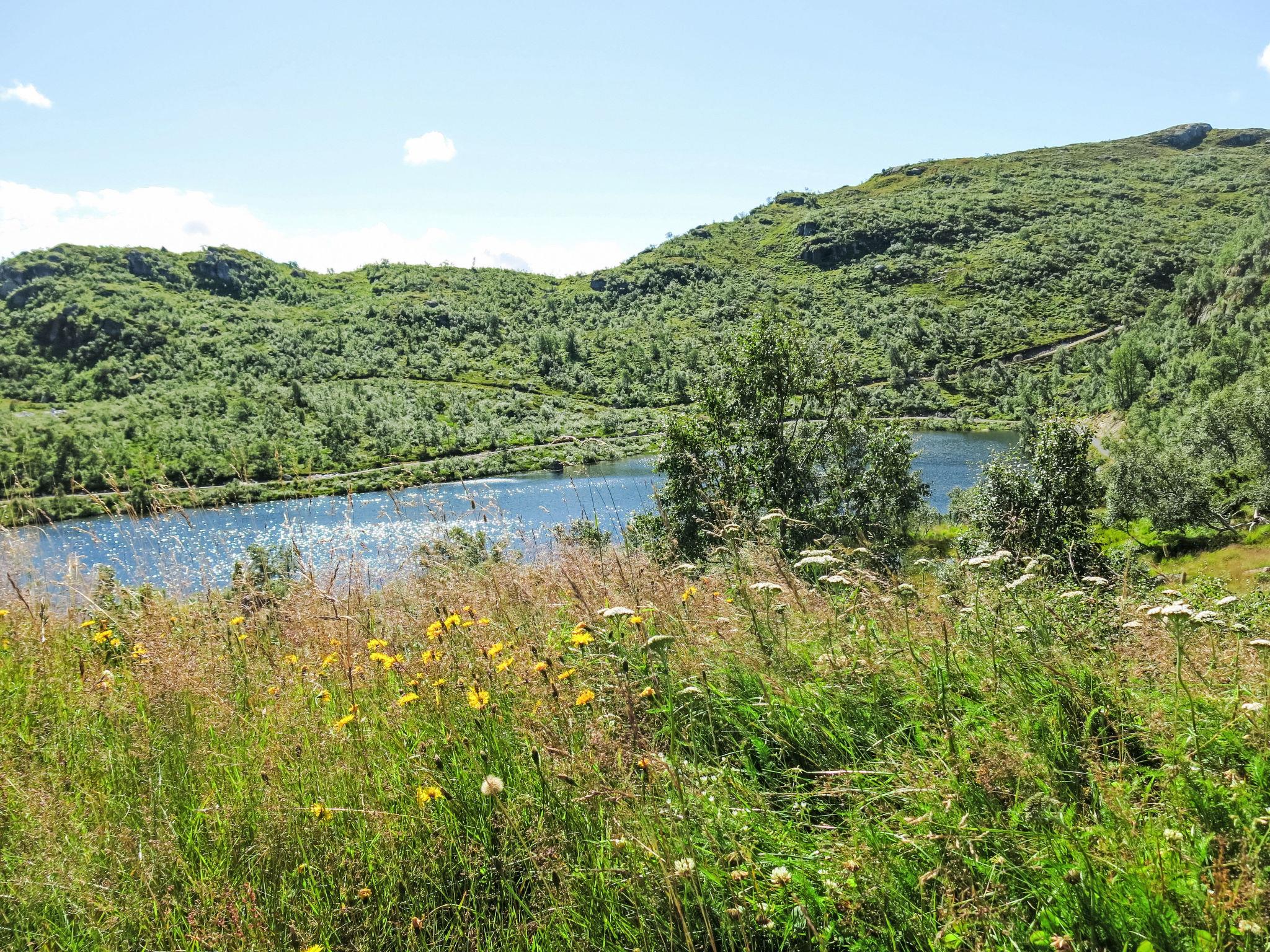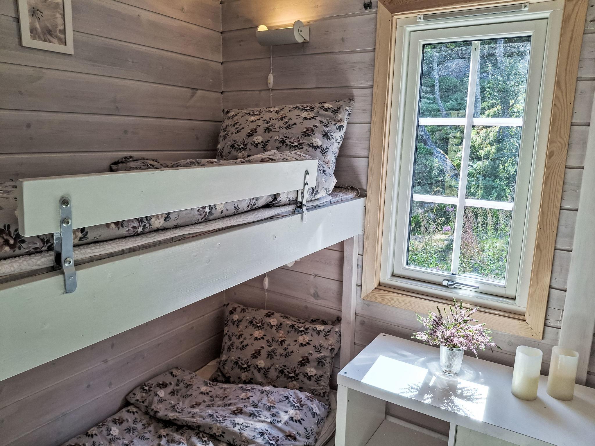 "Husebye", 4-Zimmer-Haus 65 m2. Komfortabel und gemütlich eingerichtet: offenes Wohn-/Esszimmer mit Schwedenofen, Esstisch und TV. Ausgang zur Terrasse. 1 Zimmer mit 1 Doppelbett (150 cm, Länge 200 cm). 1 Zimmer mit 1 x 2 Etagenbetten (75 cm, Länge 200 cm), 1 Doppelbett (150 cm, Länge 200 cm). 1 Zimmer mit 1 x 2 Etagenbetten (110 cm, Länge 200 cm) (80 cm, Länge 200 cm). Offene Küche (Backofen, 4 Glaskeramikplatten, Toaster, Mikrowelle, Tiefkühler, elektrische Kaffeemaschine). Dusche/WC. E-Heizung. Grosse Terrasse 68 m2. Terrassenmöbel, Gartengrill (mobil). Sicht auf die Berge. Zur Verfügung: Waschmaschine. Internet (WLAN, gratis). Bitte beachten: Nichtraucher-Haus. Smart-TV (über WLAN).