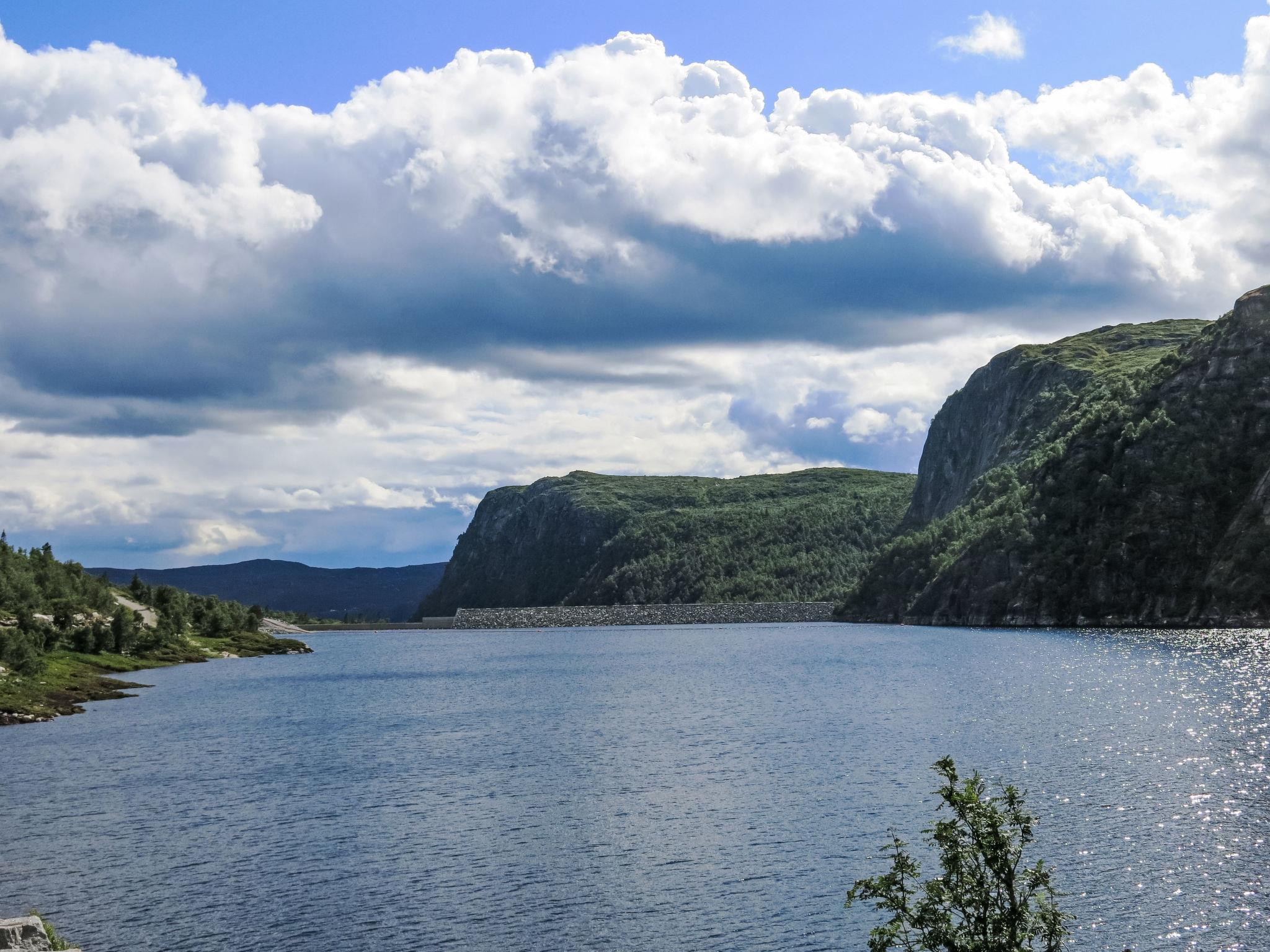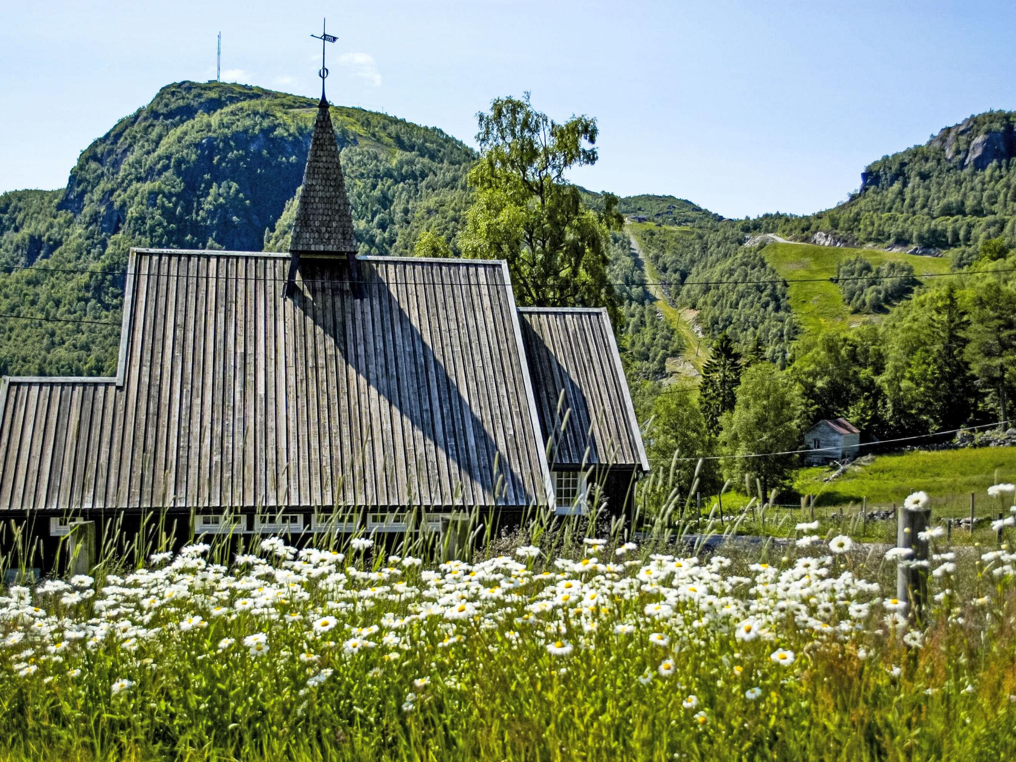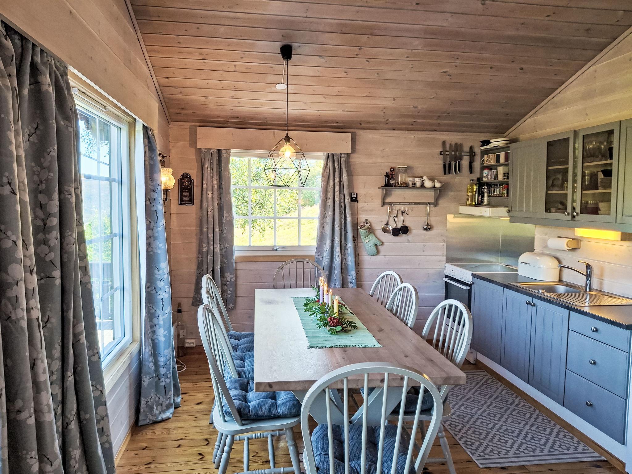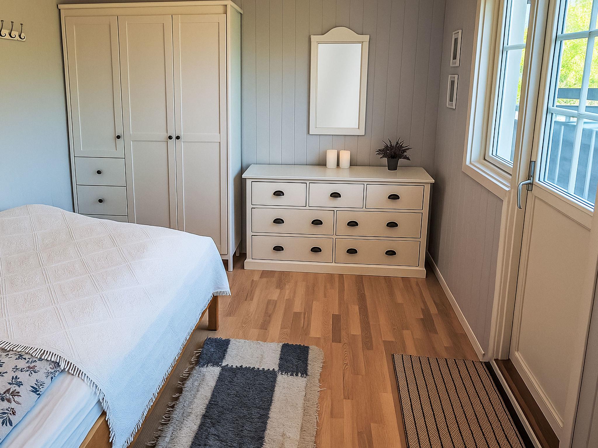 "Husebye", 4-Zimmer-Haus 65 m2. Komfortabel und gemütlich eingerichtet: offenes Wohn-/Esszimmer mit Schwedenofen, Esstisch und TV. Ausgang zur Terrasse. 1 Zimmer mit 1 Doppelbett (150 cm, Länge 200 cm). 1 Zimmer mit 1 x 2 Etagenbetten (75 cm, Länge 200 cm), 1 Doppelbett (150 cm, Länge 200 cm). 1 Zimmer mit 1 x 2 Etagenbetten (110 cm, Länge 200 cm) (80 cm, Länge 200 cm). Offene Küche (Backofen, 4 Glaskeramikplatten, Toaster, Mikrowelle, Tiefkühler, elektrische Kaffeemaschine). Dusche/WC. E-Heizung. Grosse Terrasse 68 m2. Terrassenmöbel, Gartengrill (mobil). Sicht auf die Berge. Zur Verfügung: Waschmaschine. Internet (WLAN, gratis). Bitte beachten: Nichtraucher-Haus. Smart-TV (über WLAN).