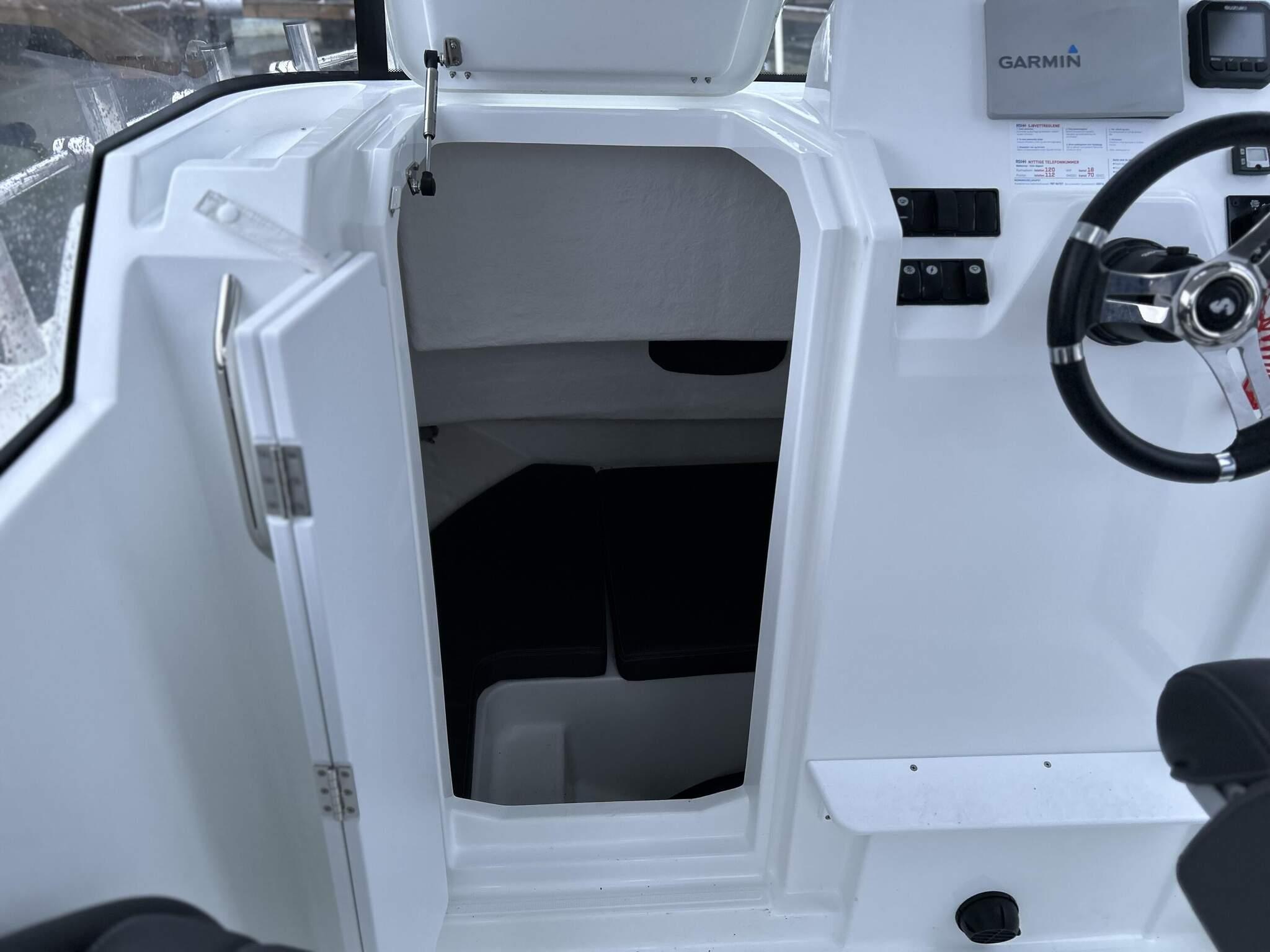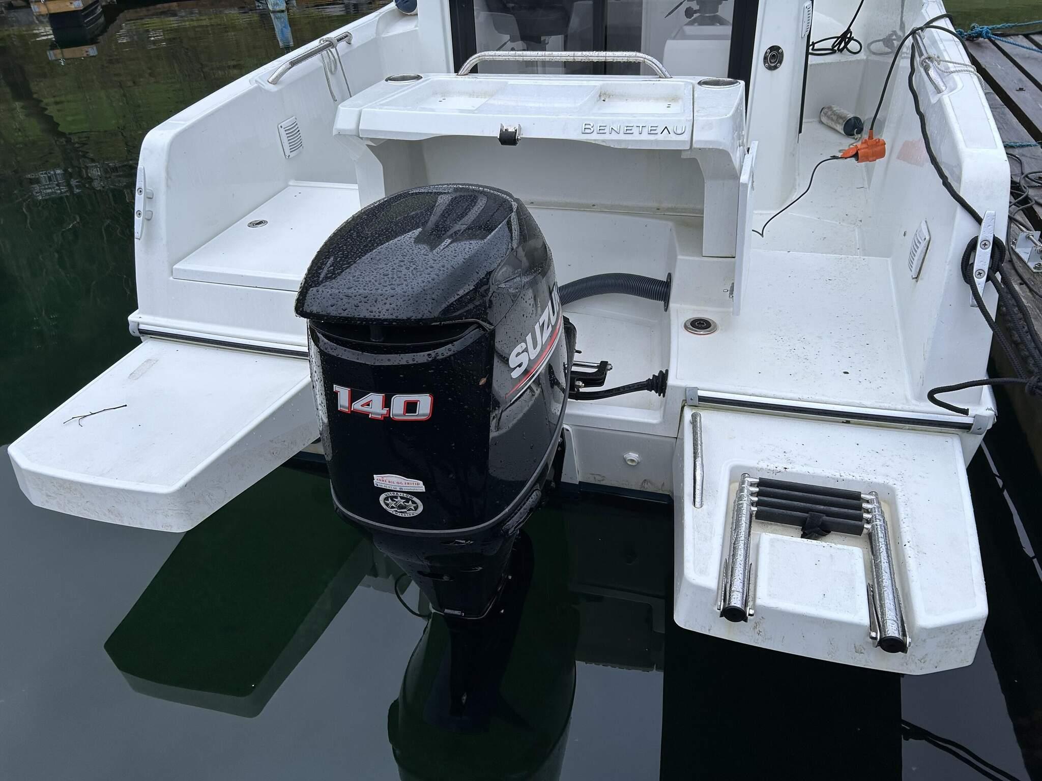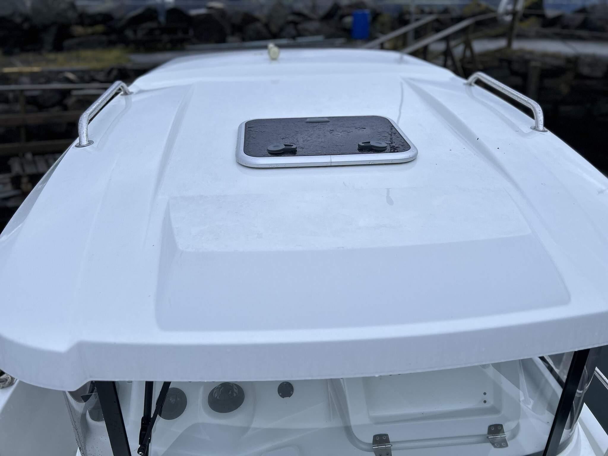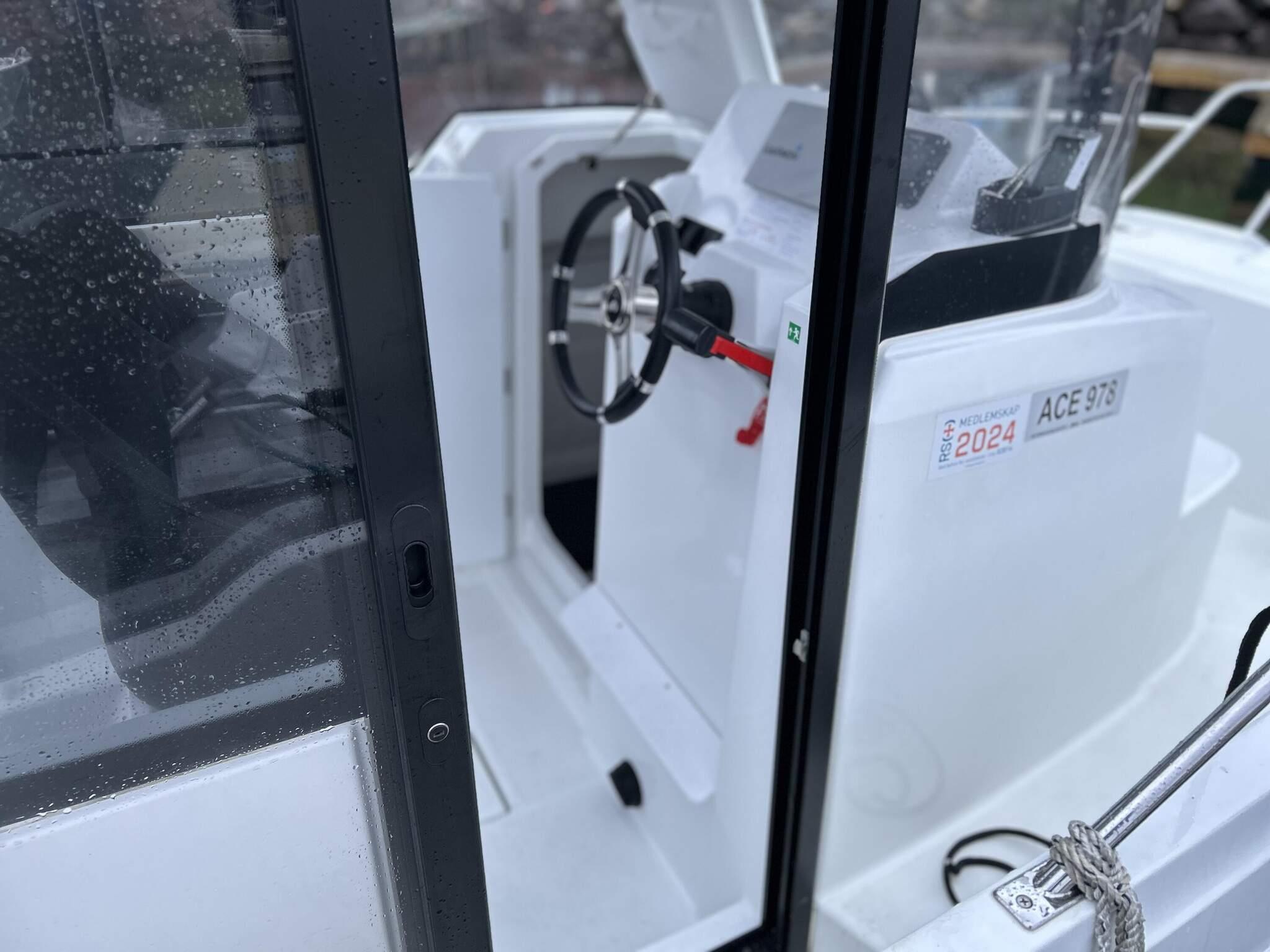 - *ein 23 Fuß Boot (Typ Dolmøy Fiskar) mit 80 PS Yamaha Motor, Kabine, GPS/Kartenplotter/Echolot und 6 Rutenhaltern.