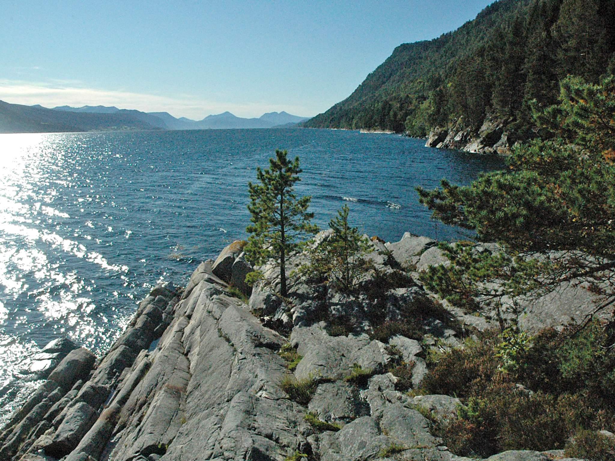 Das Ferienhaus liegt etwa 37 km südöstlich des Ortes Molde. Es steht etwas erhöht am Hang, dazu gehört ein Rasengrundstück mit einigen Bäumen. Schönes Wanderterrain entlang der Küste. Am Wasser lassen sich mit etwas Glück Wale sehen und auch hören.
