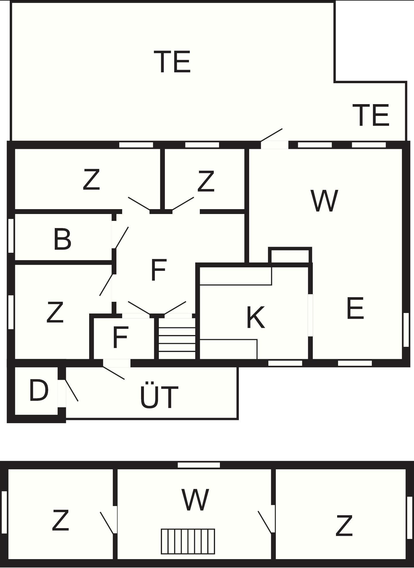 5 Schlafz.: (1DB)+(1DB)+(1DB+1B)+(1DB)+(2B), Kinderbett