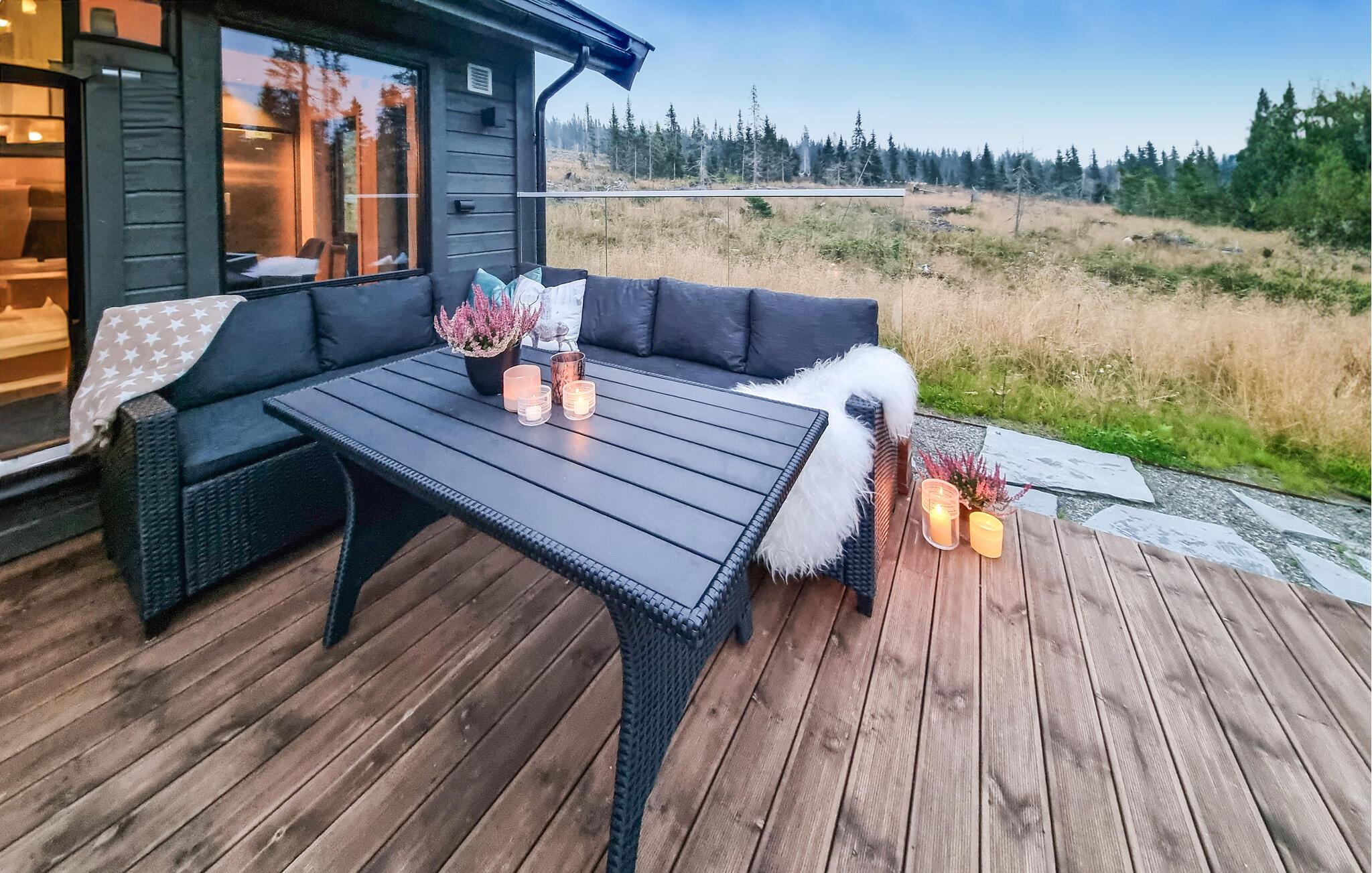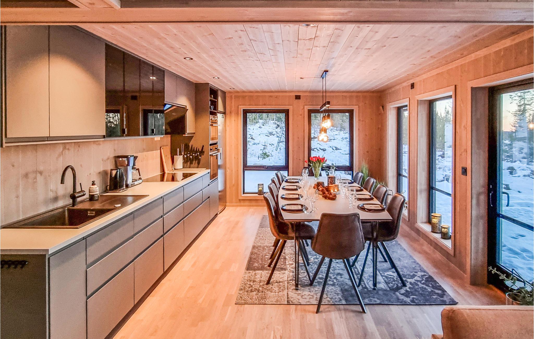 Es liegt auf Nordseter und bietet einfachen Zugang zu Langlaufloipen und einer Vielzahl an Naturerlebnissen. Das Haus ist sehr gut ausgesttatet und bietet mehrere gemütliche Ecken, wo Sie sich erholen und ein gutes Buch lesen können. Gehen Sie nach einem Tag an der frischen Luft in die Sauna oder wärmen Sie sich vorm Kaminofen. Im Essbereich können Sie gesellige Stunden bei den Mahlzeiten verbringen und wunderbare Sonnenuntergange erleben.